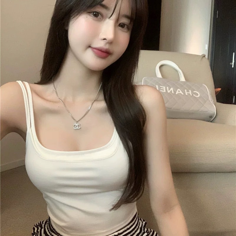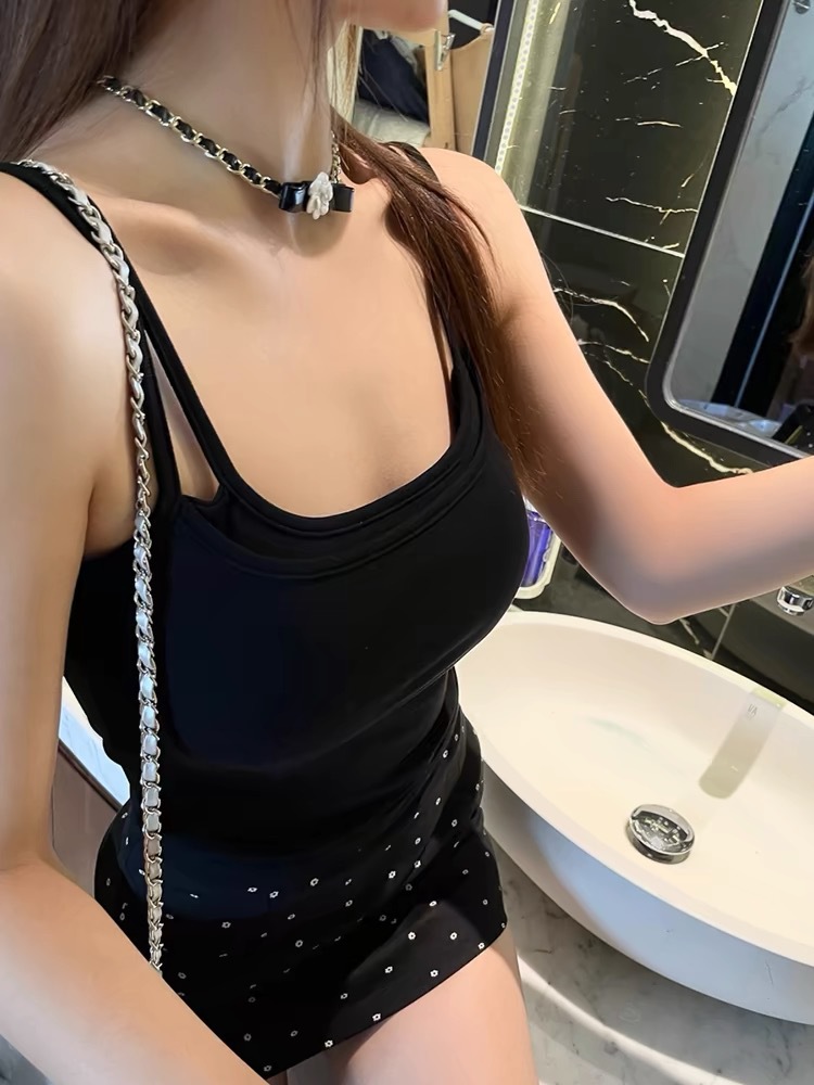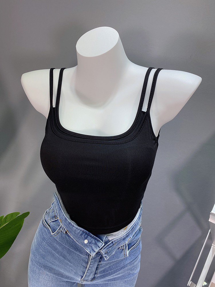 Primavera y verano nuevo falso de dos piezas camisola ropa interior de las mujeres verano desmontable pecho pad belleza integrada parte superior inferior
