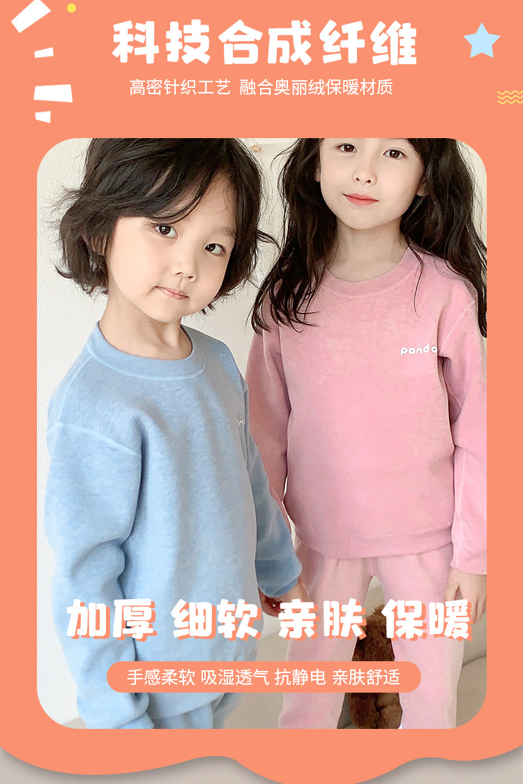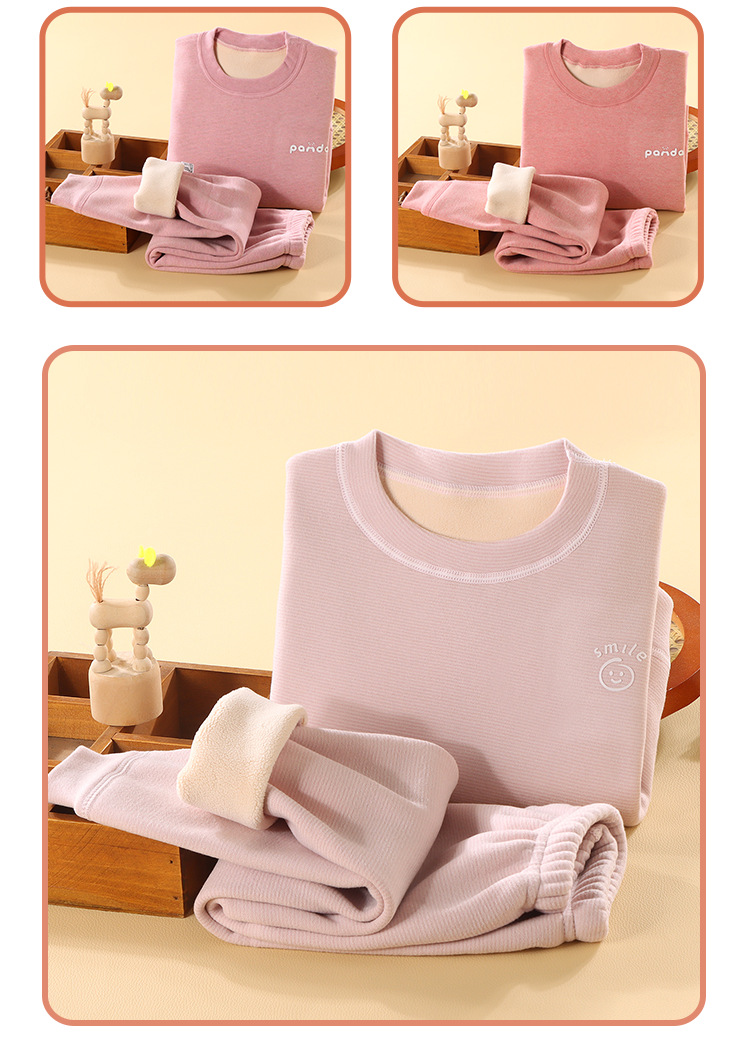 Niños de color sólido a rayas aoli terciopelo deshuesado traje medio y grande ropa de otoño para niños pantalones largos engrosados para hombres y mujeres homewear cálido