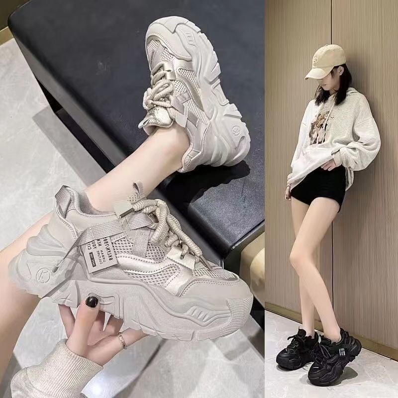 Zapatos respirables de red para mujeres 2024 verano nuevo ultra caliente mostrando pies pequeños zapatos deportivos casuales de suela gruesa