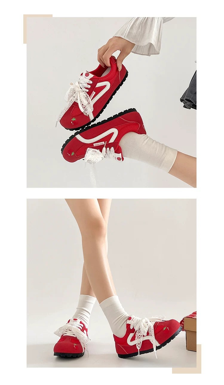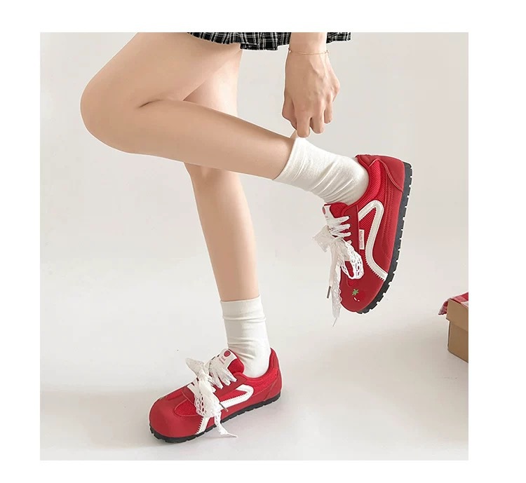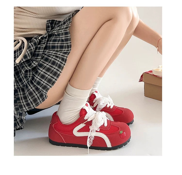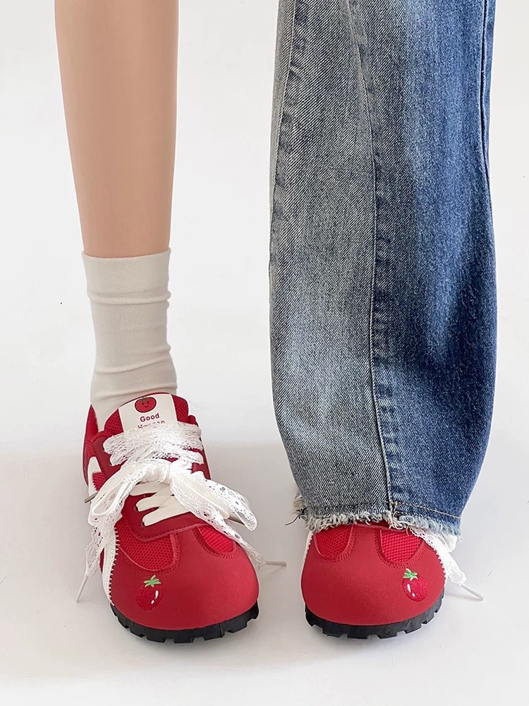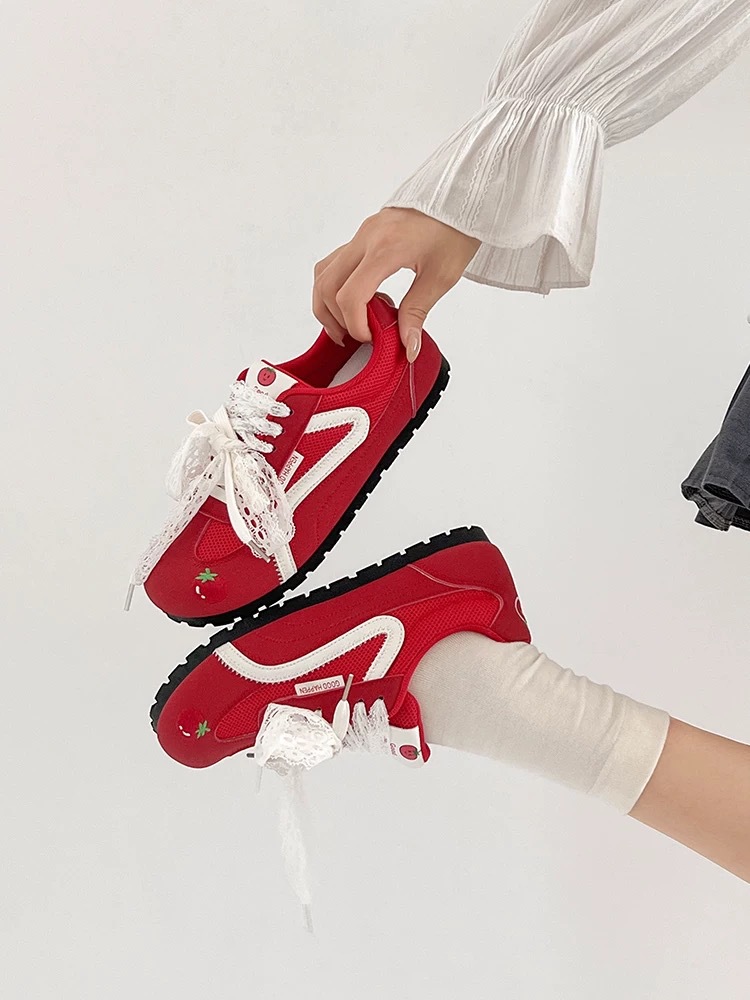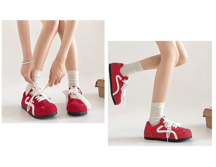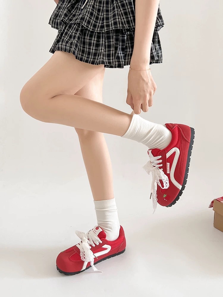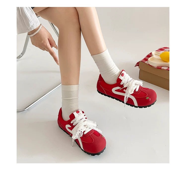 Zapatos de entrenamiento clásicos rojos para mujeres 2025 nuevas zapatillas de ballet retrógrado con cabeza redonda de verano respirables