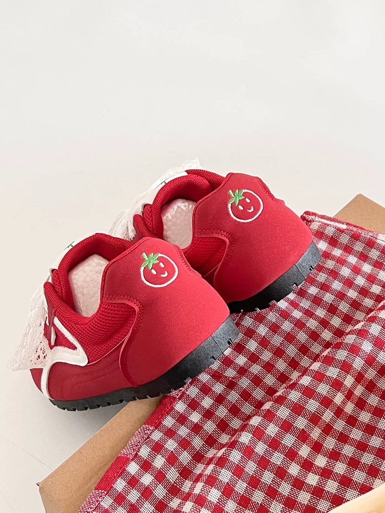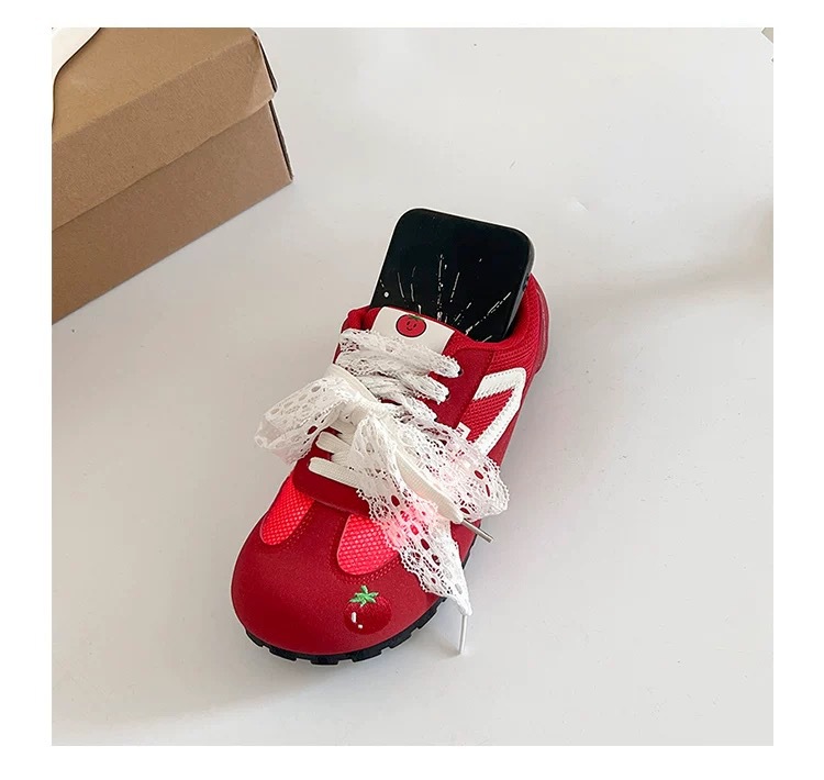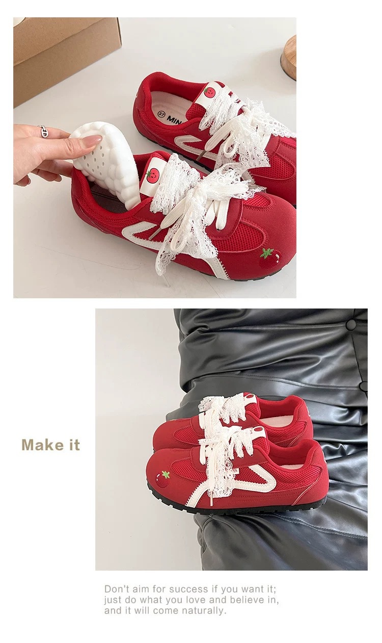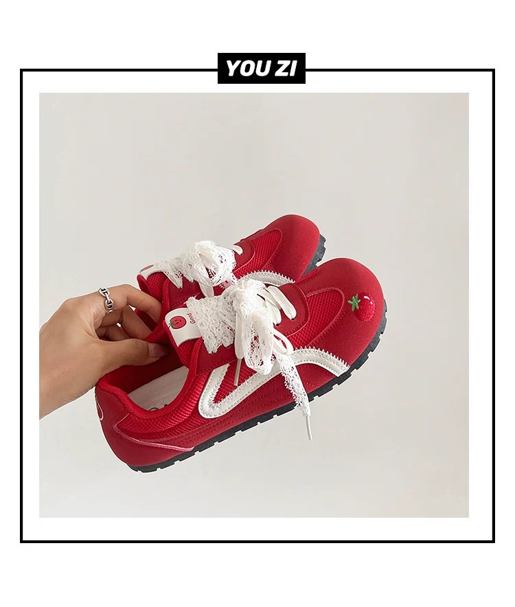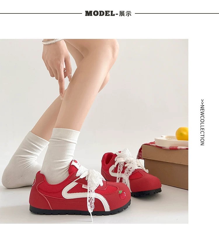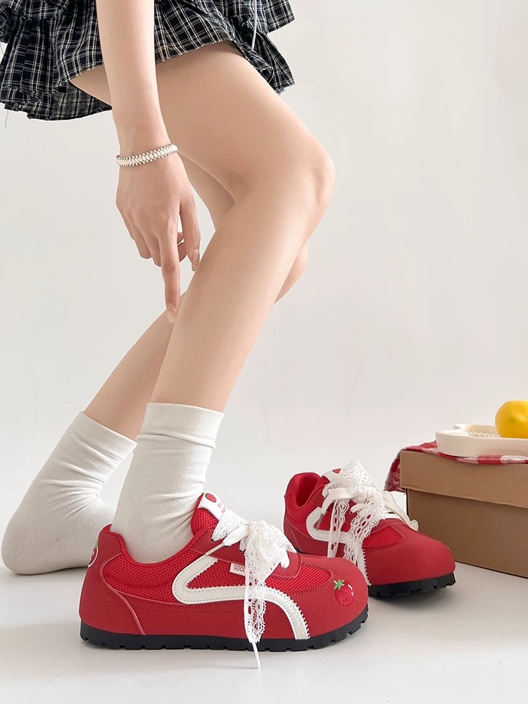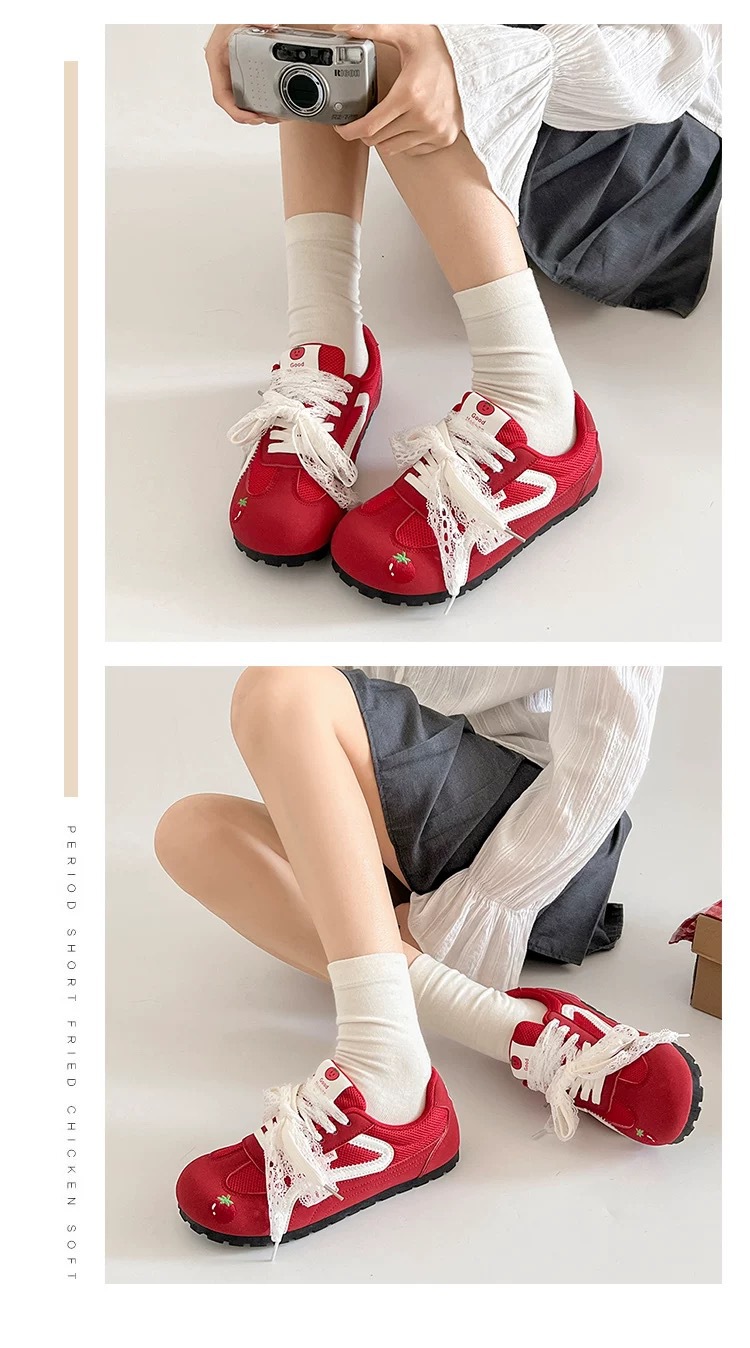Zapatos de entrenamiento clásicos rojos para mujeres 2025 nuevas zapatillas de ballet retrógrado con cabeza redonda de verano respirables