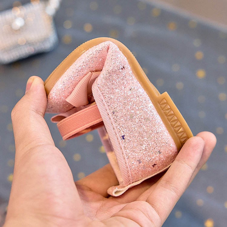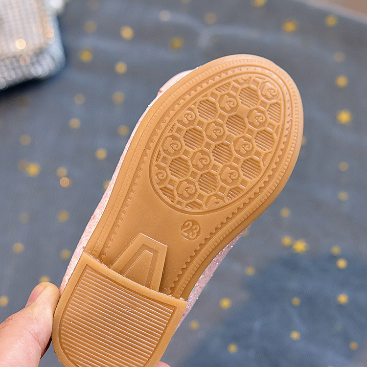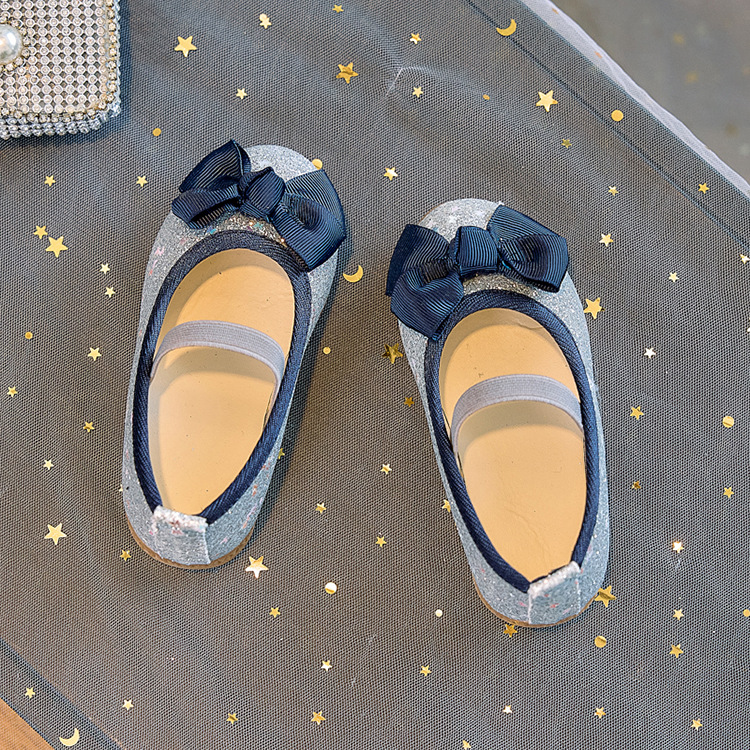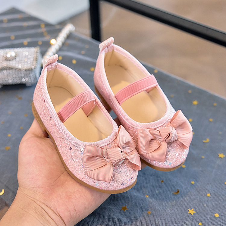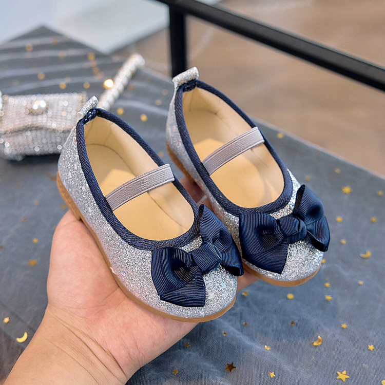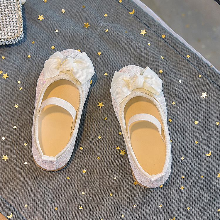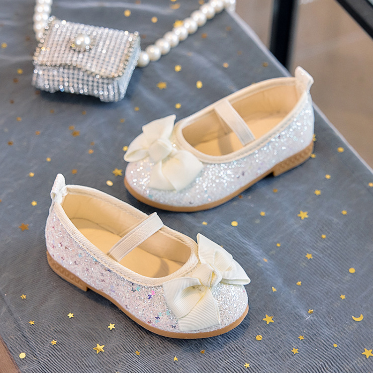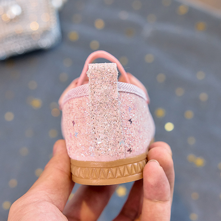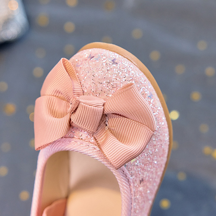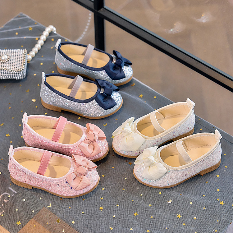 Zapatos individuales de lentejuelas para niñas 2025 primavera y otoño niña boca baja bowknot zapatos de princesa transpirables estudiantes shows zapatos de guisantes