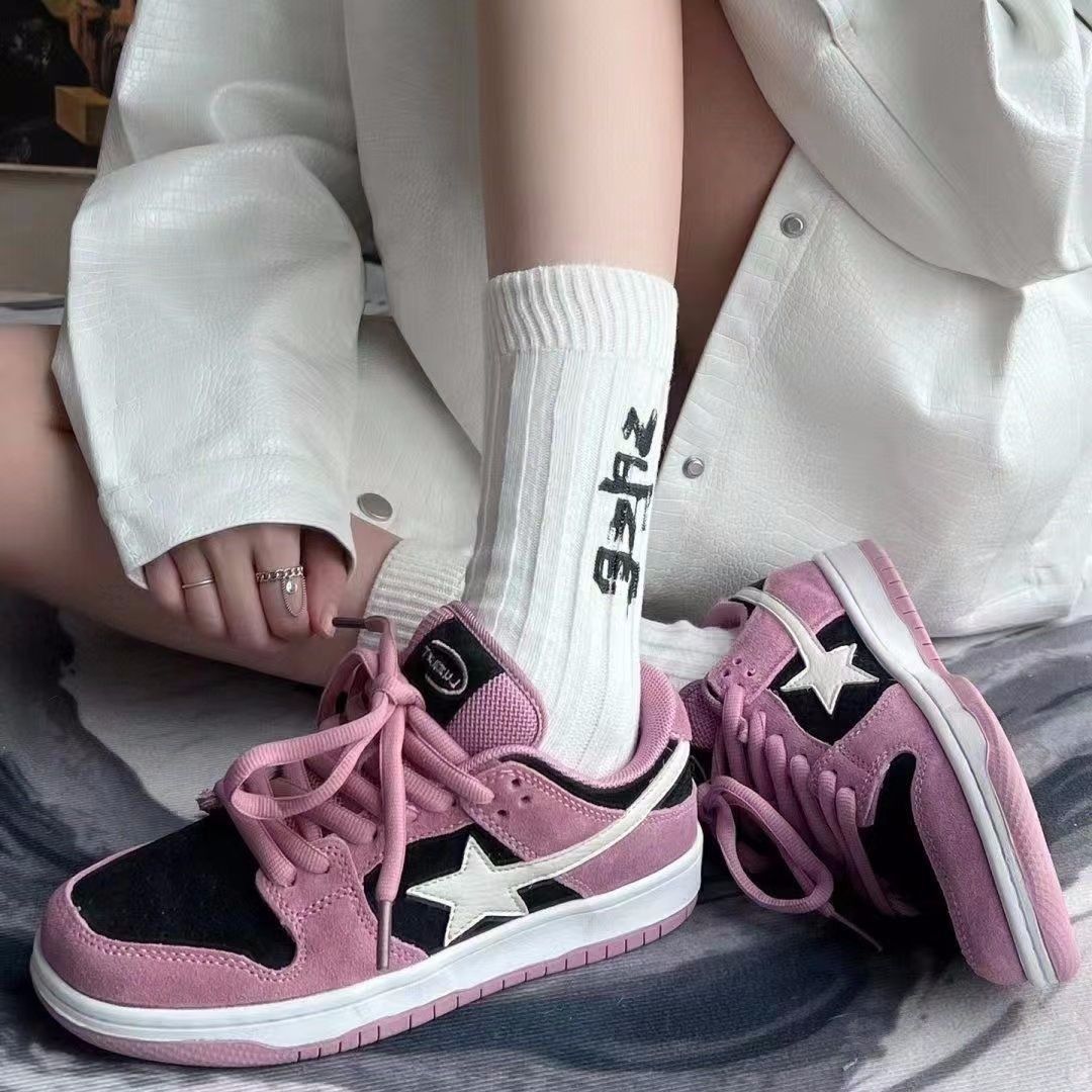 2024 primavera nuevos zapatos casuales de mujer coreana universal de fondo grueso nicho de estudiantes de secundaria primaria estrellas originales zapatos de skate de moda mujeres