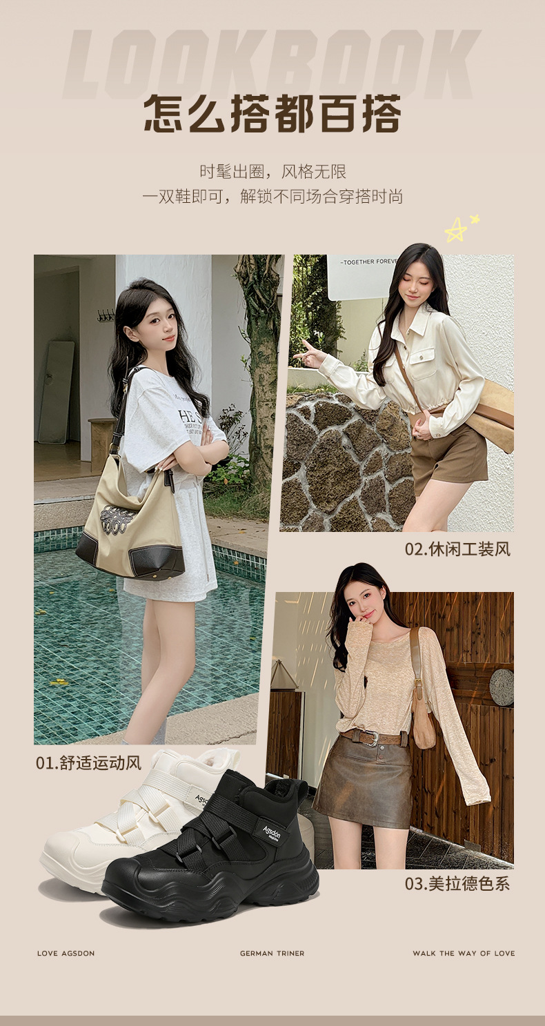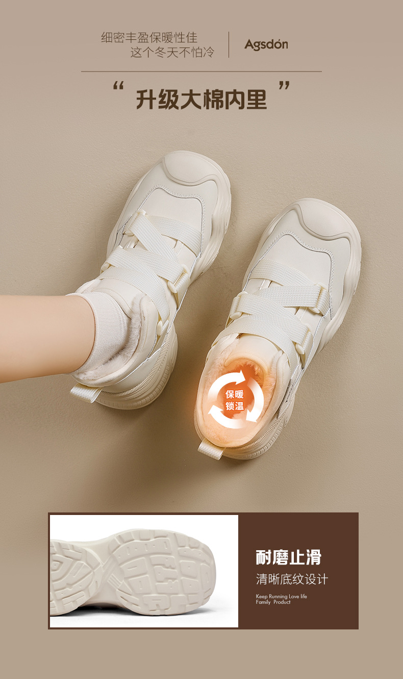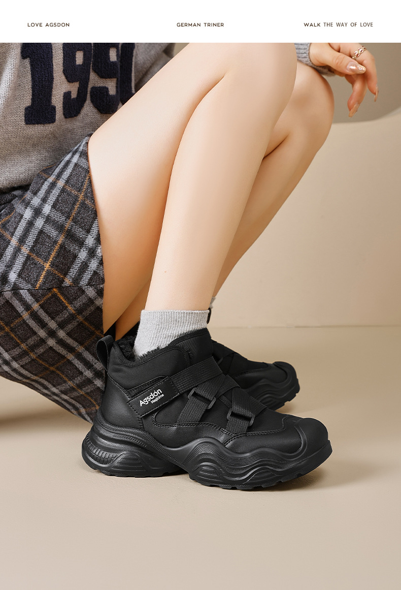 Antiguo león Dengjia terciopelo alto padre zapatos mujeres 2025 nuevo otoño invierno grueso velcro zapatos de algodón suave zapatos deportivos