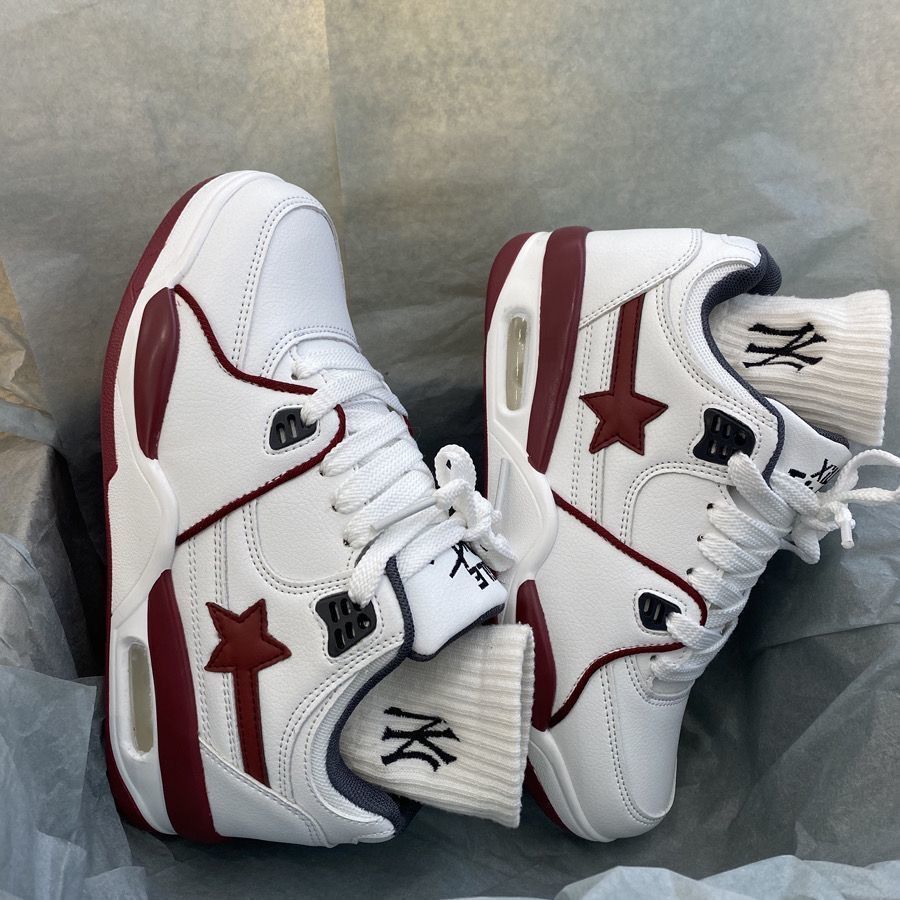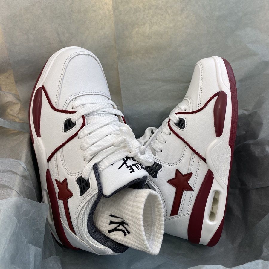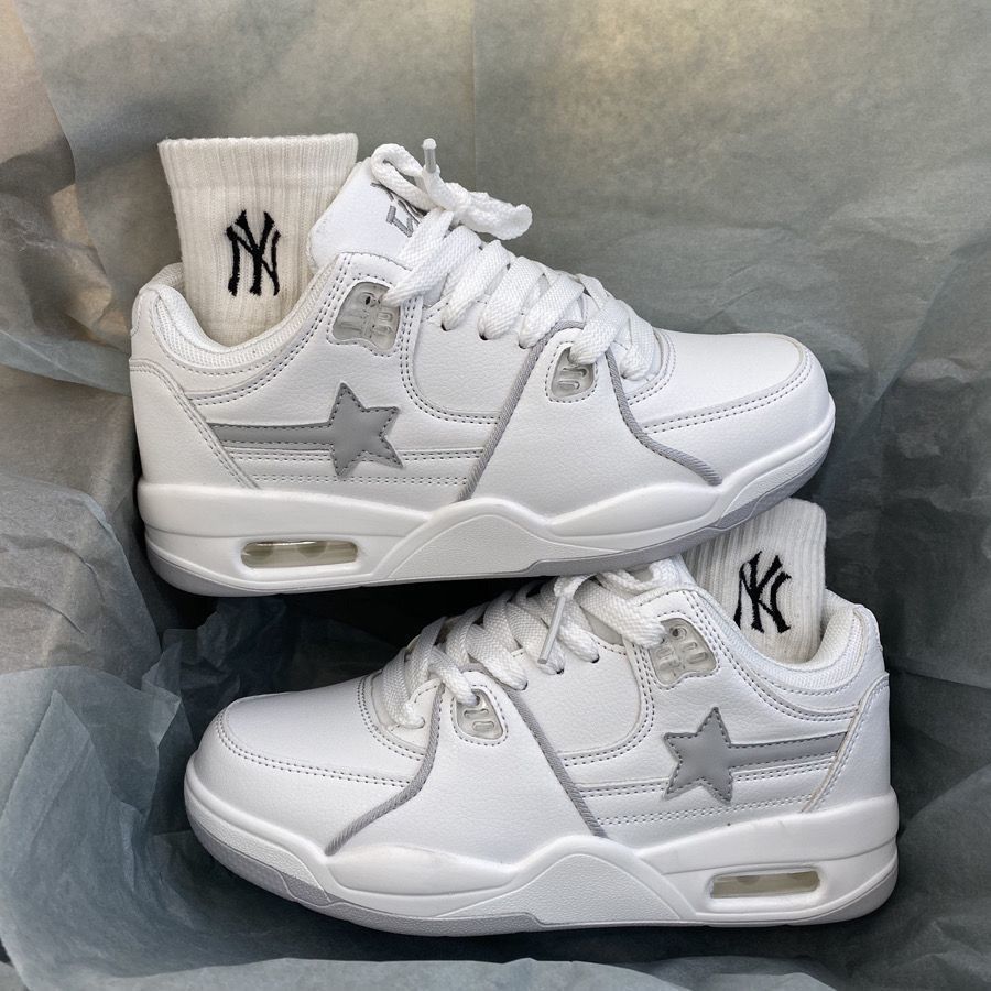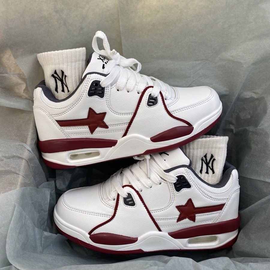 2024 verano nuevo chino rojo grueso aumento de altura zapatos casuales zapatos deportivos blancos estrellas cojín de aire pareja zapatos de patinaje mujeres