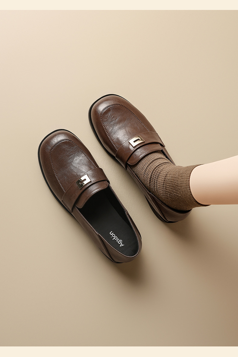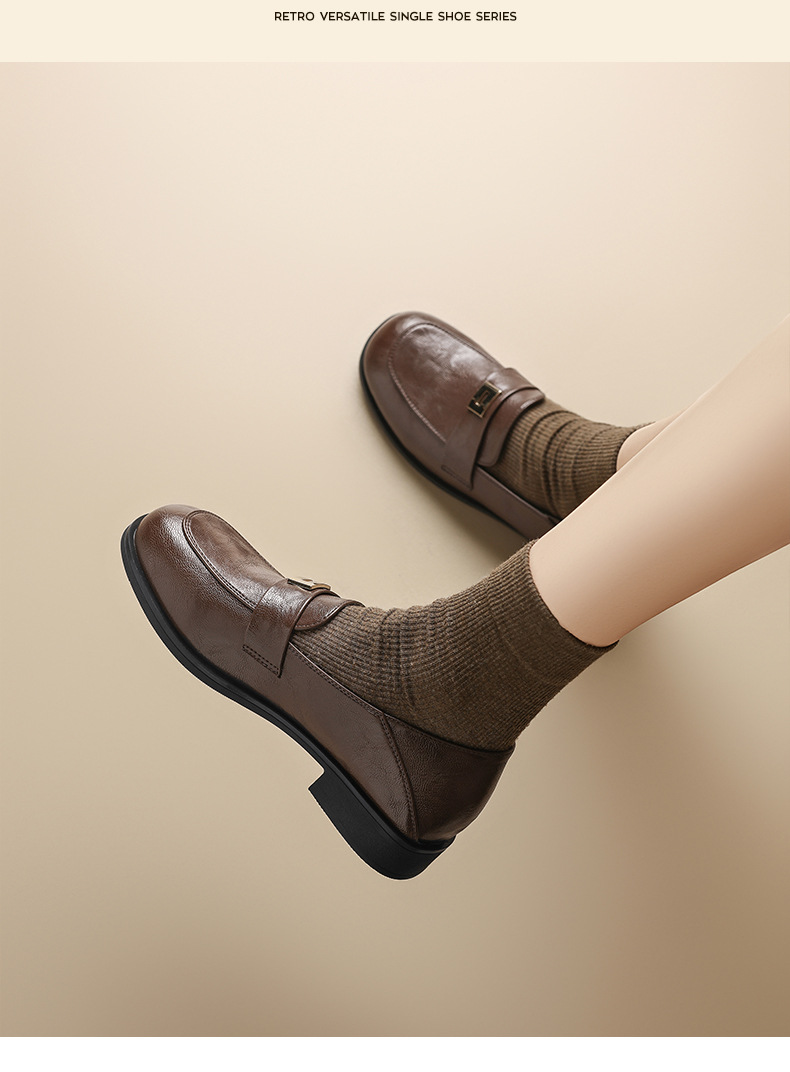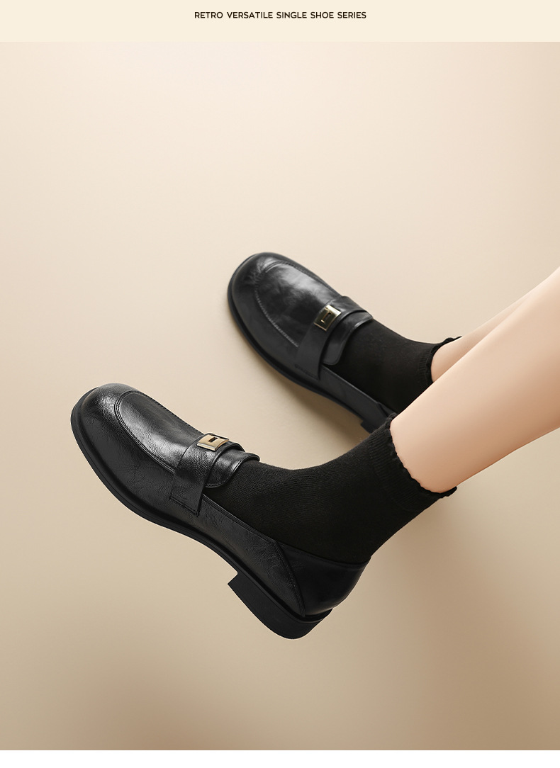 Zapatos de Lefour de fondo grueso para mujeres 2025 nuevo otoño negro estilo británico zapatos de cuero retro zapatos de viaje único