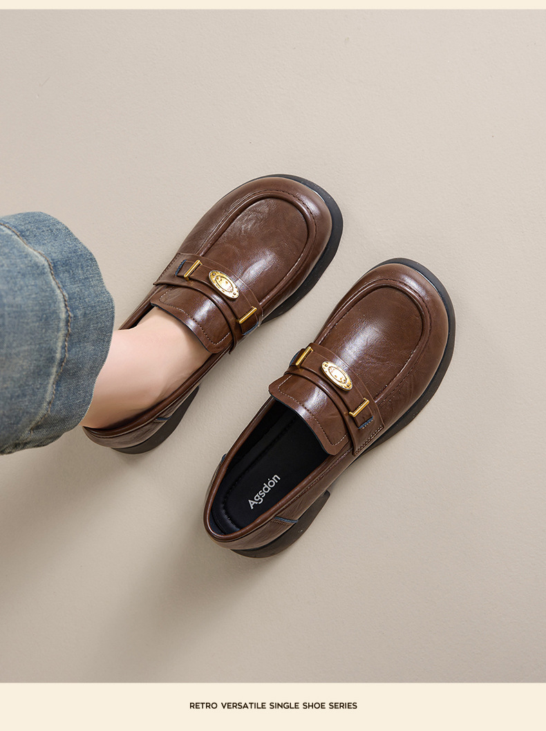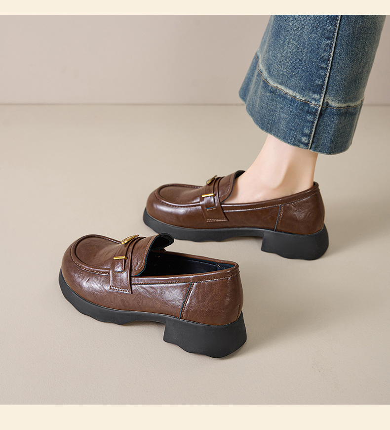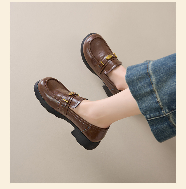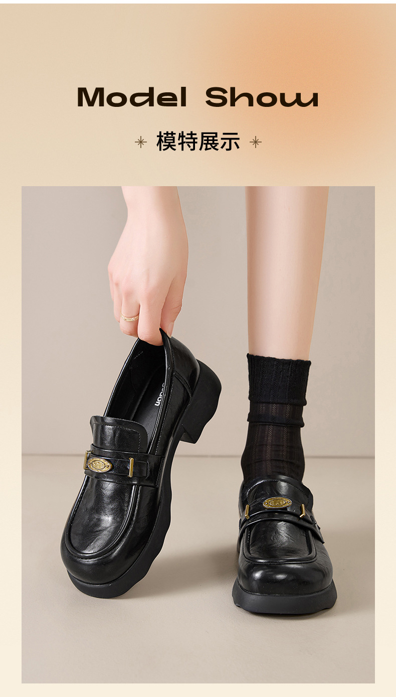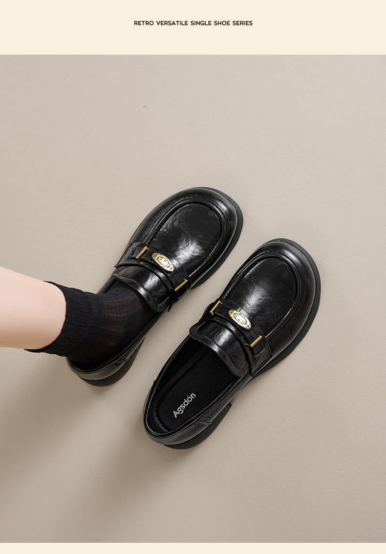 Auge Lion negro Lefour zapatos para mujeres 2025 nuevo otoño estilo británico zapatos de cuero con falda de tacones gruesos jk zapatos