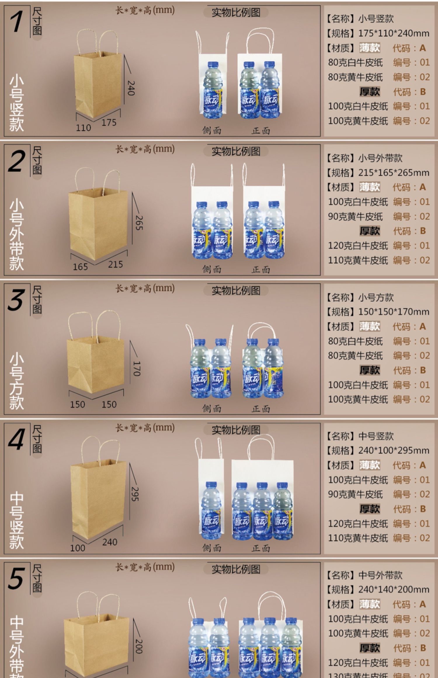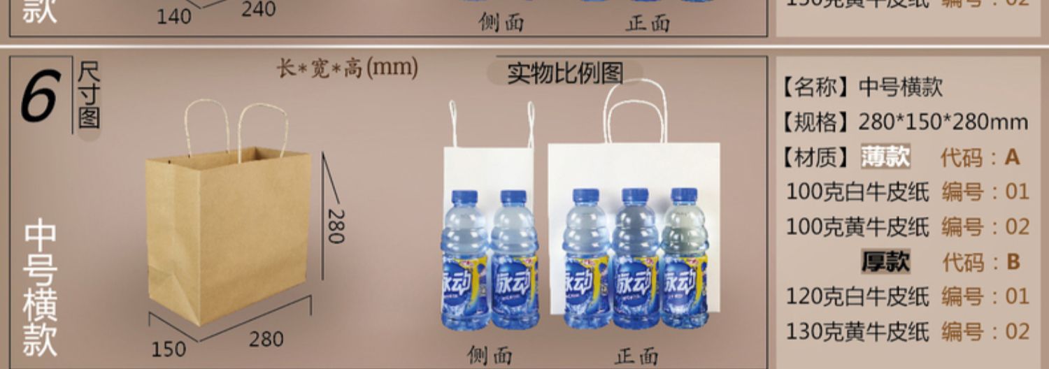 Mediano para llevar 240 * 140 * 200 - piel de vaca delgada - 10 paquetes