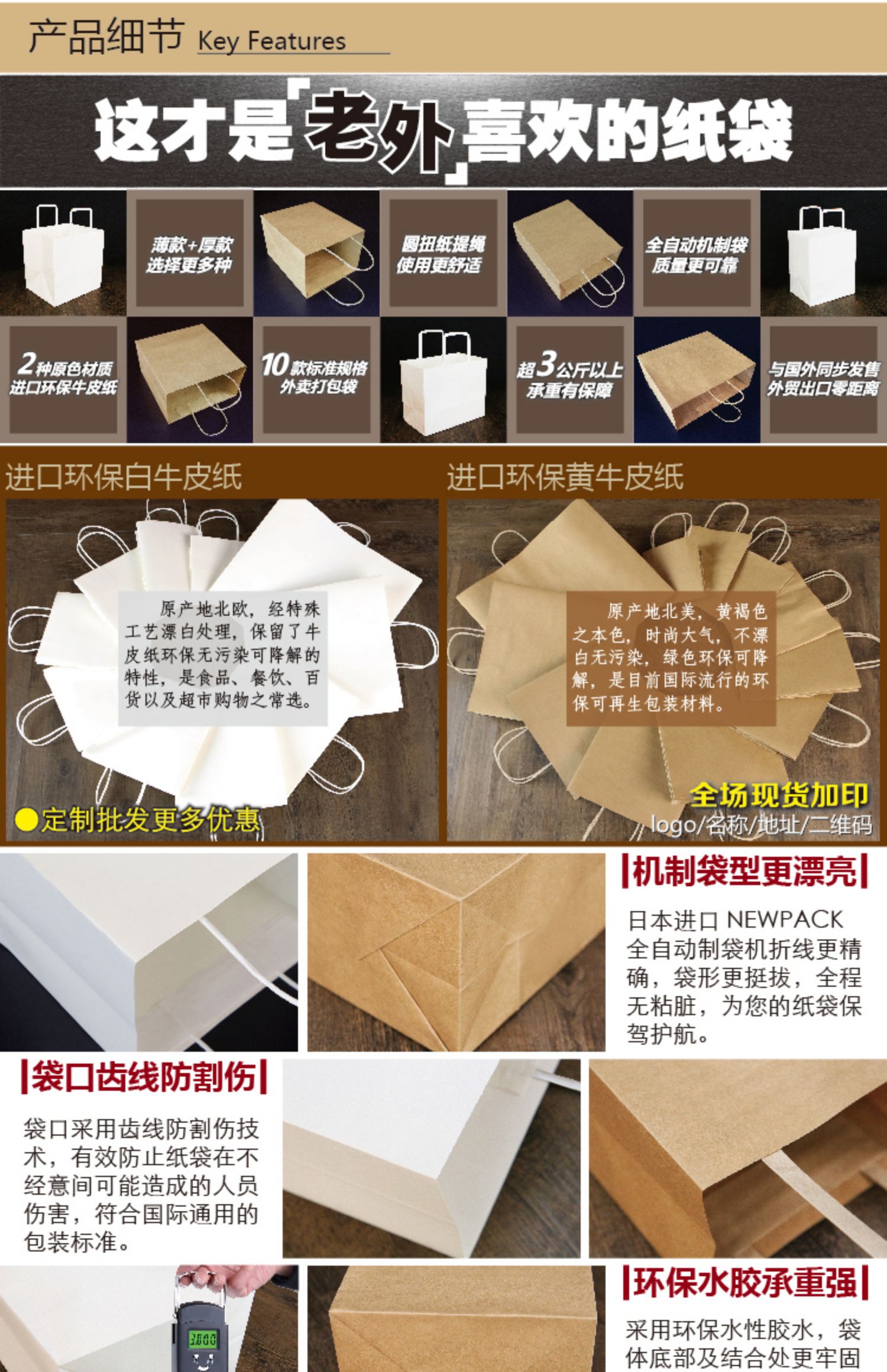 Mediano para llevar 240 * 140 * 200 - piel de vaca blanca delgada - 10 paquetes