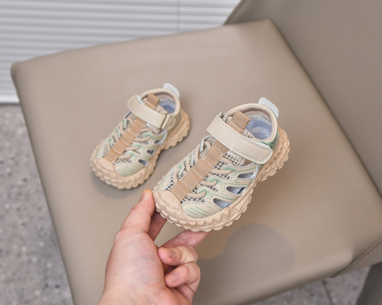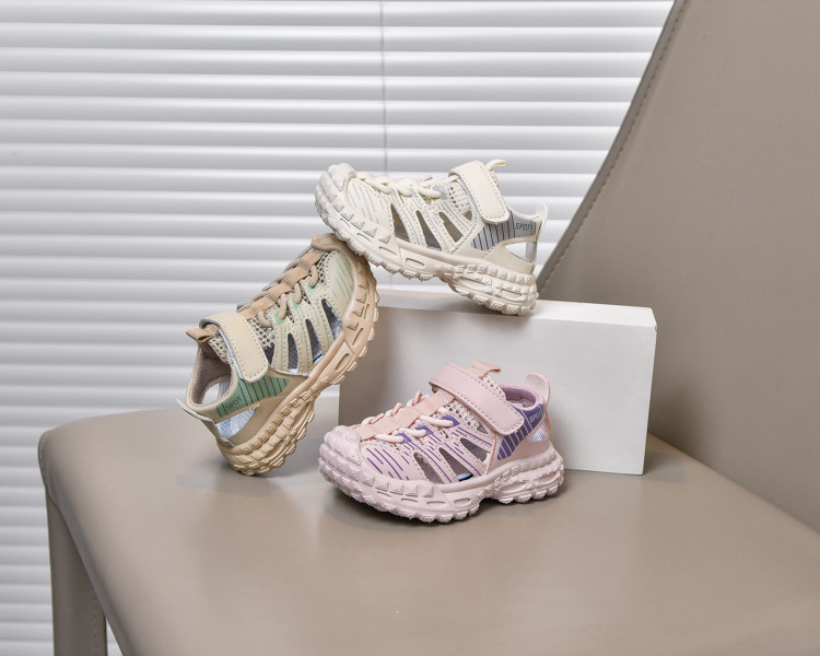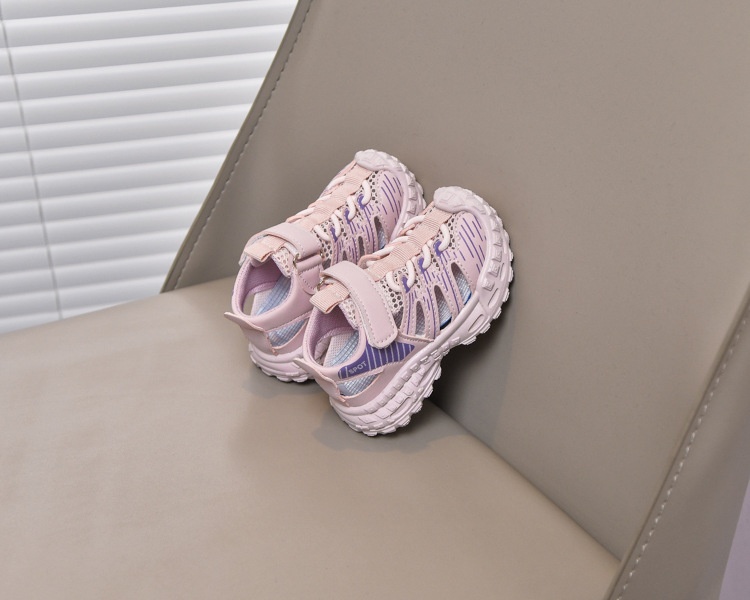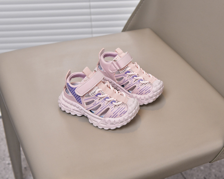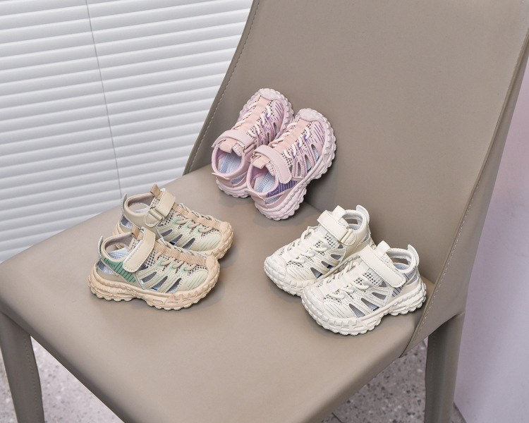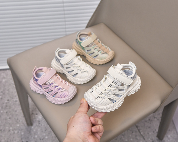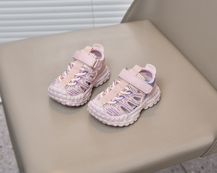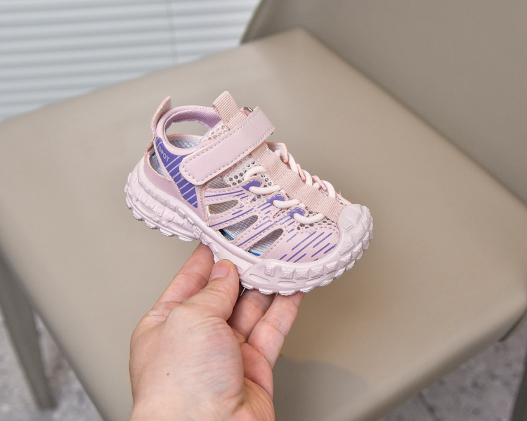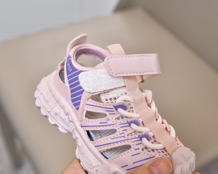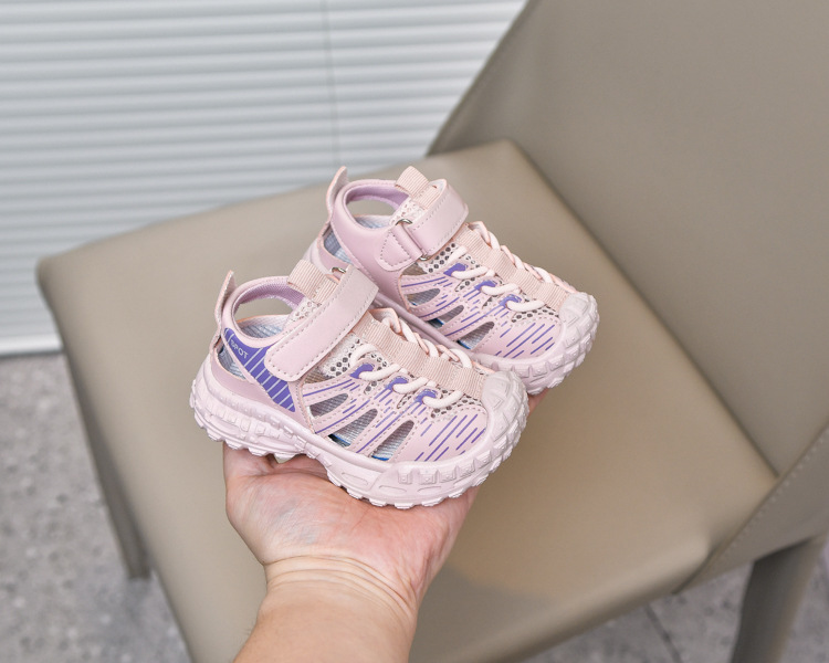 Sandalias deportivas al aire libre para niños 2025 verano nuevo estilo sandalias Baotou antideslizantes y transpirables zapatos de malla única para niñas suela suave