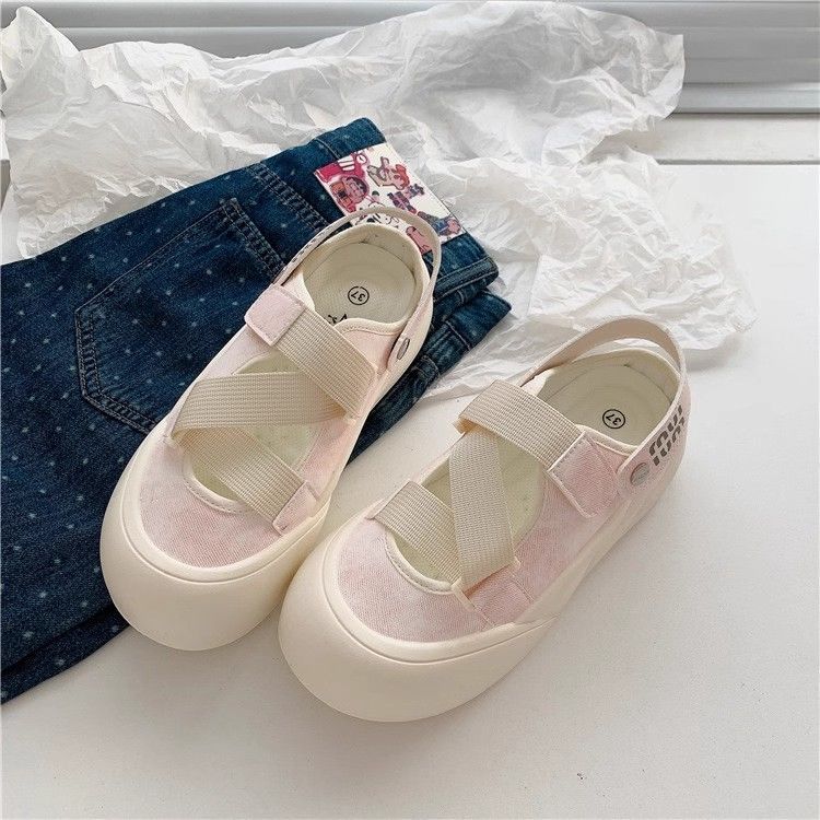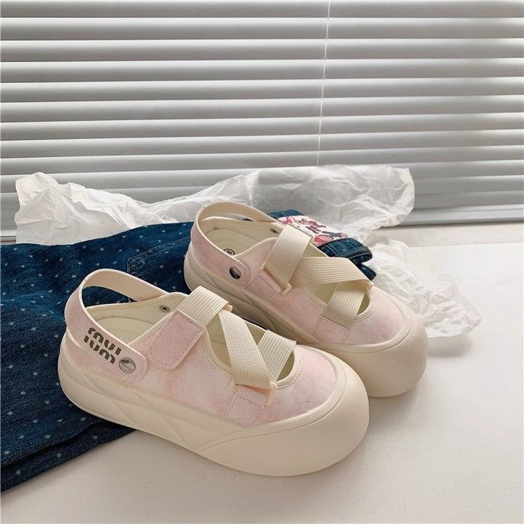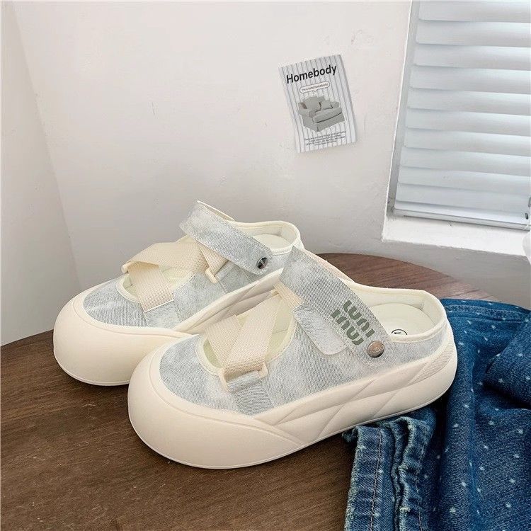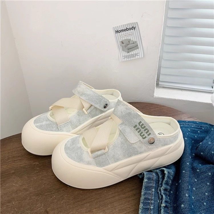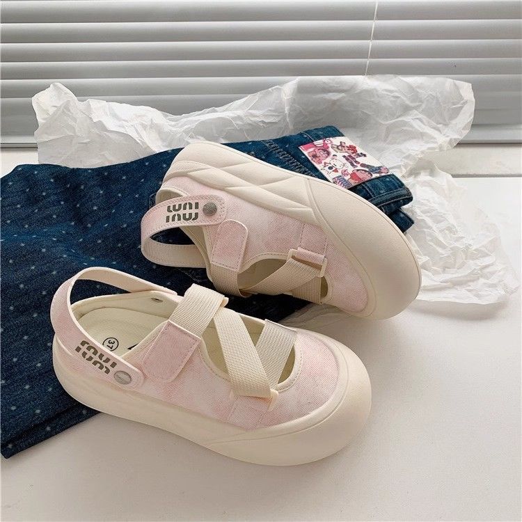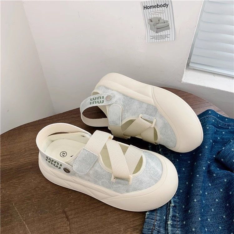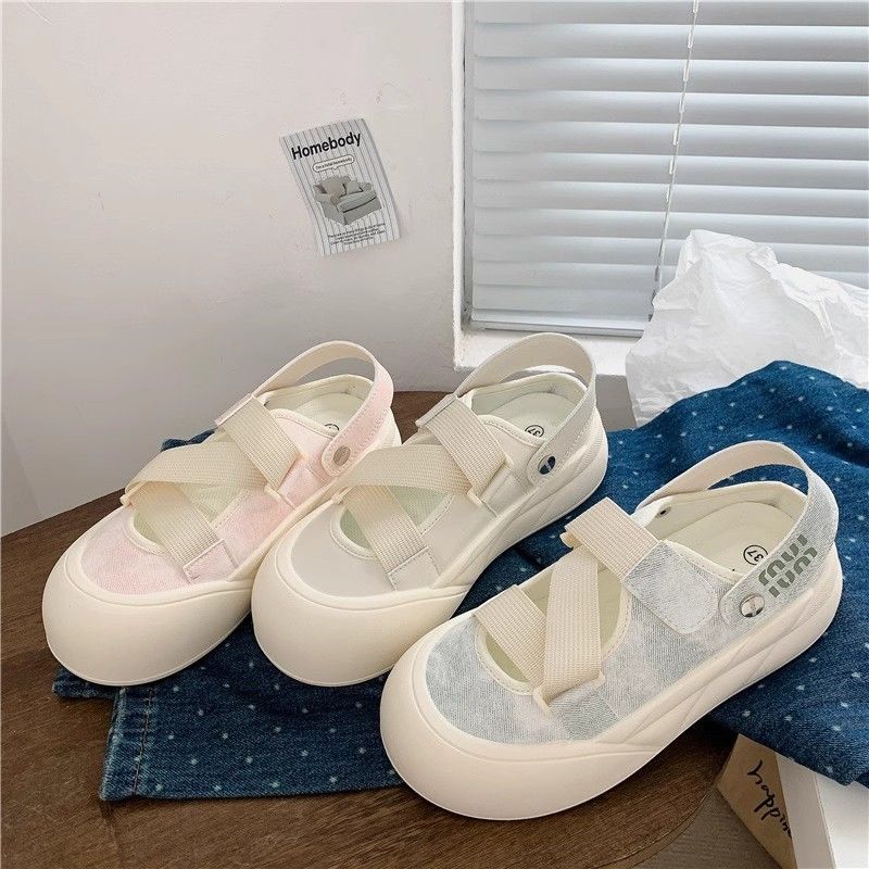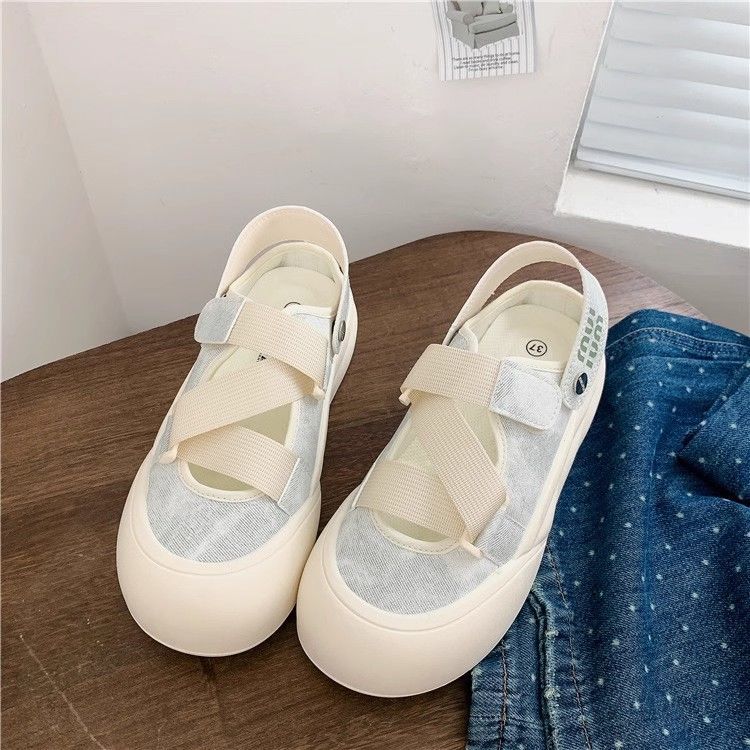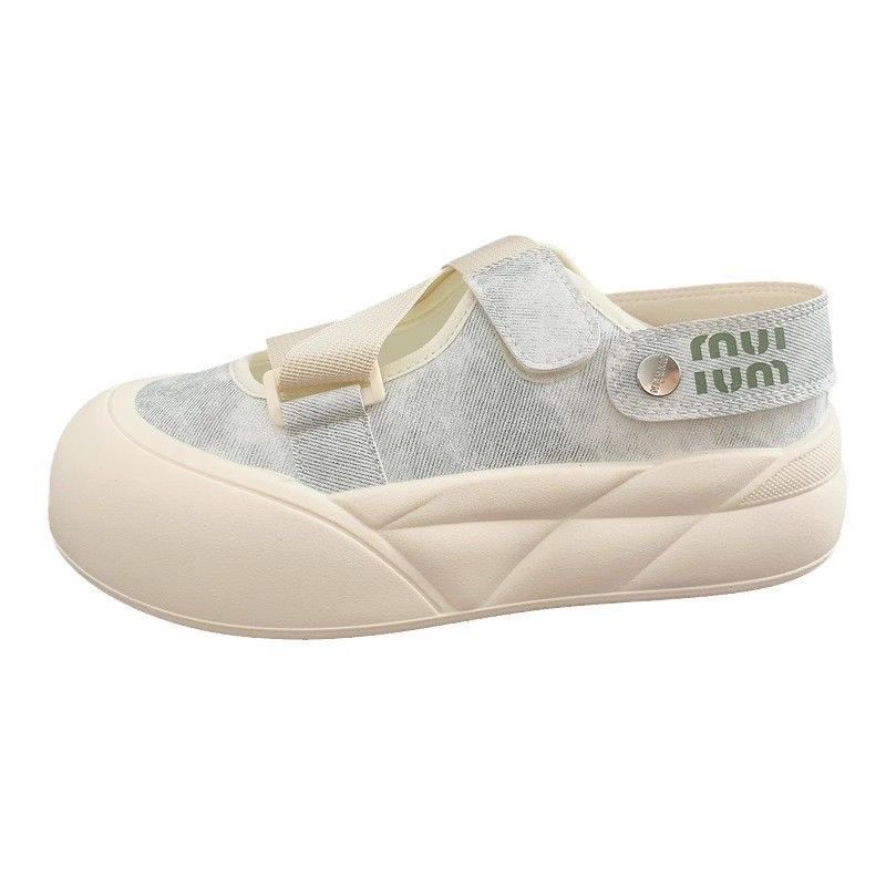 Zapatos blancos de un pie para mujeres 2024 otoño nuevos zapatos de mujer de verano Velcro zapatos casuales universales cabeza redonda