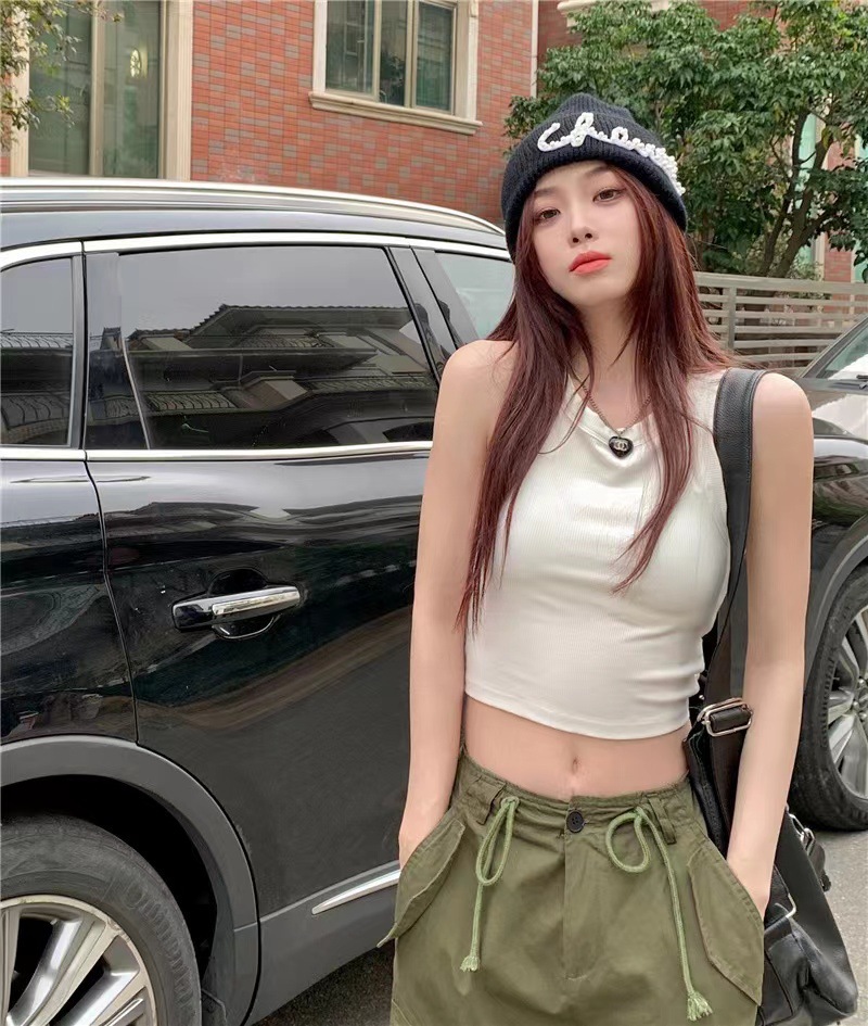 Estilo coreano personalizado chica caliente espalda backless ropa de trabajo camisola ropa exterior de verano de las mujeres con almohadilla en el pecho corto en forma de I chaleco