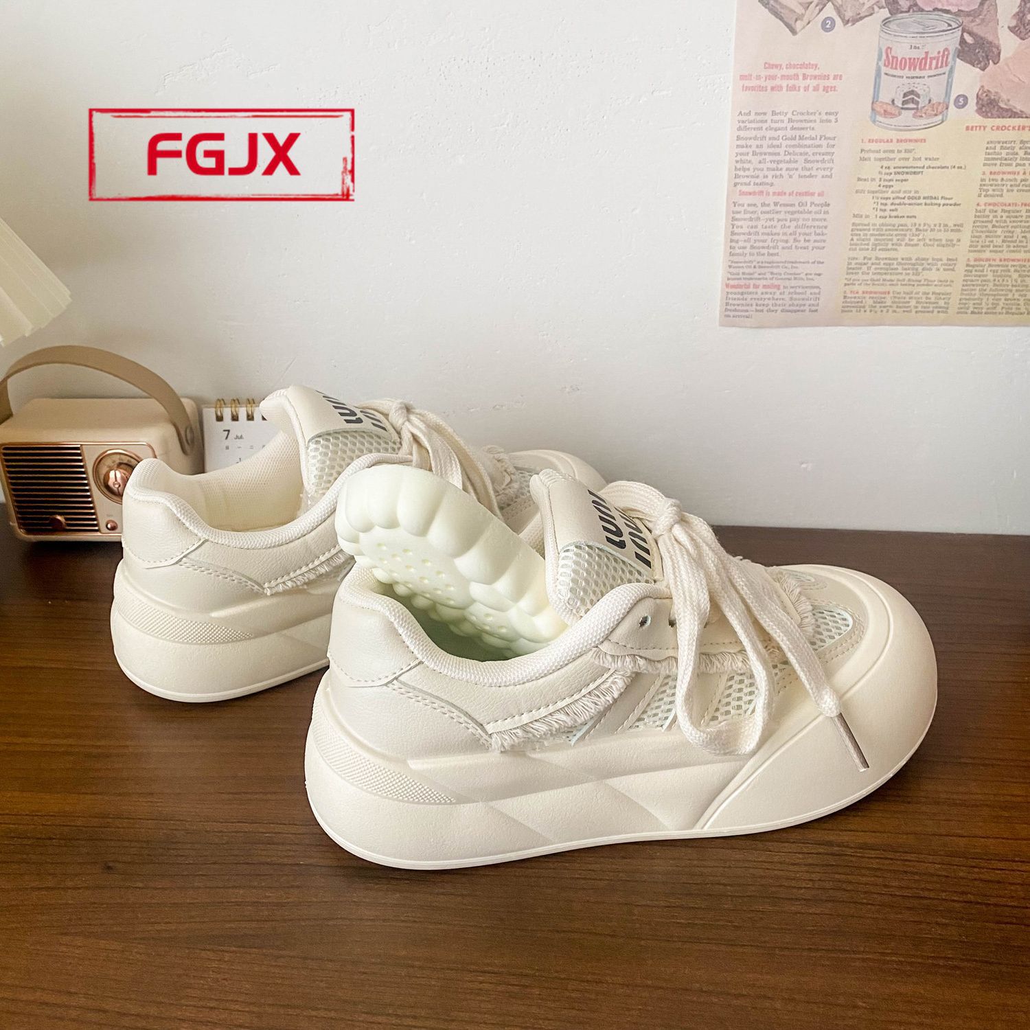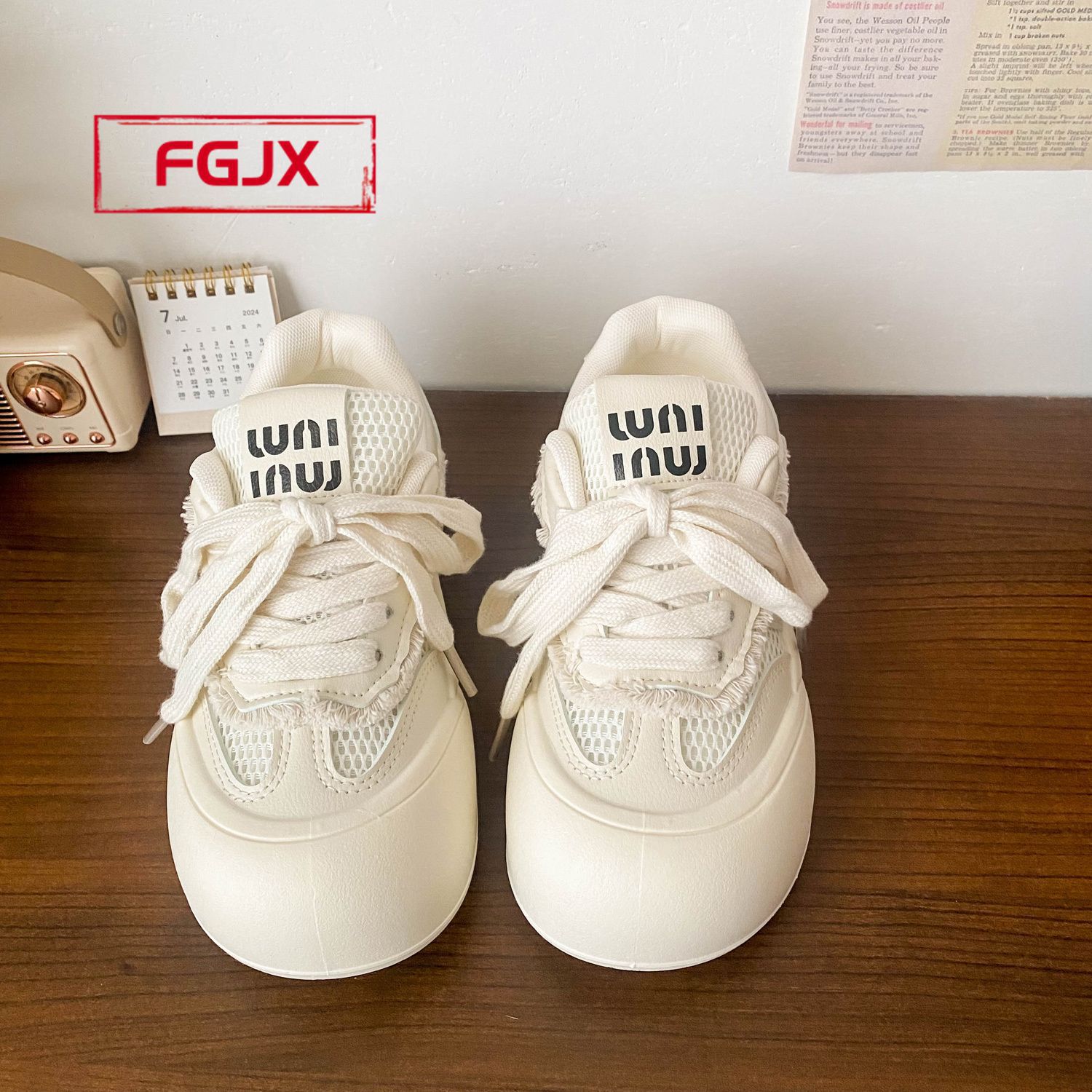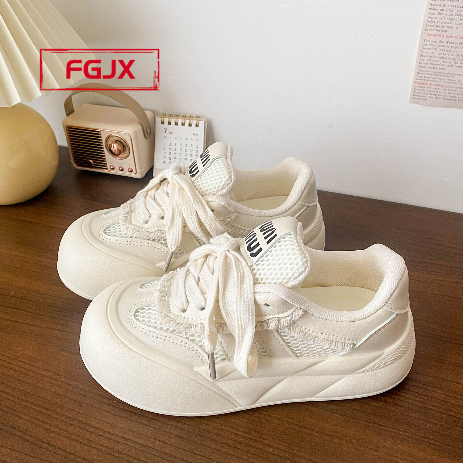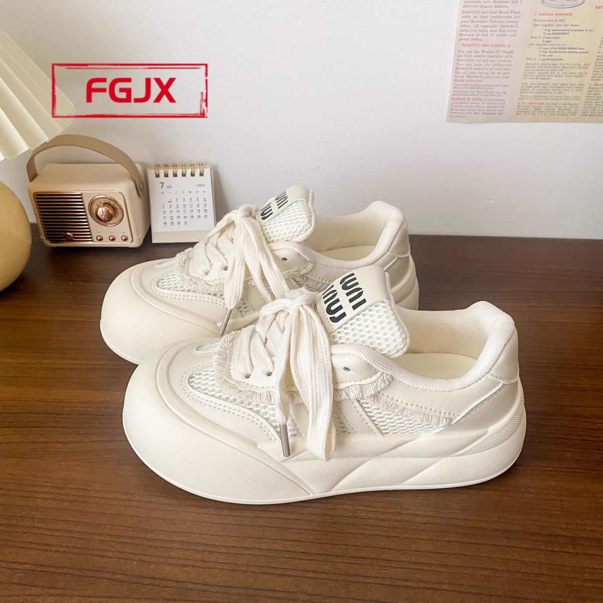 2024 verano malla transpirable con suela gruesa zapatos blancos pequeños muñeca cabeza coreana zapatos de pan de estilo de puerto zapatos casuales skate