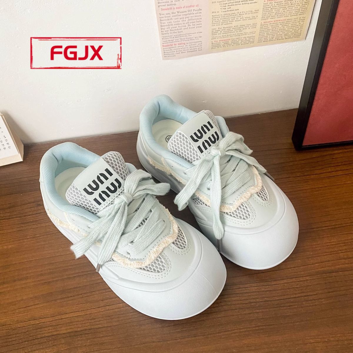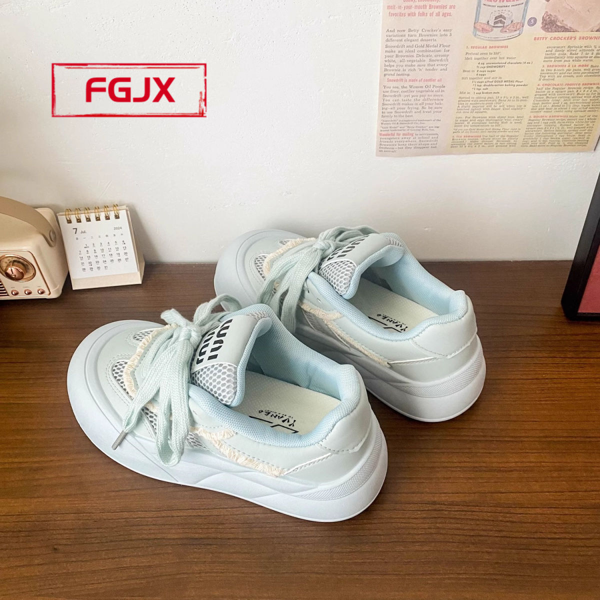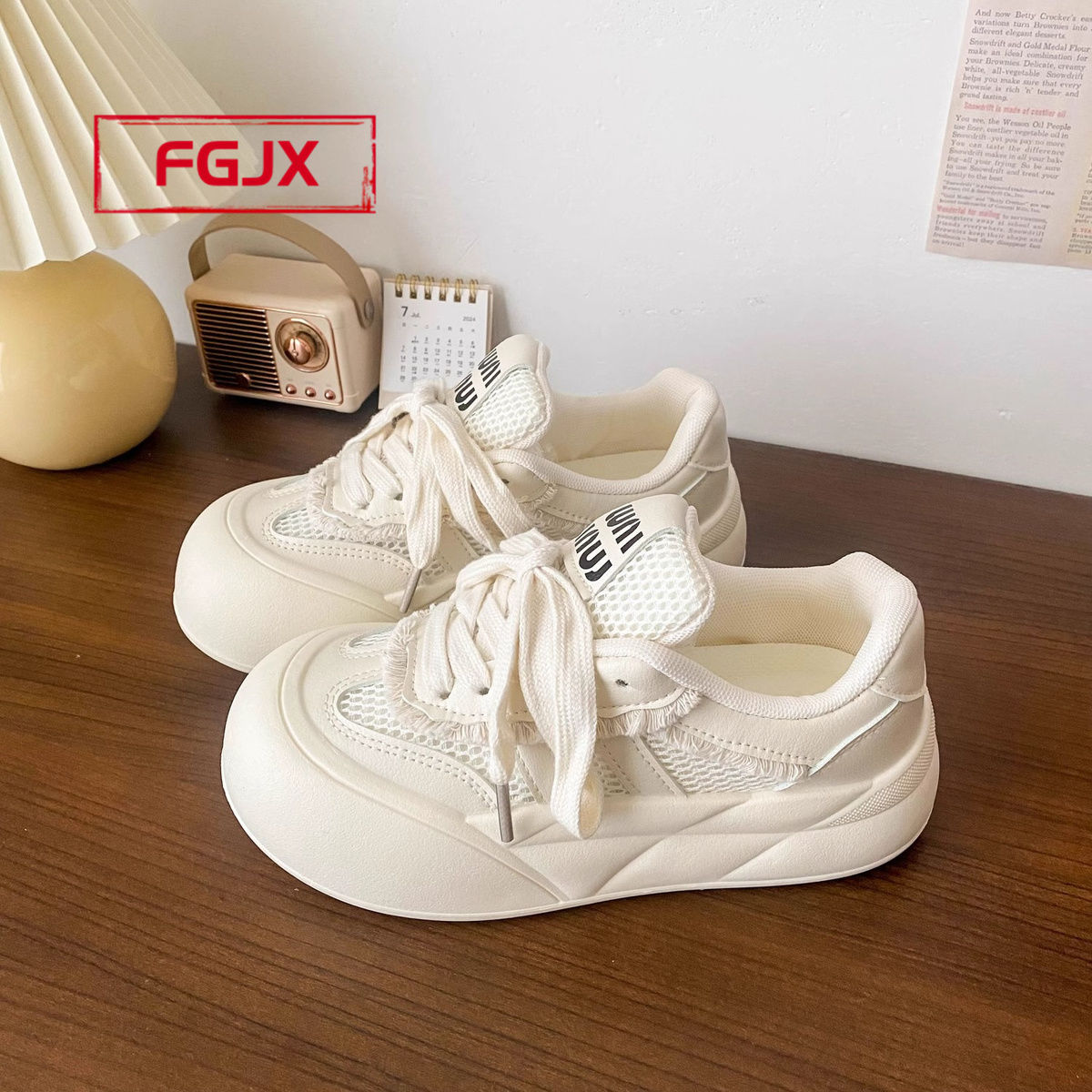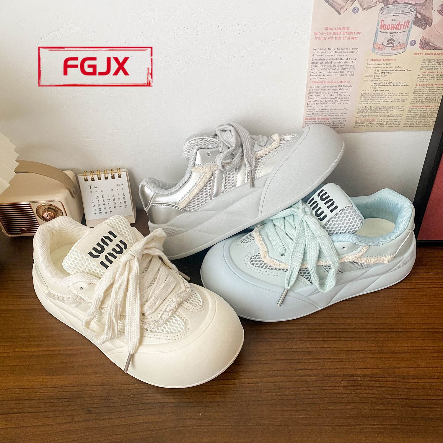 2024 verano malla transpirable con suela gruesa zapatos blancos pequeños muñeca cabeza coreana zapatos de pan de estilo de puerto zapatos casuales skate