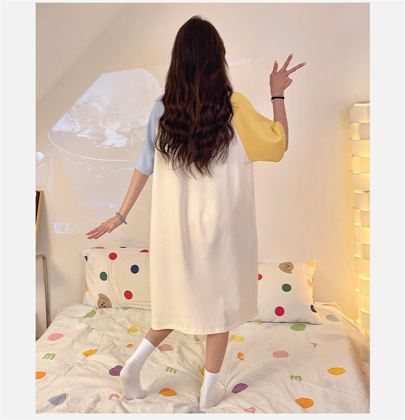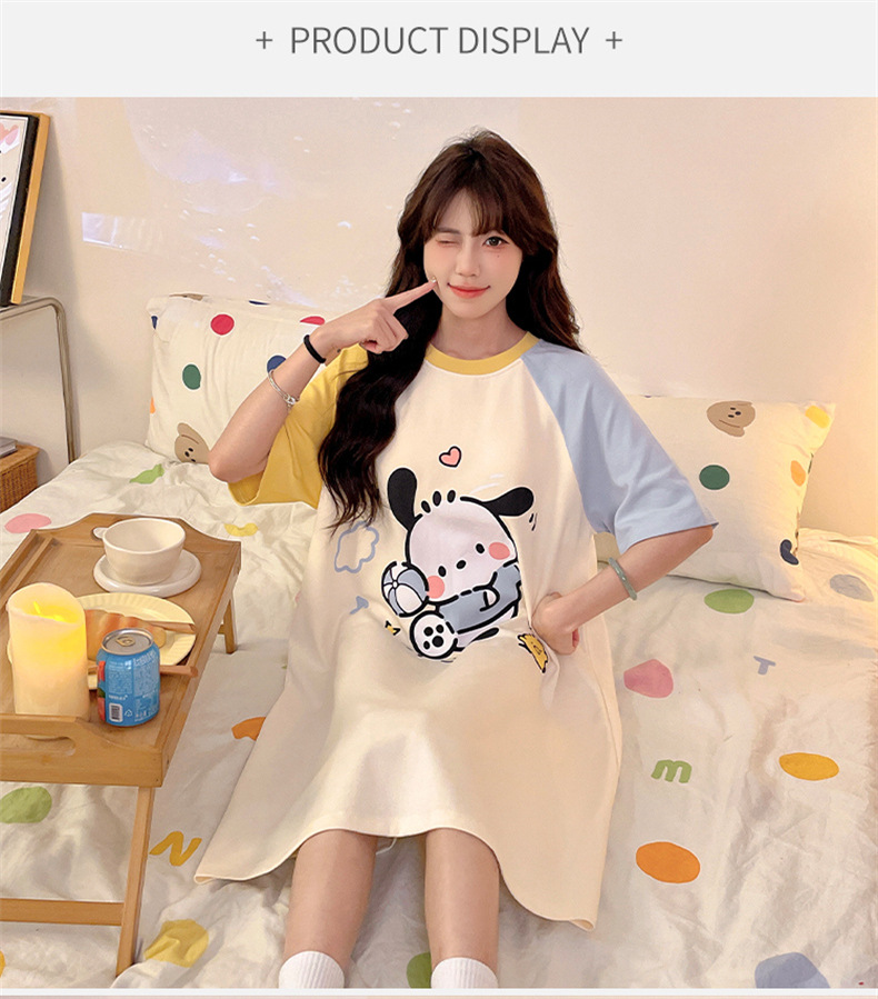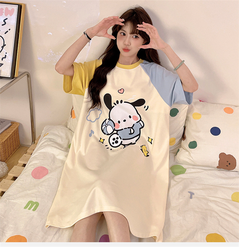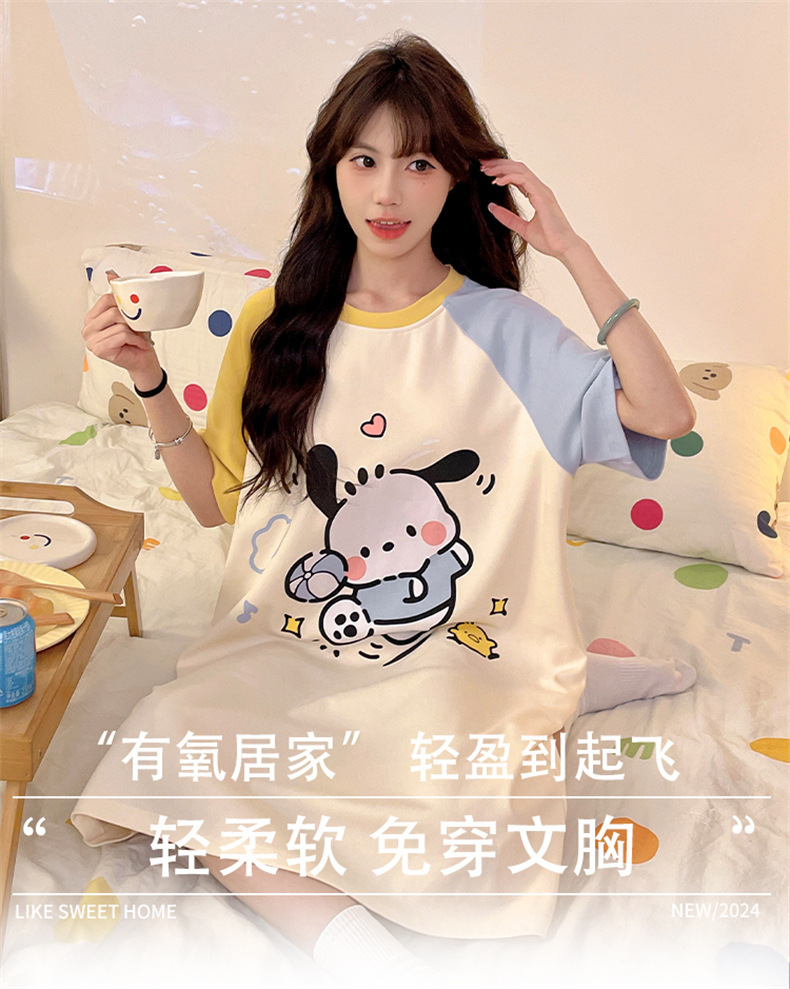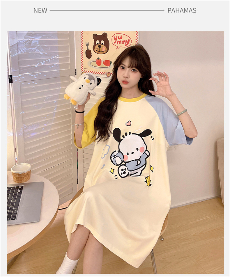 2025 nuevo perro Pachia con cojín de pecho pijama de verano mujer de algodón de cuello redondo dibujos animados lindos pijamas largos ropa para el hogar