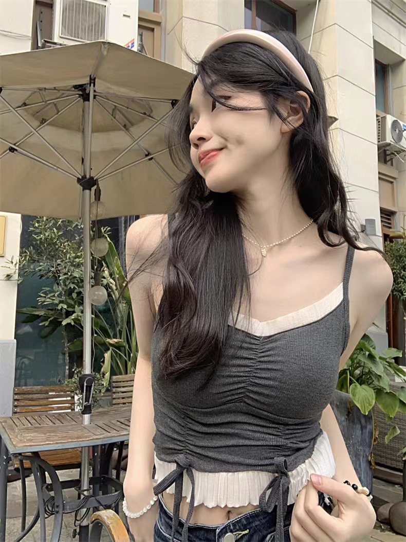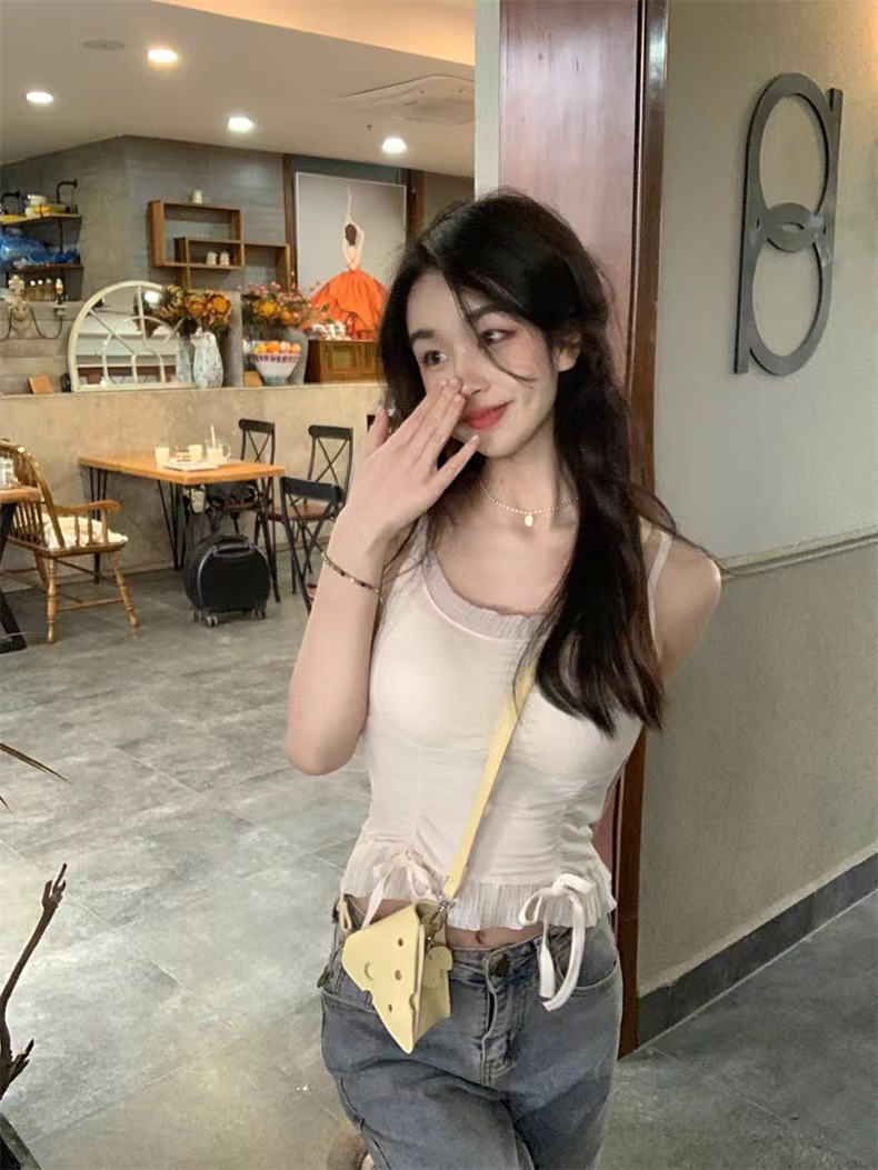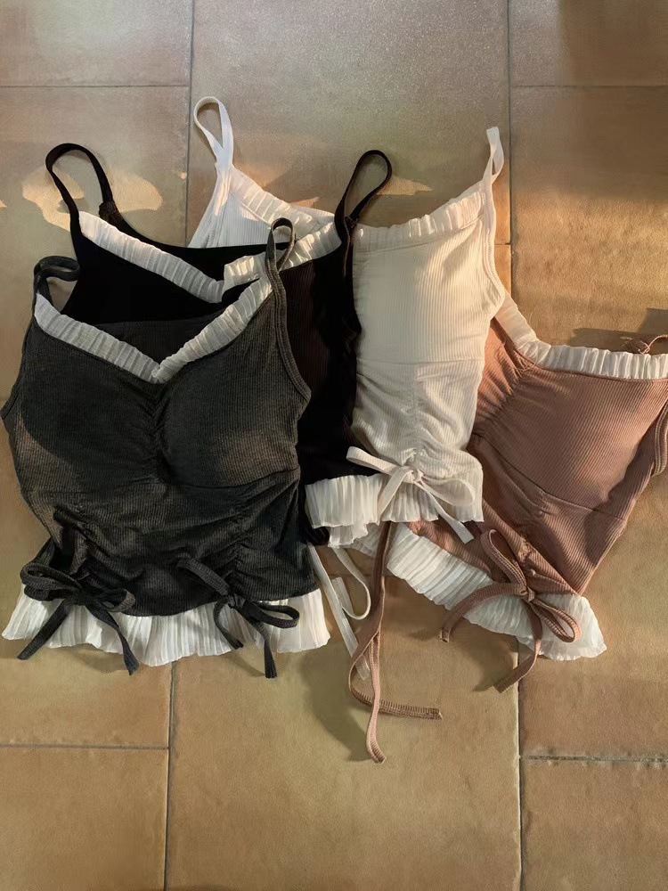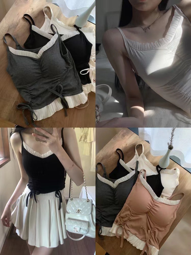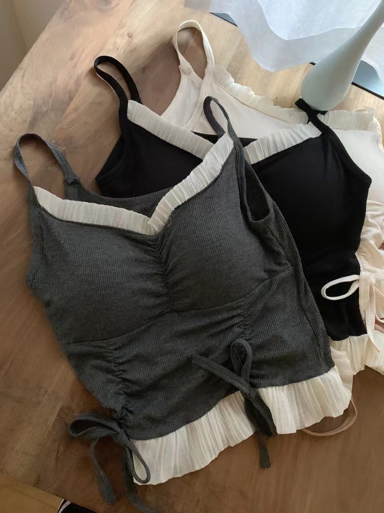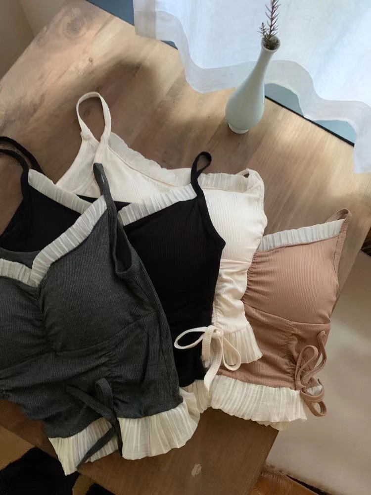 Estilo de ballet coreano chica con almohadilla en el pecho anudada oreja de madera deseo puro sexy chica caliente desgaste interior desgaste exterior camisola mujeres