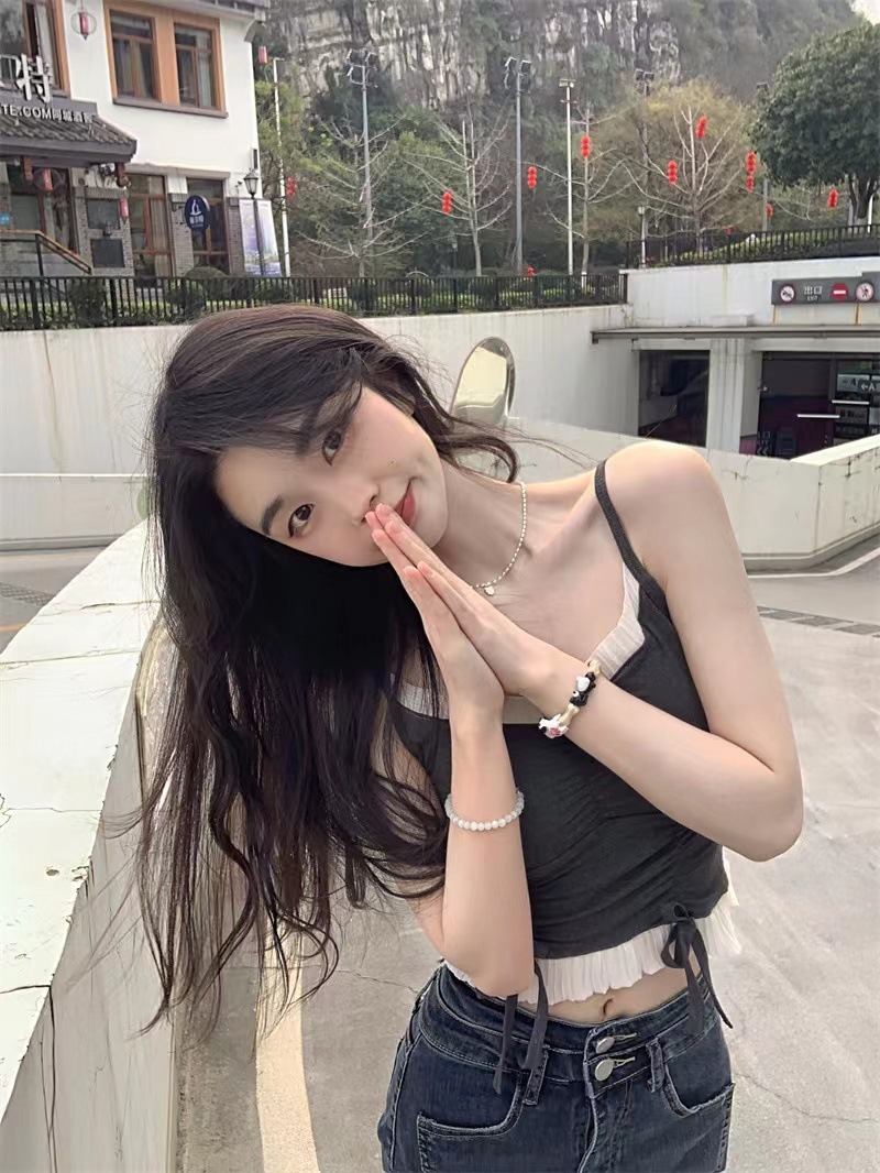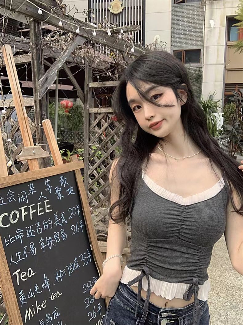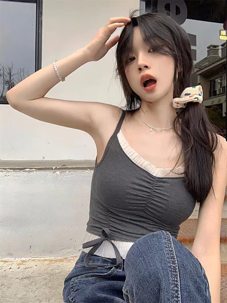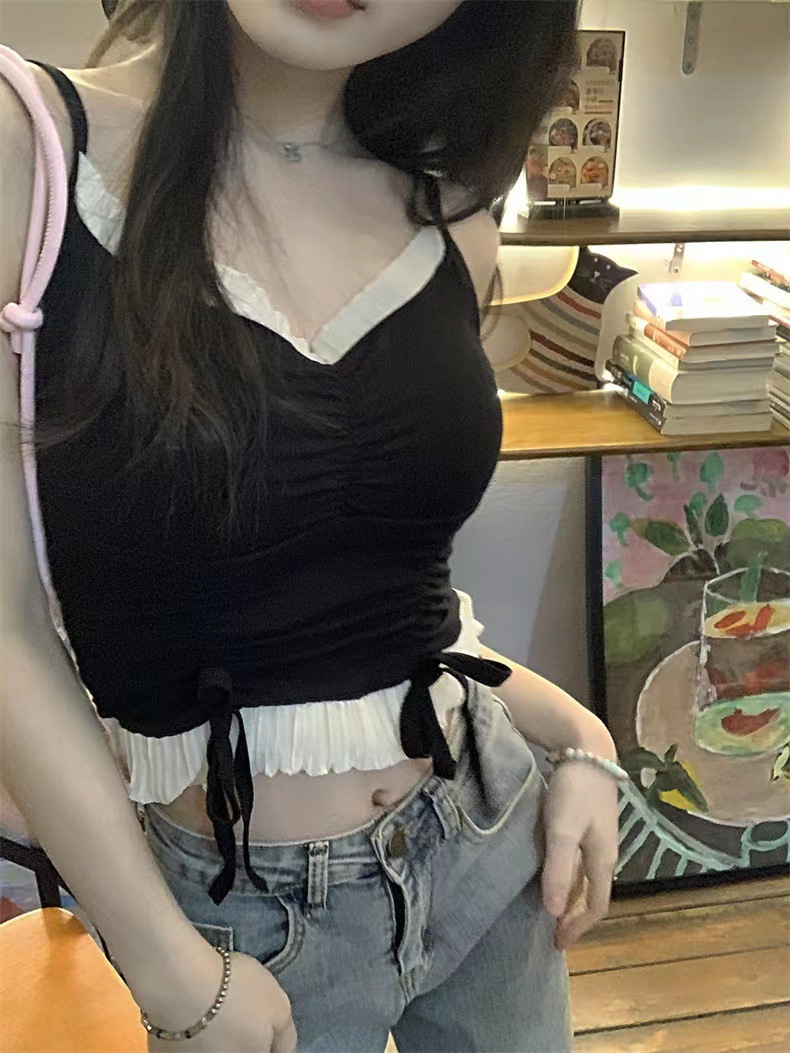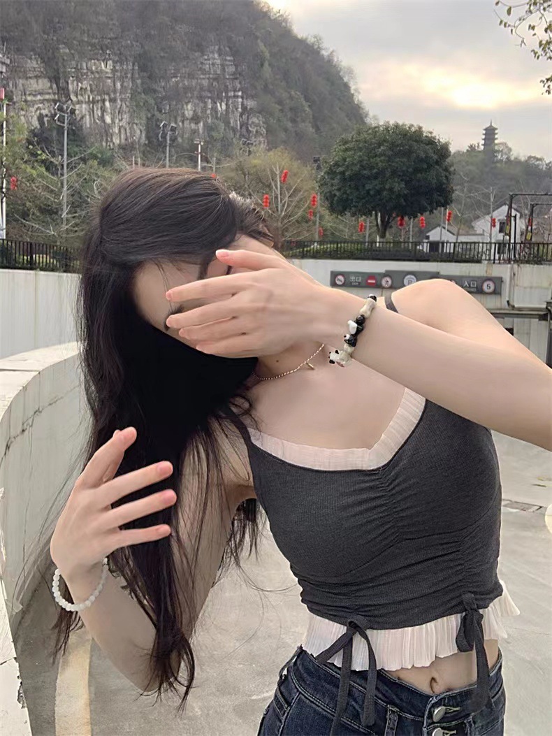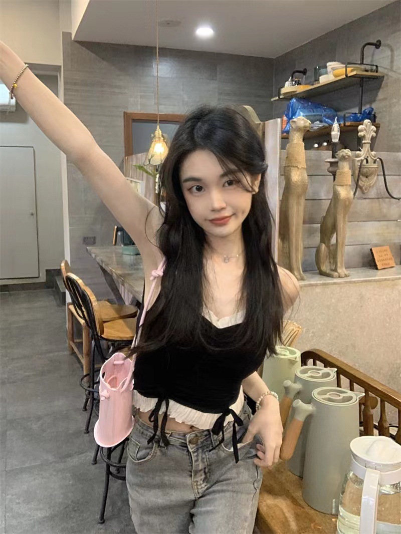 Estilo de ballet coreano chica con almohadilla en el pecho anudada oreja de madera deseo puro sexy chica caliente desgaste interior desgaste exterior camisola mujeres