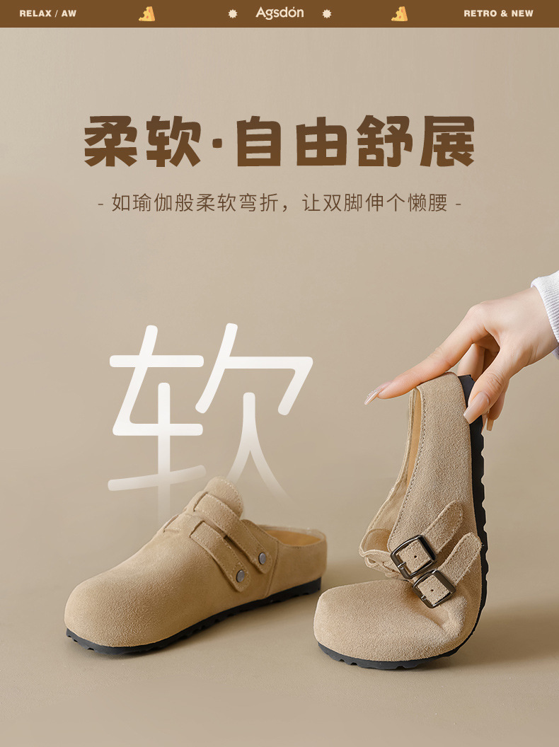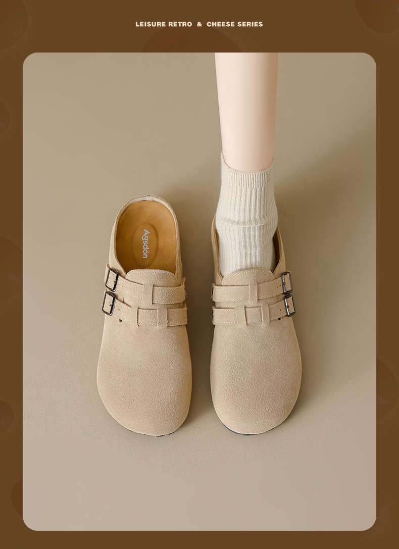 Augu Shi Deng grueso Bocken zapatos de mujer 2025 nuevo estilo de primavera con una base suave Bocken zapatillas de cabeza de un pie