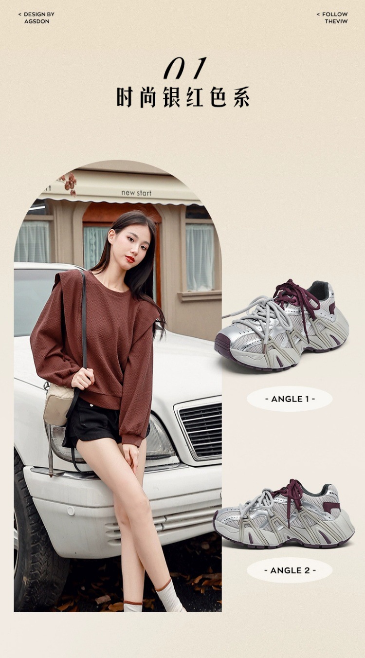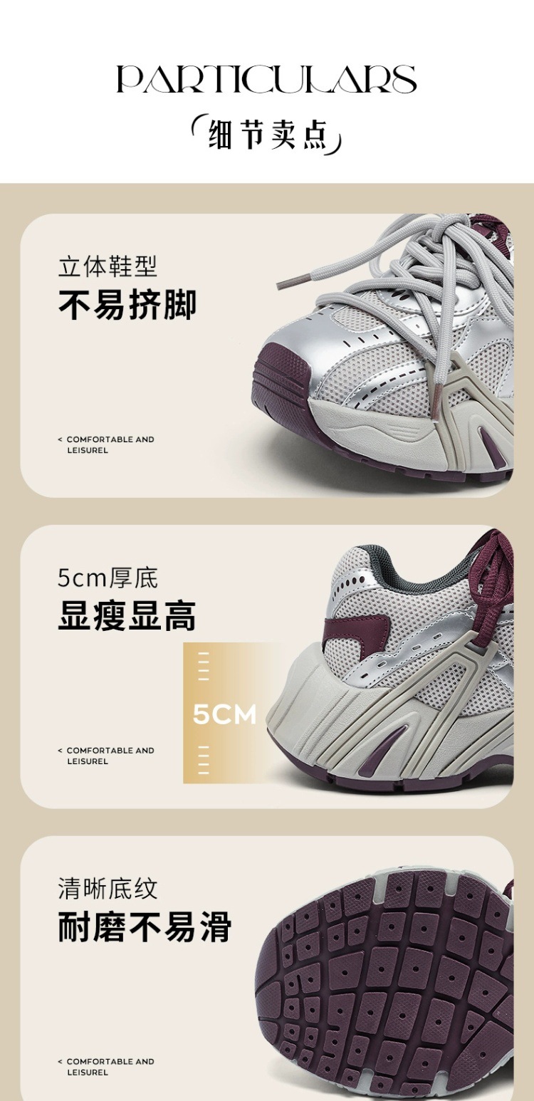Augu Shi Deng plata zapatos de papá para mujeres 2025 nuevo otoño invierno retro zapatos deportivos de suela gruesa zapatos casuales de montaña para mujeres