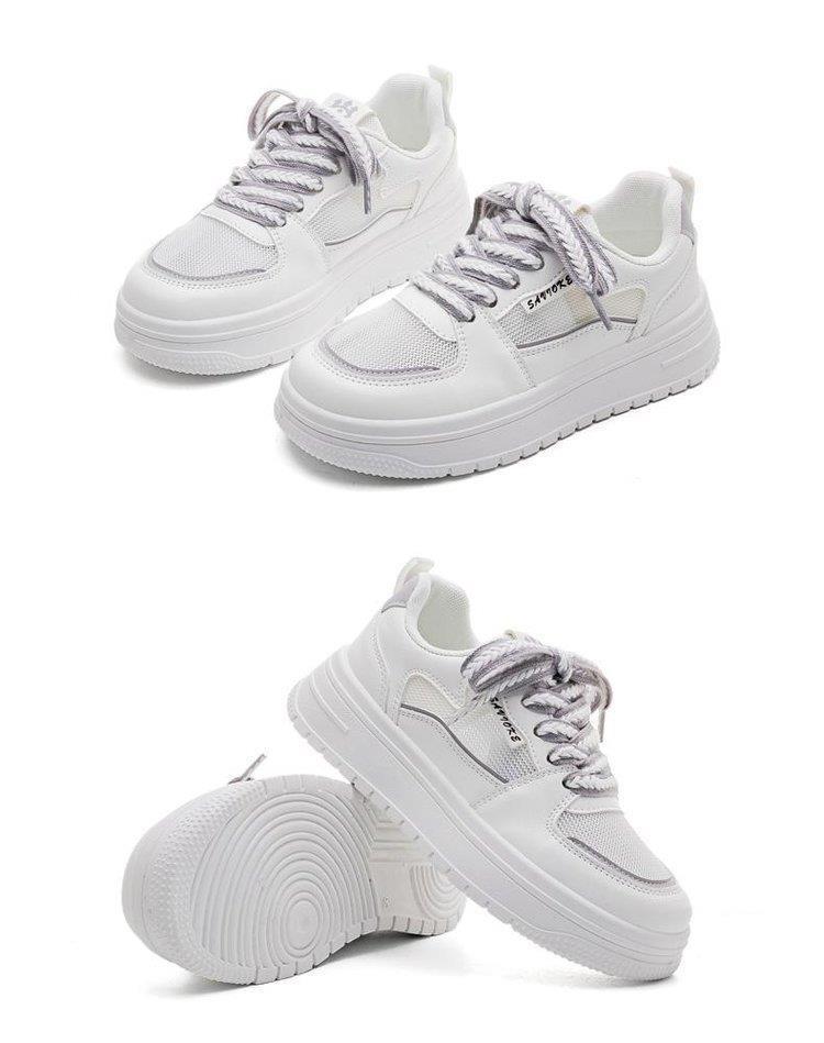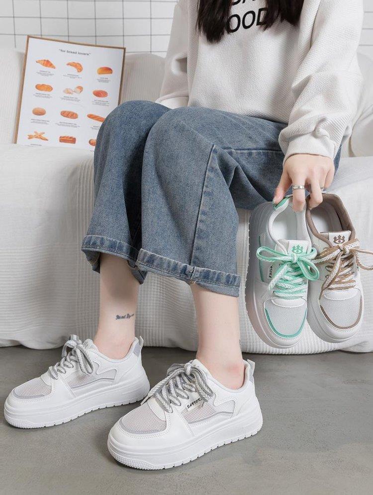 2024 primavera nueva moda versátil zapatos blancos pequeños zapatos deportivos casuales de mujer zapatos de papá explosión zapatos de suela gruesa