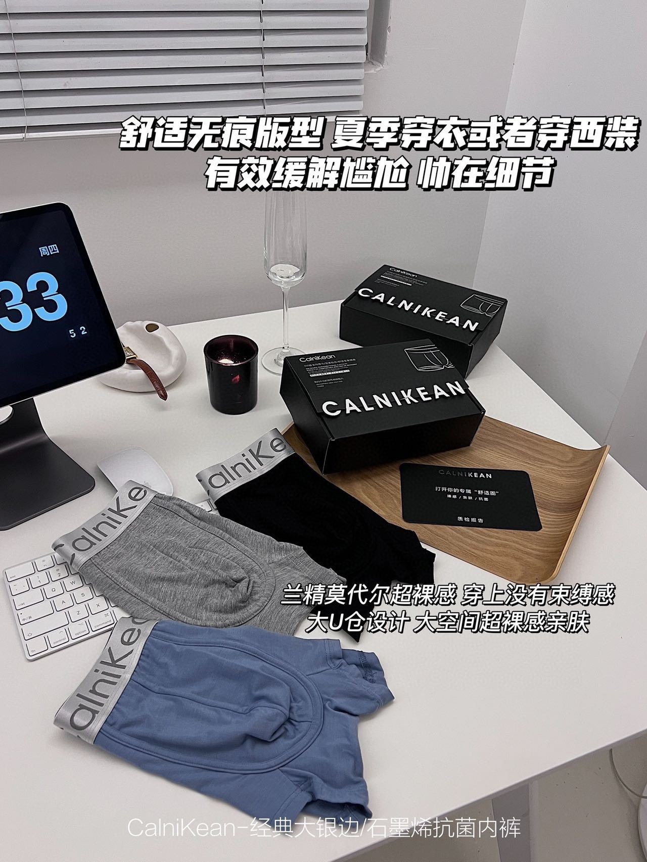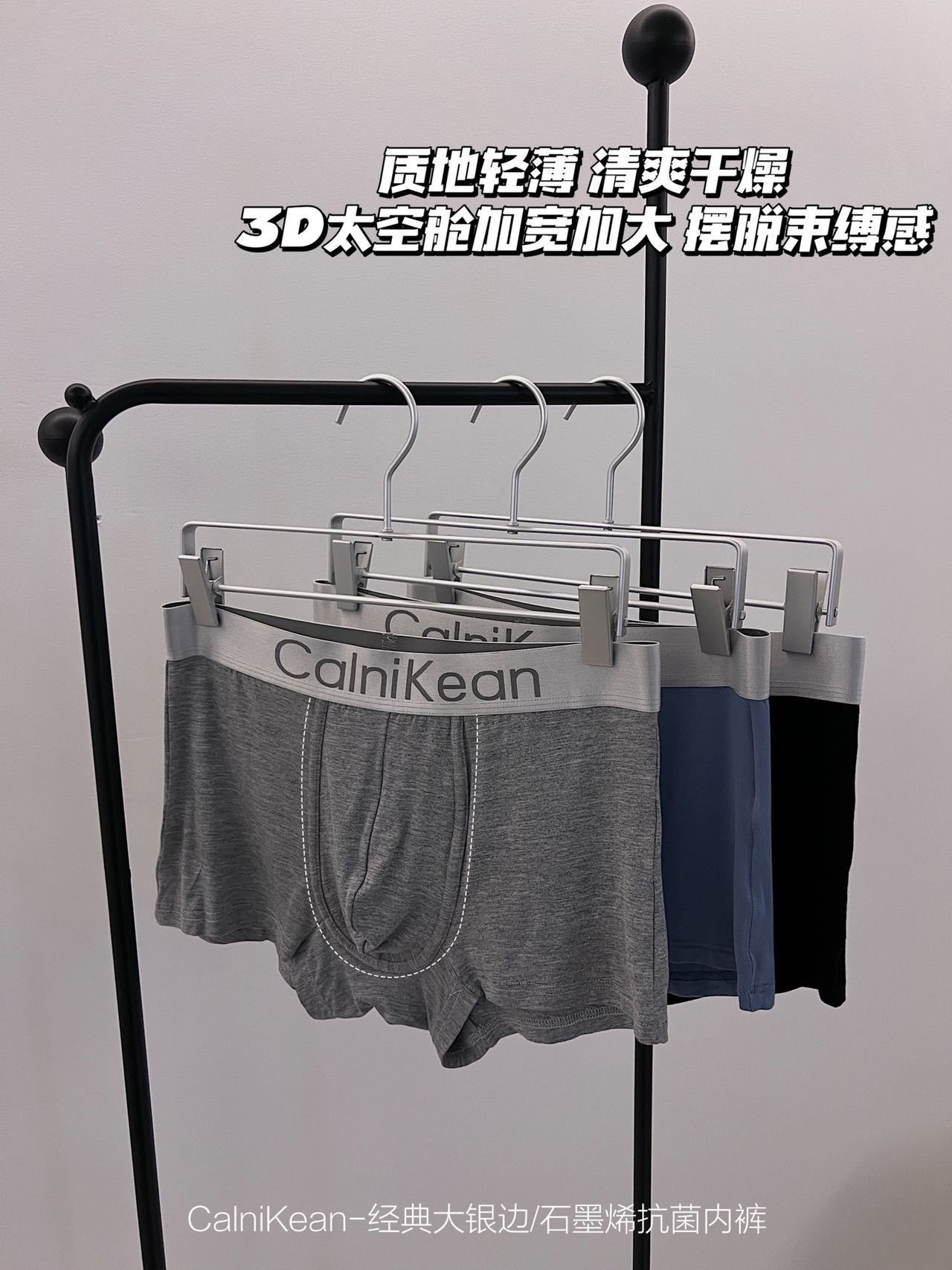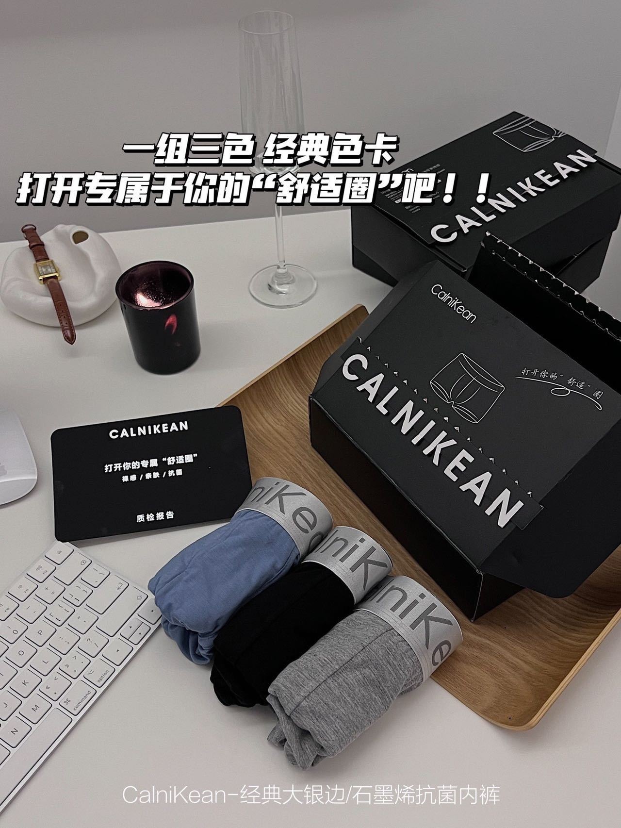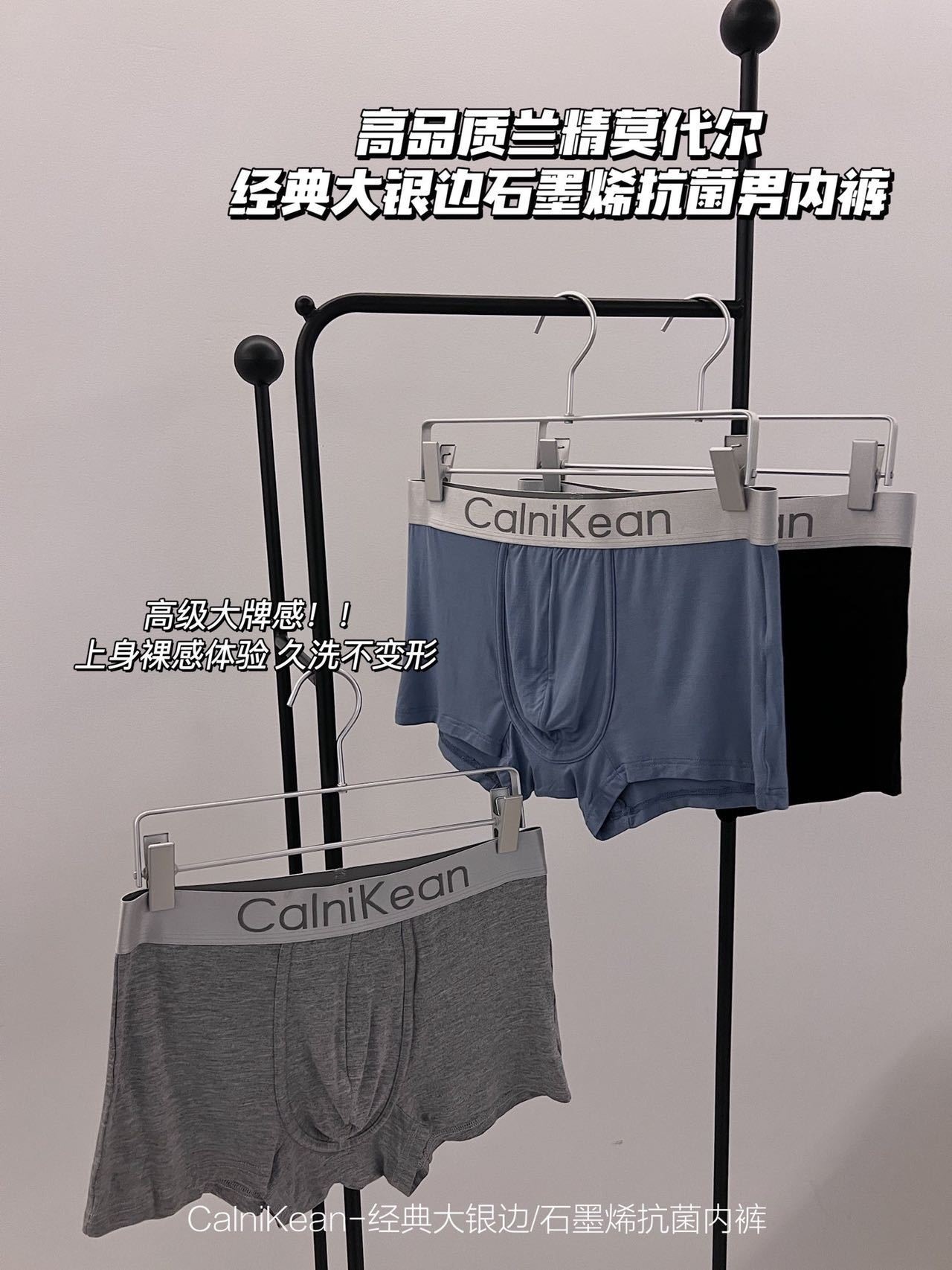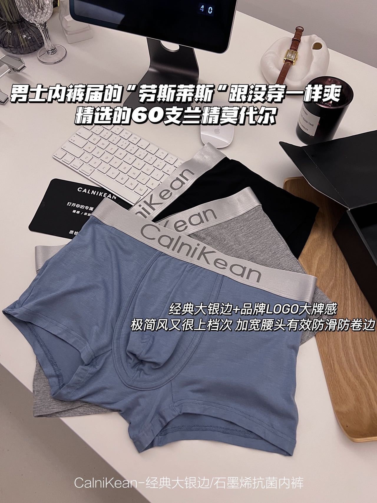 C clásico Borde de plata grande Graphene ropa interior de los hombres 3 caja de regalo transpirable Mediados de cintura boxeadores