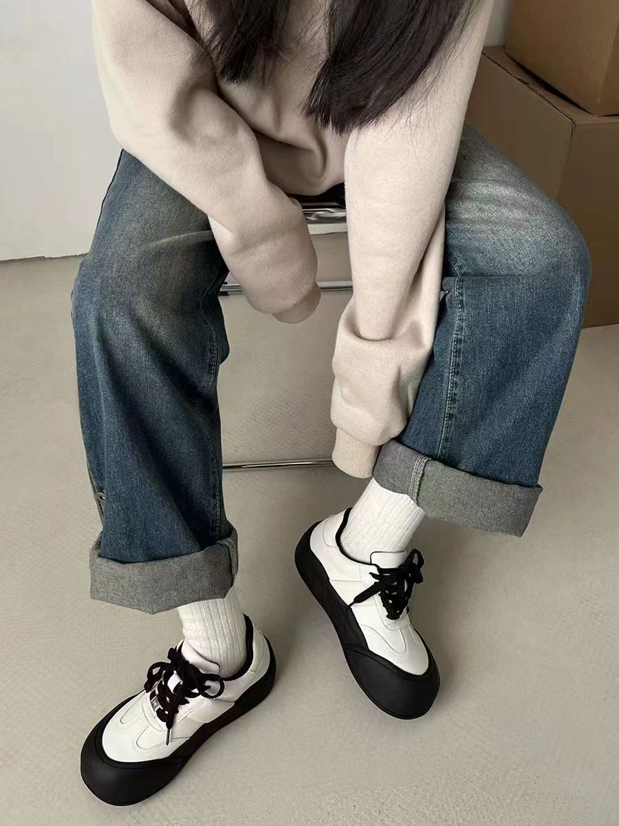 2024 primavera universal zapatos de mujer cabeza redonda cómodos zapatos blancos de suela suave en zapatos de pan de suela gruesa