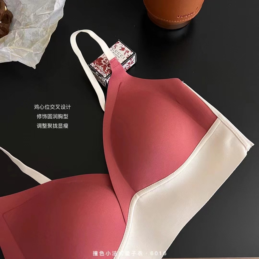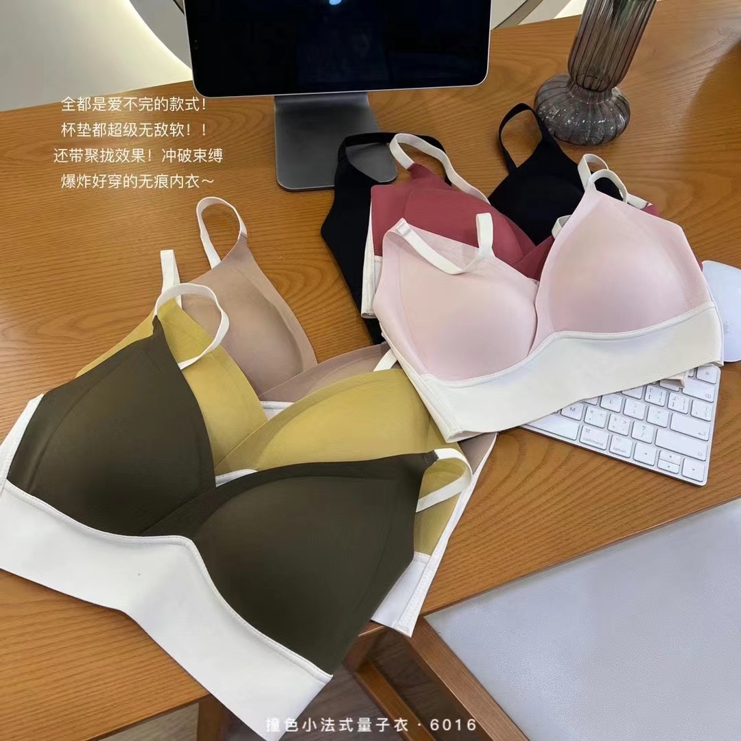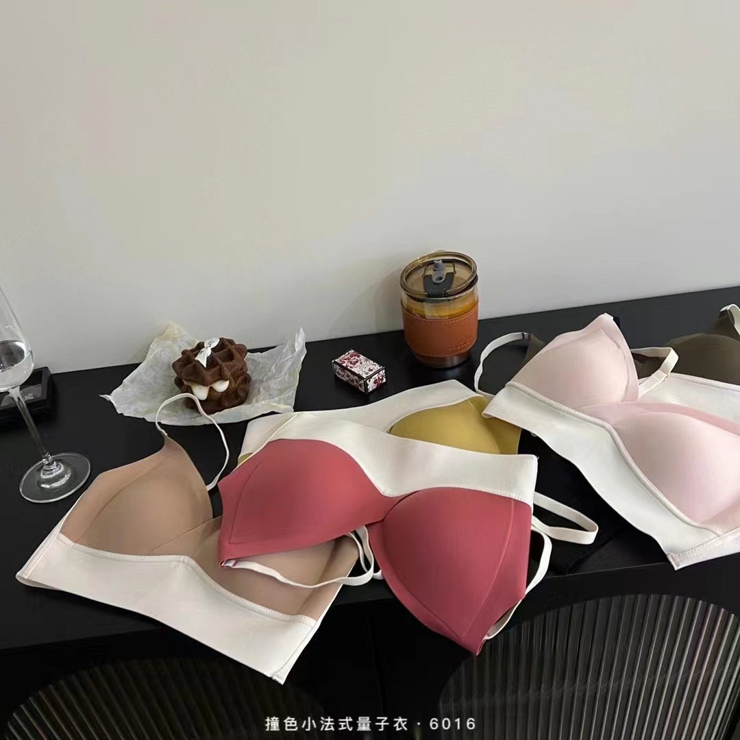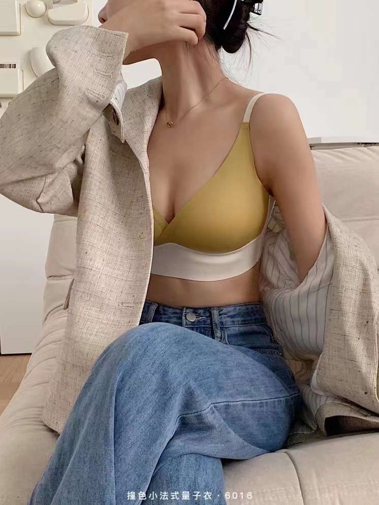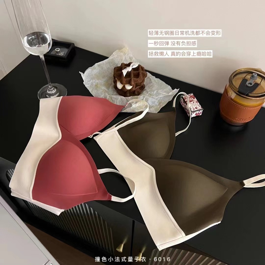 Thin Seamless French Triangle Cup Quantum clothing contraste correa de color taza fija pequeño cofre reunido sujetador inalámbrico de mujer