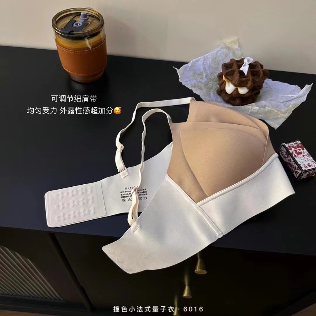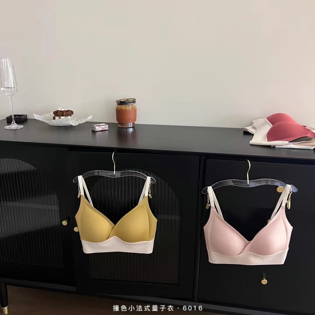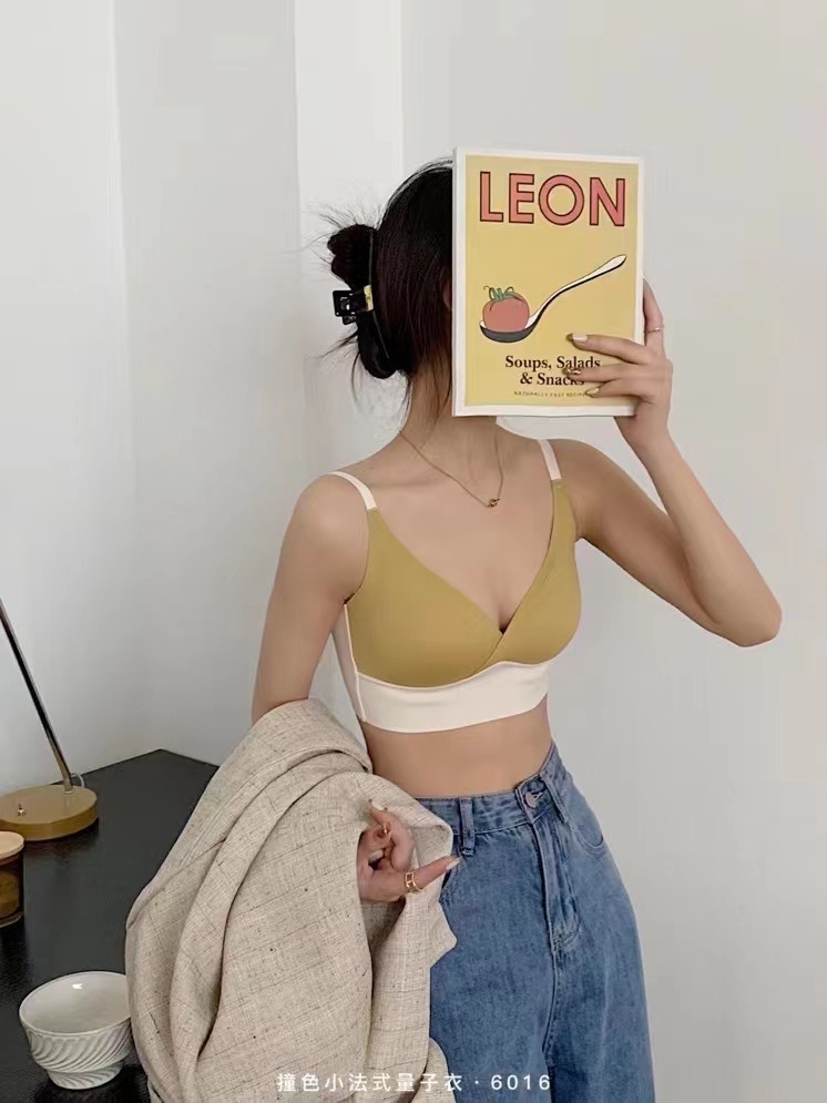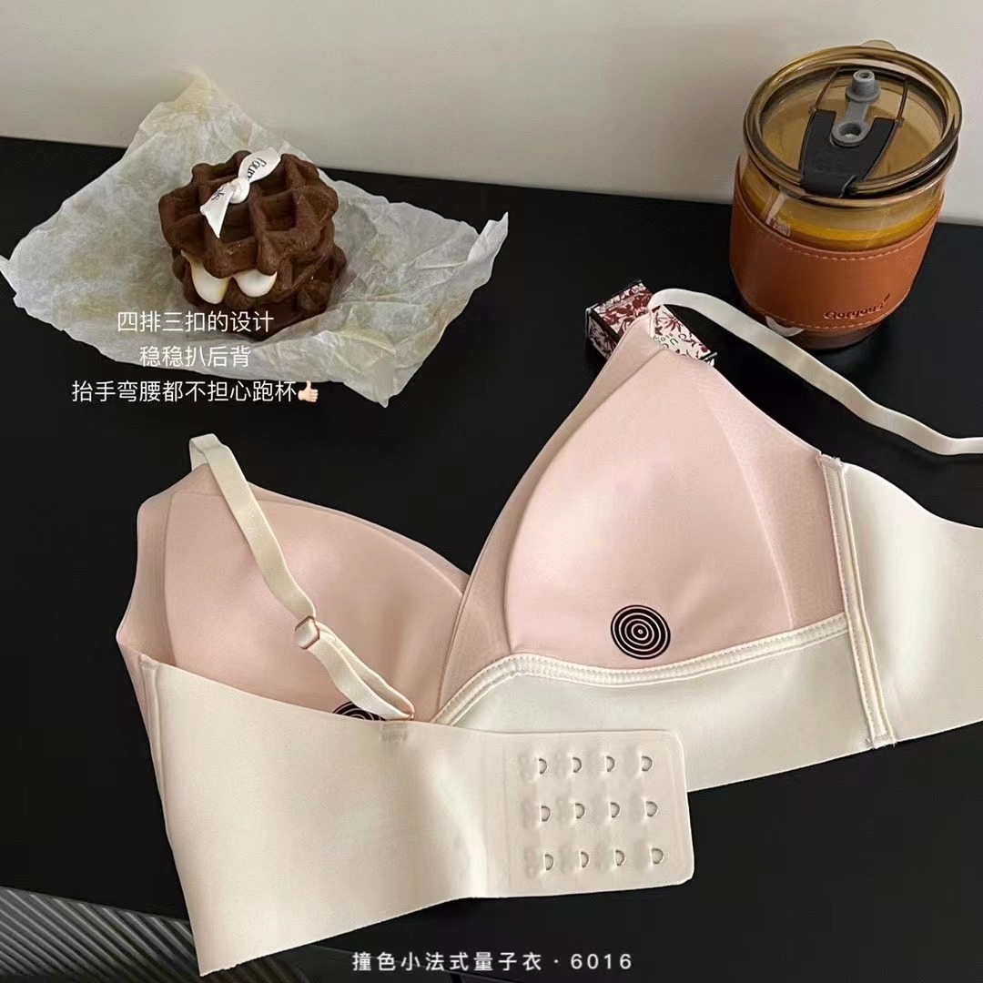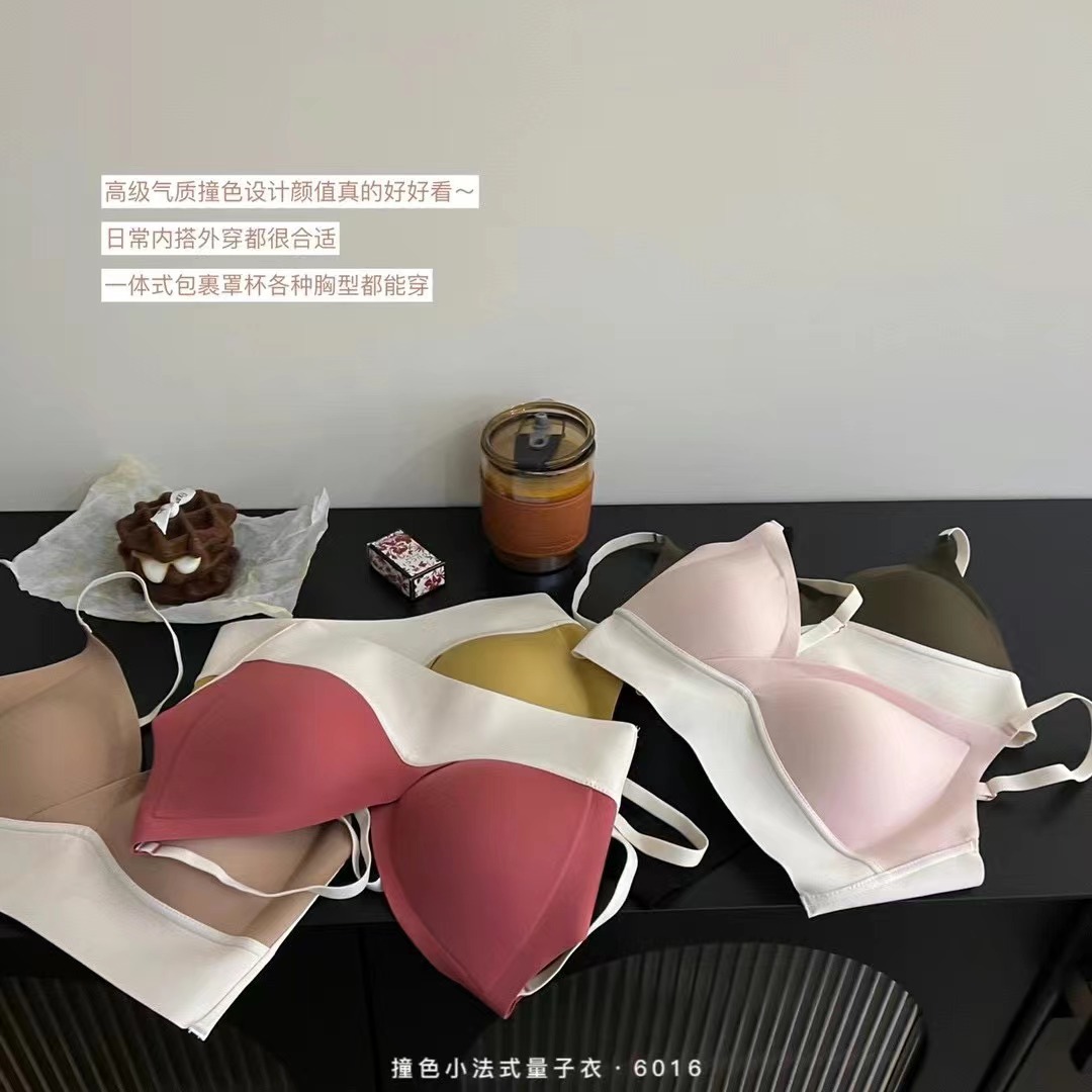 Thin Seamless French Triangle Cup Quantum clothing contraste correa de color taza fija pequeño cofre reunido sujetador inalámbrico de mujer