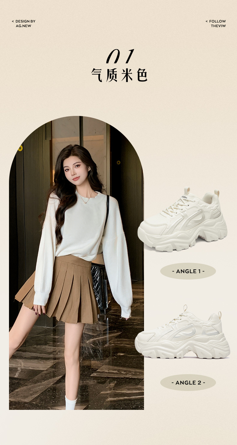 Augu Shi Deng zapatos para mujeres 2025 nuevo otoño con suela gruesa pequeña moda blanca casual zapatos deportivos de moda
