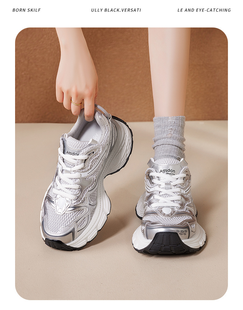 Zapatillas Augusden para mujer, novedad de verano 2025, deportivas casuales de suela gruesa para personas de baja estatura, zapatillas de malla para correr