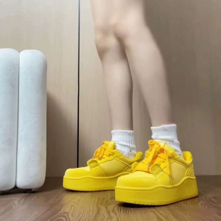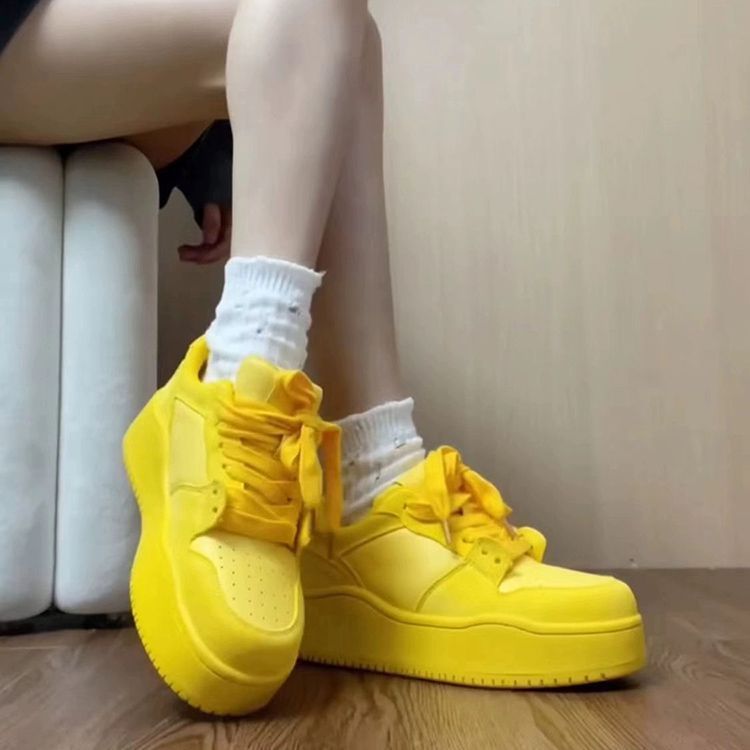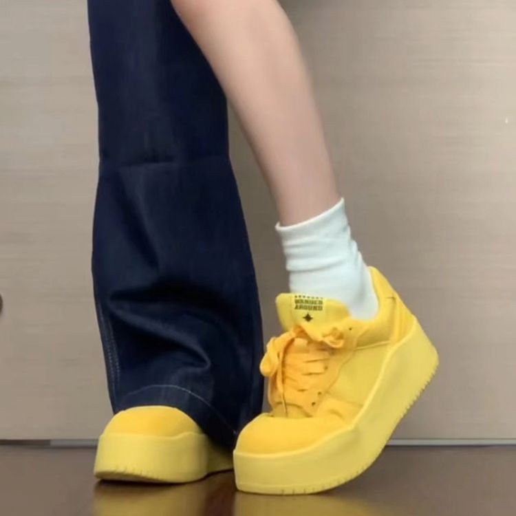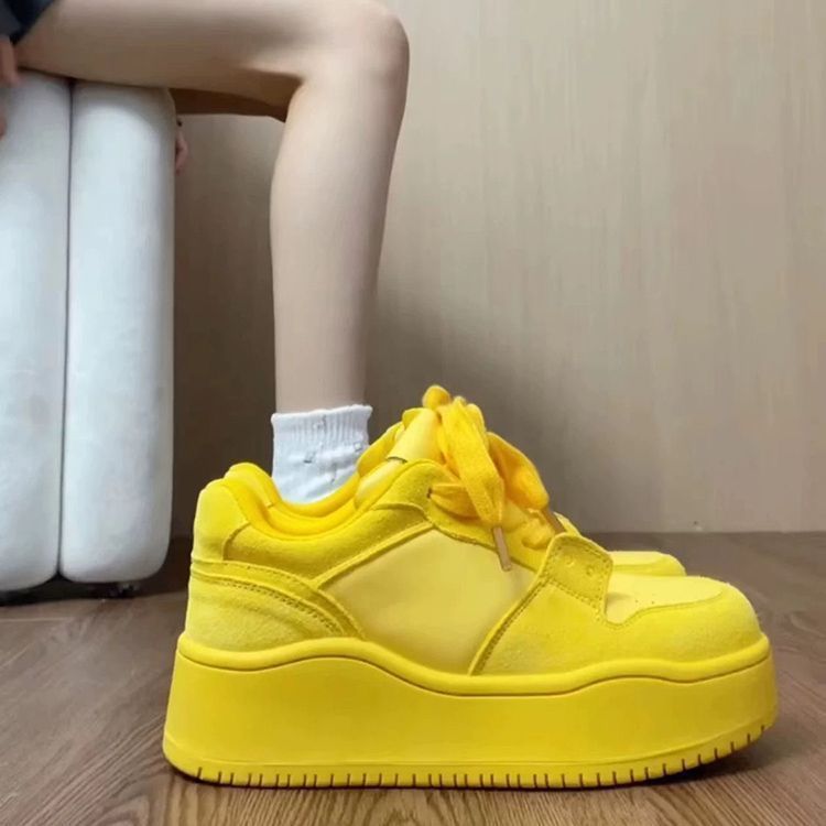 El alto valor de la cara en línea explosión de zapatos de skate amarillos para mujeres 2024 verano nuevo verano dopamina suela gruesa zapatos casuales de altura