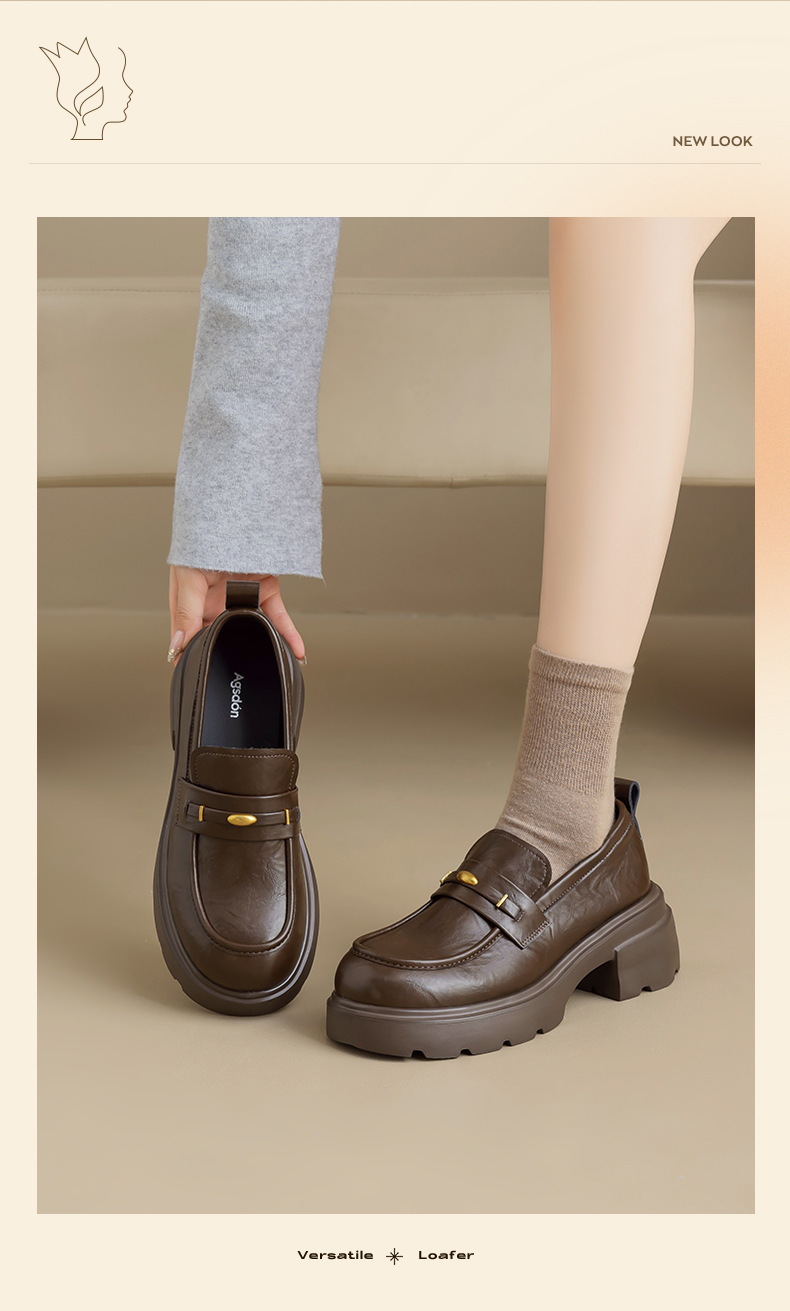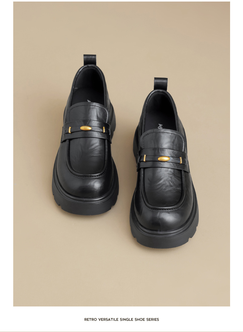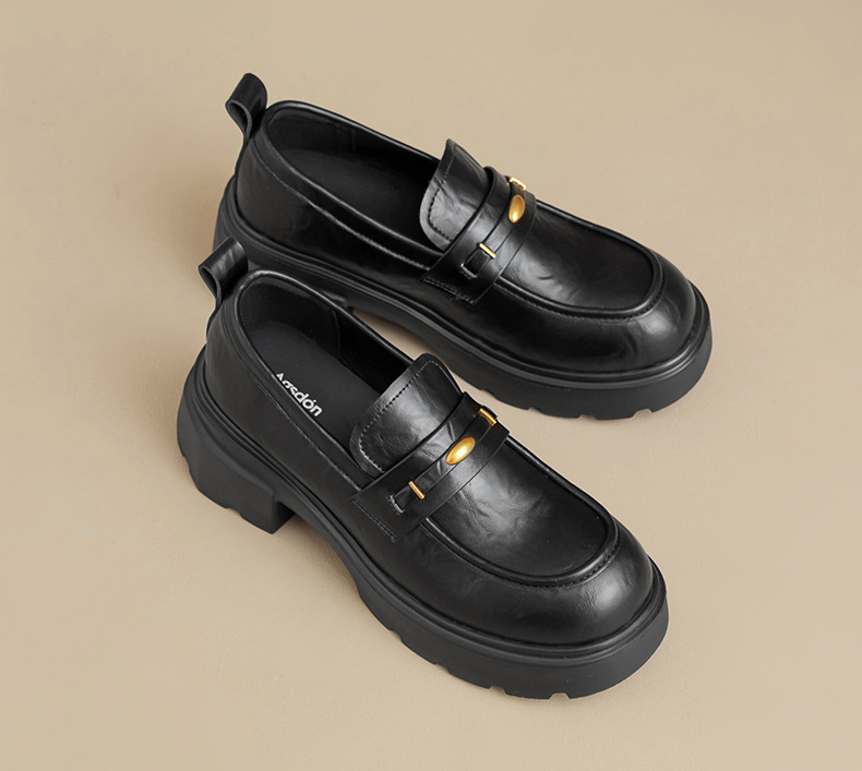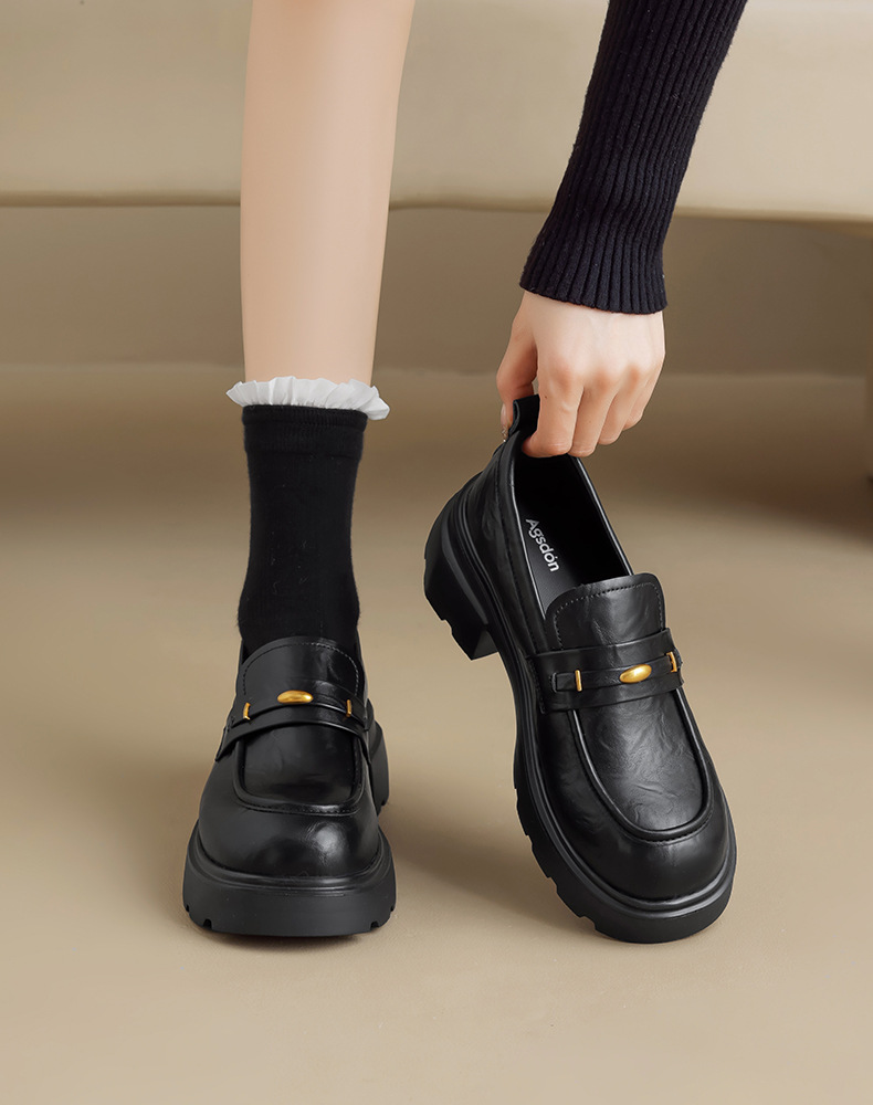 Zapatos de Lefour de fondo grueso para mujeres 2025, nuevos zapatos de invierno gigantescos con una falda de estilo británico zapatos de cuero pequeños zapatos individuales