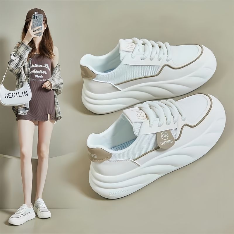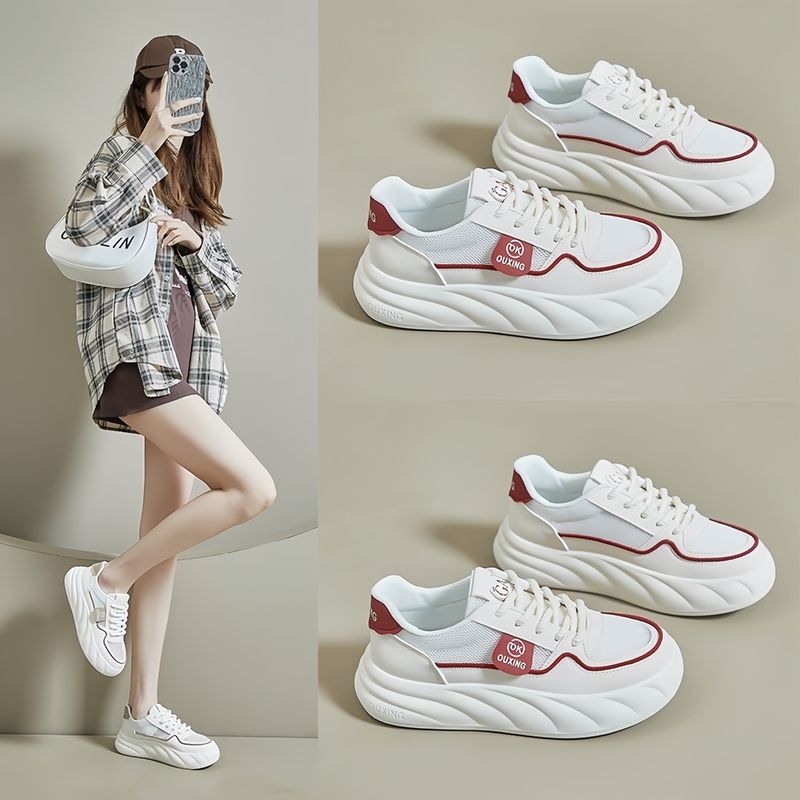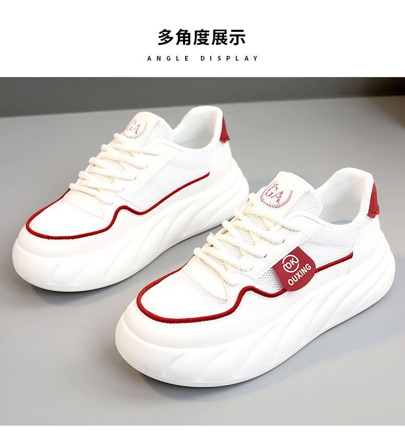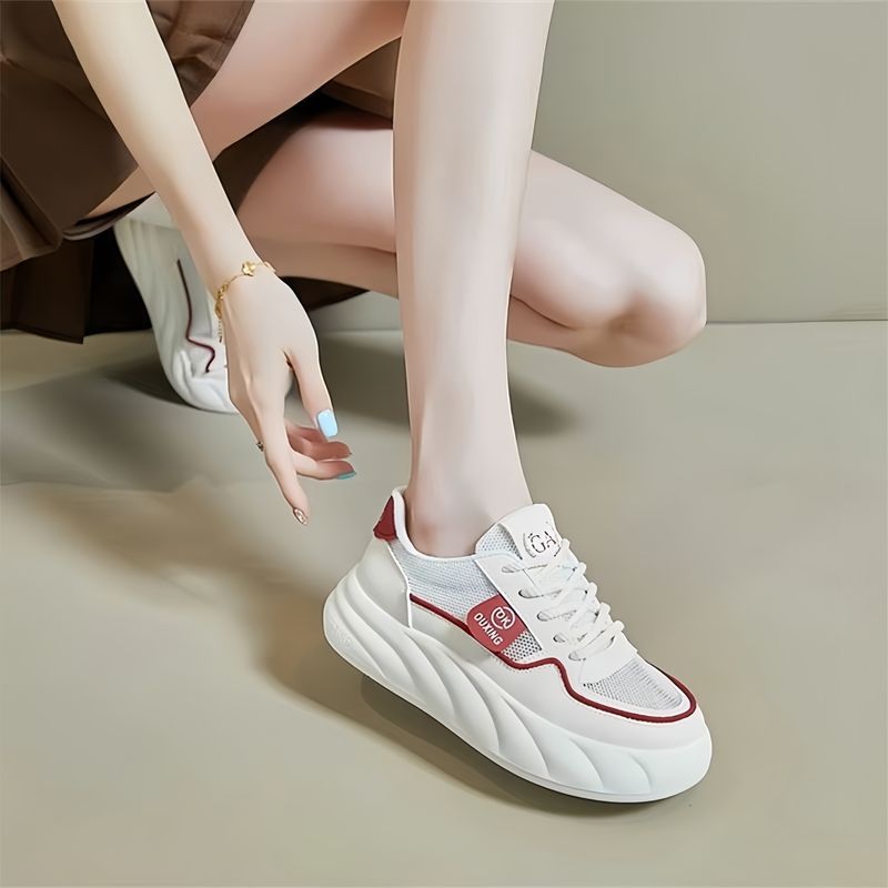 Zapatos de skate de moda cómodos para mujeres 2024 verano nuevo aumento de altura transpirable versátil zapatos blancos red zapatos casuales para estudiantes