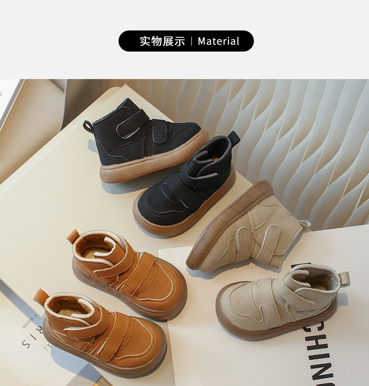 Zapatos para niños, zapatillas de algodón, zapatos de terciopelo para niños nuevos de invierno 2024, zapatillas de caña alta para bebés, zapatos cálidos de algodón