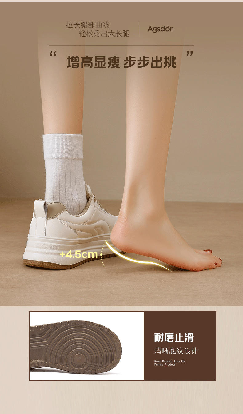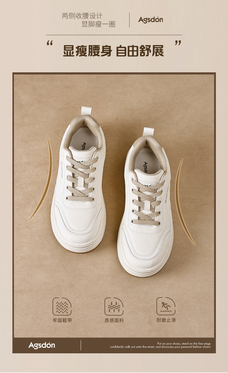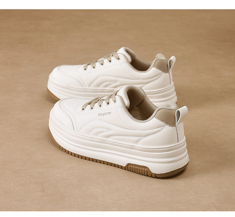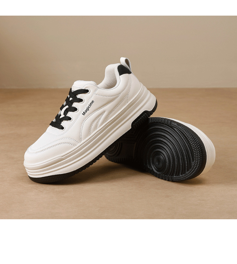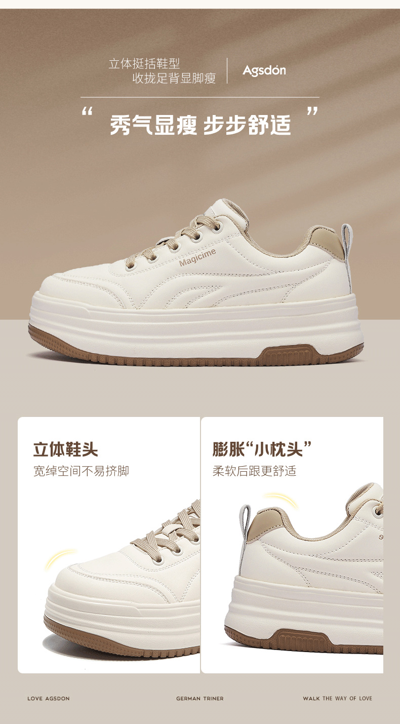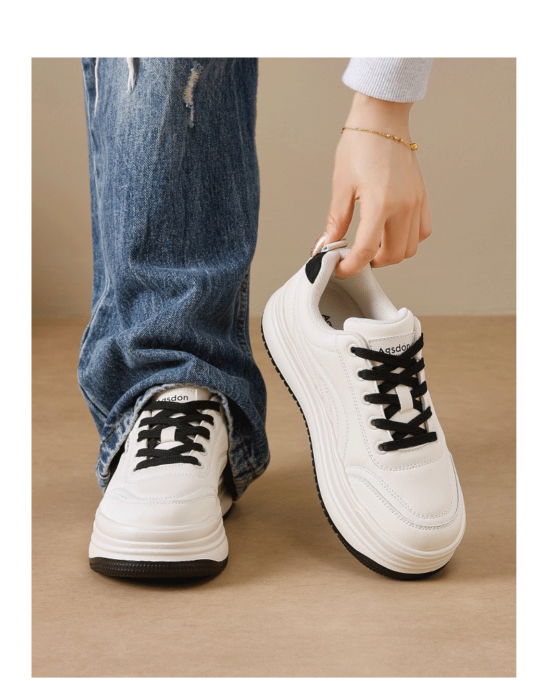 Augu Shi Deng zapatos blancos para mujeres 2025 nuevo otoño y invierno muffin de suela gruesa zapatos casuales al aire libre zapatos de skate blancos