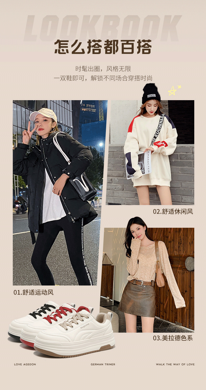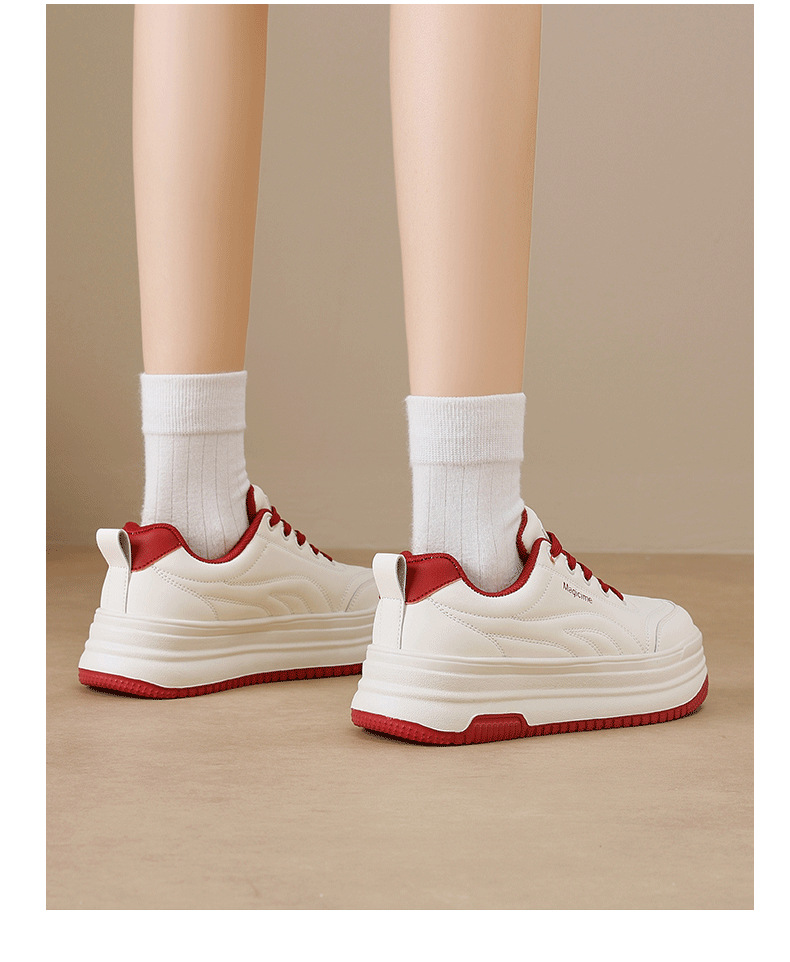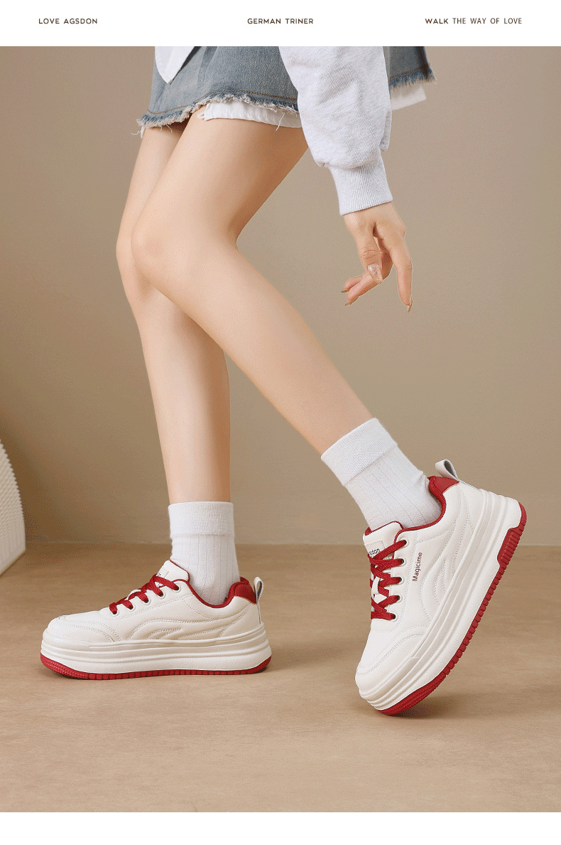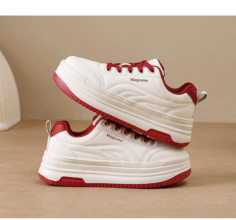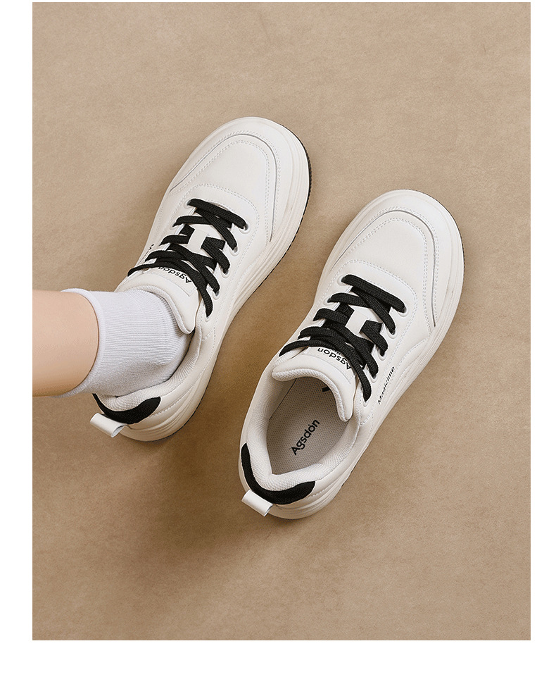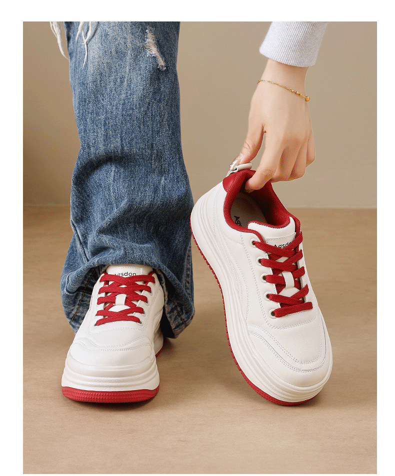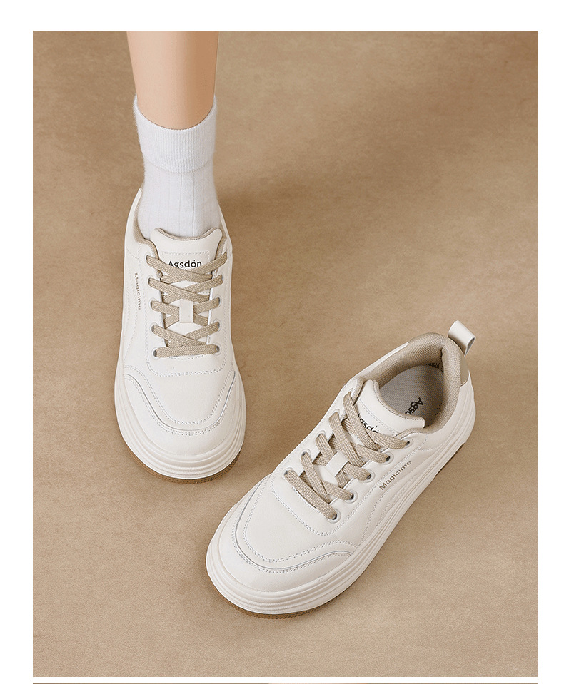 Augu Shi Deng zapatos blancos para mujeres 2025 nuevo otoño y invierno muffin de suela gruesa zapatos casuales al aire libre zapatos de skate blancos