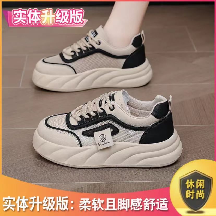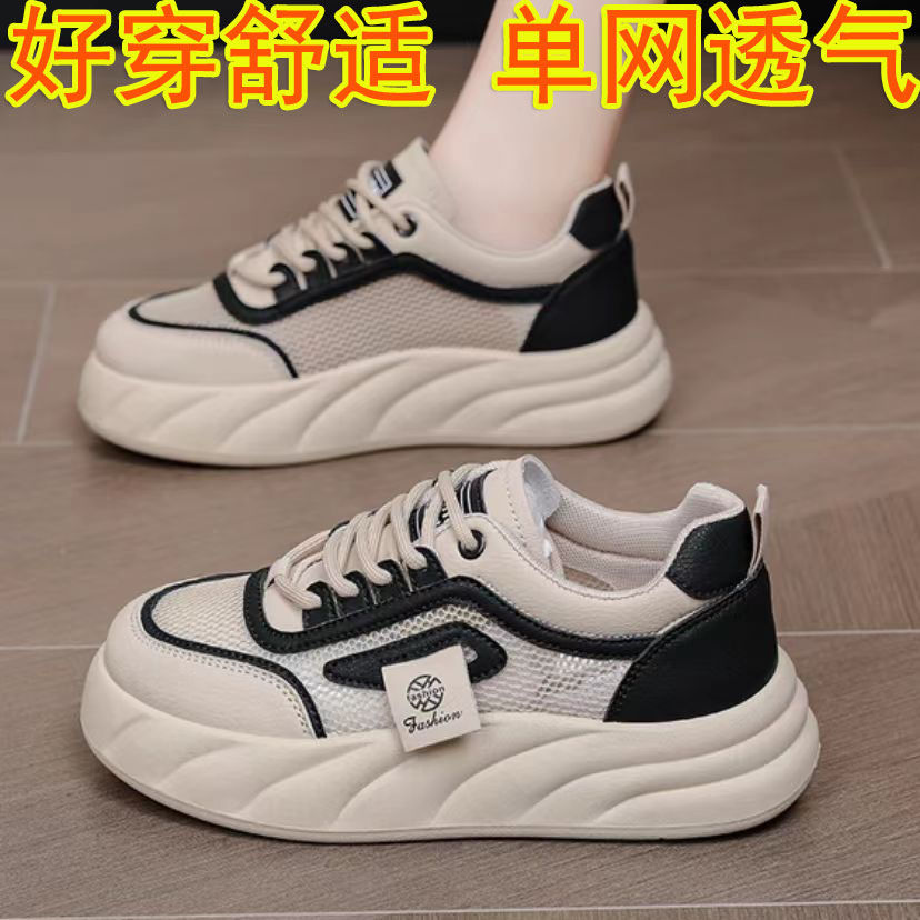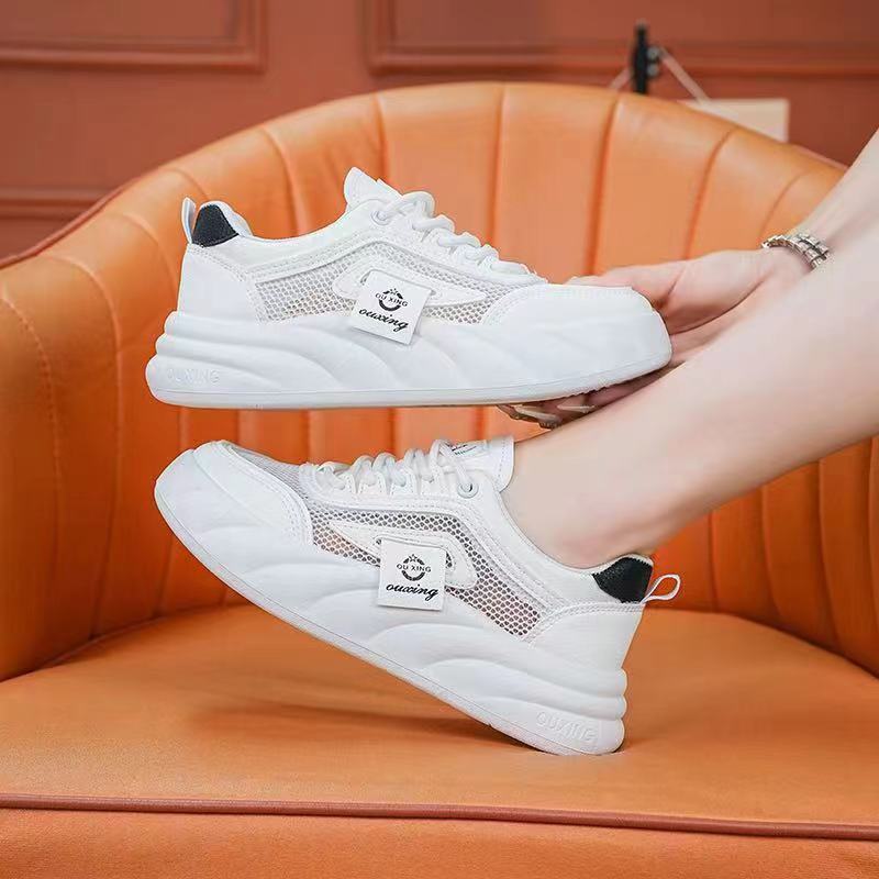 Zapatos de malla transpirables de color blanco para mujeres 2024 nuevos zapatos de pan de verano con suela gruesa versátil alta zapatos de suela suave para mujeres