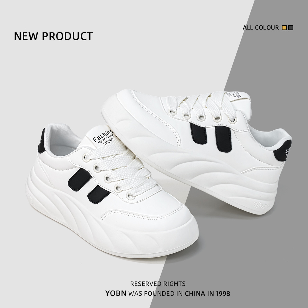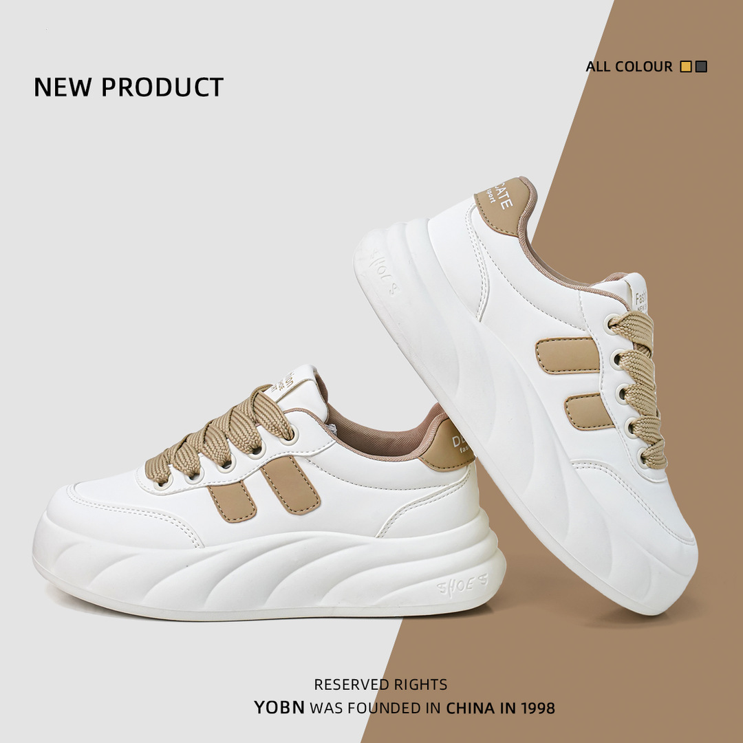 Zapatos blancos super calientes 2024 nuevos zapatos de skate ligeros de estilo universal con suela gruesa de tendencia de zapatos de pan de deporte casuales