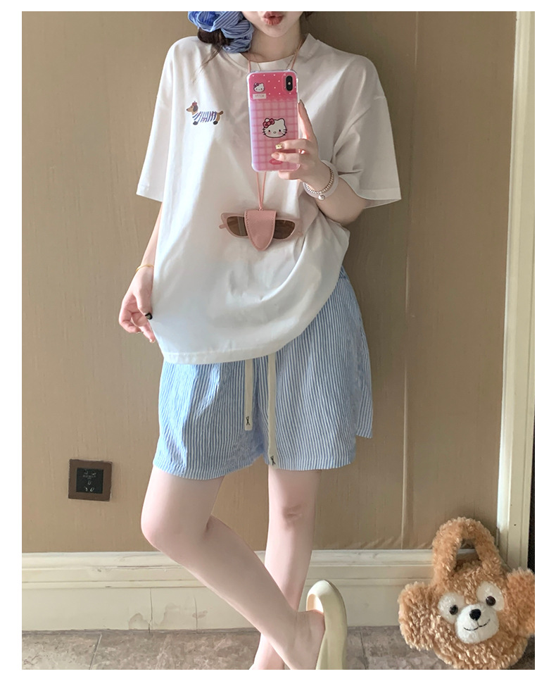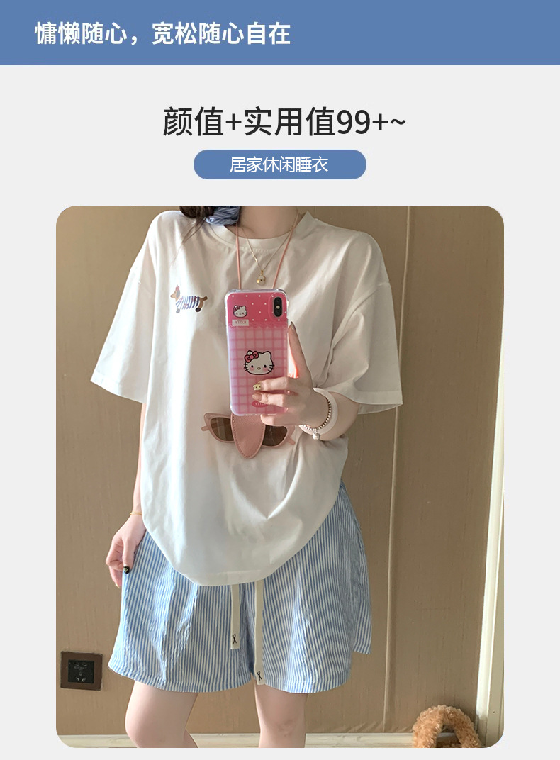 Pijamas de perro salchicha de dibujos animados para mujer verano de manga corta de algodón puro 2025 nuevo estilo traje de servicio a domicilio lindo para estudiantes