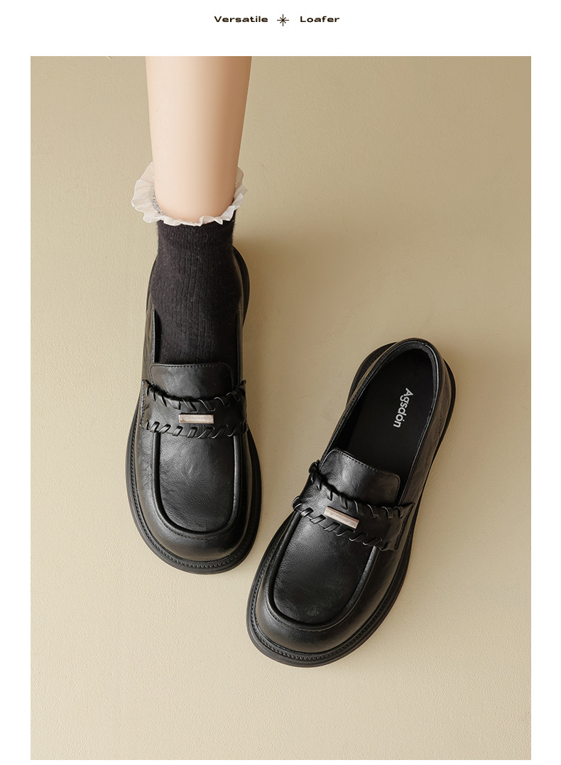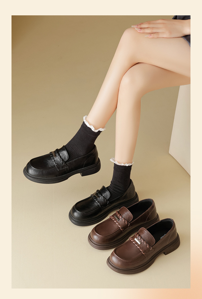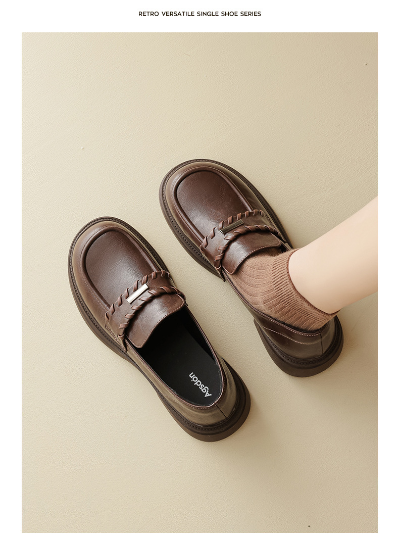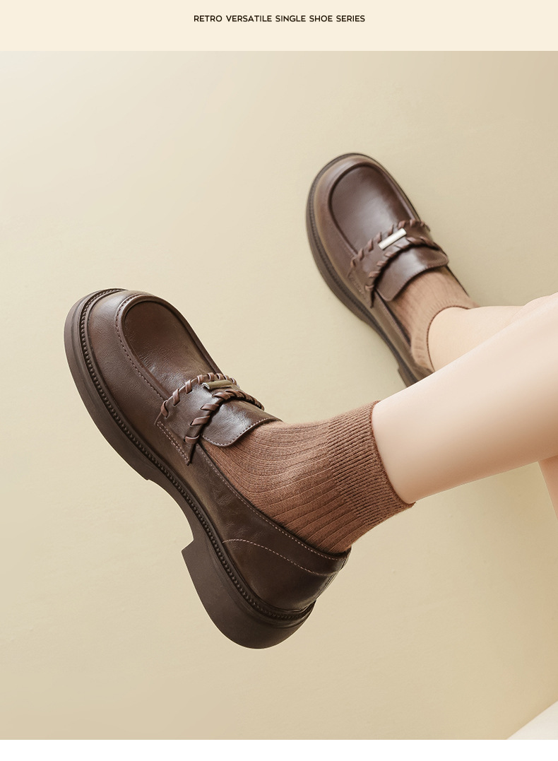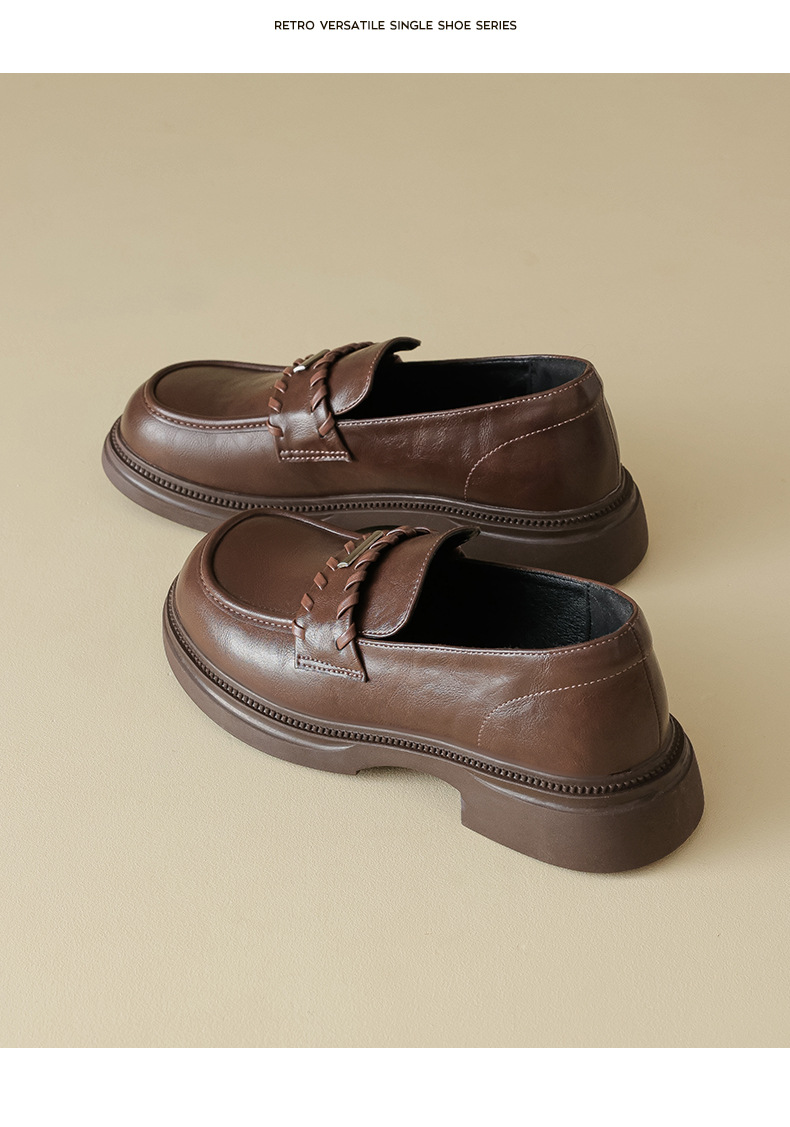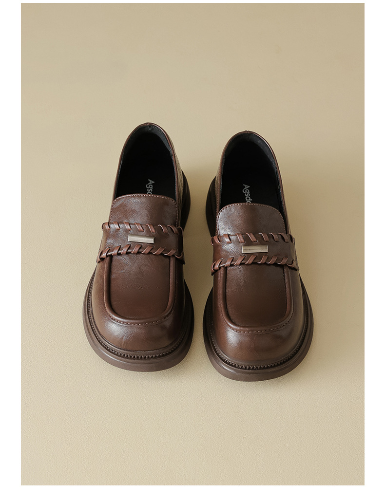 Auge Shi Deng marrón zapatos Lefour de fondo grueso para mujeres 2025 nuevo otoño zapatos de tacón grueso zapatos de cuero gigantescos de aspecto pequeño zapatos de cuero británicos