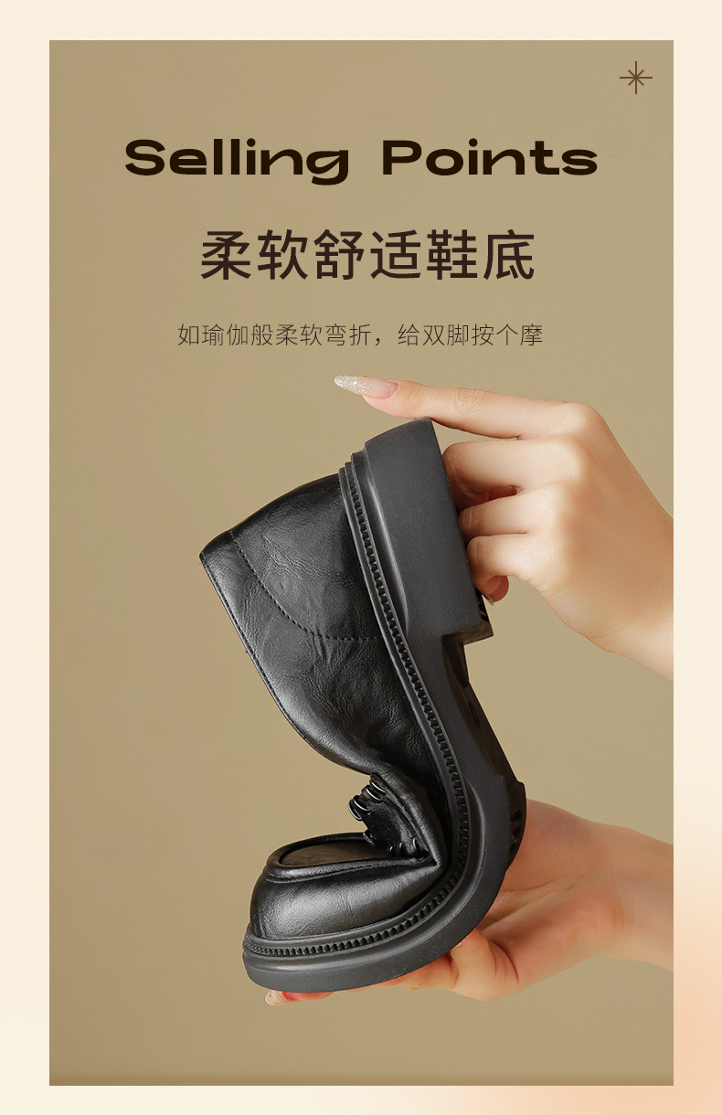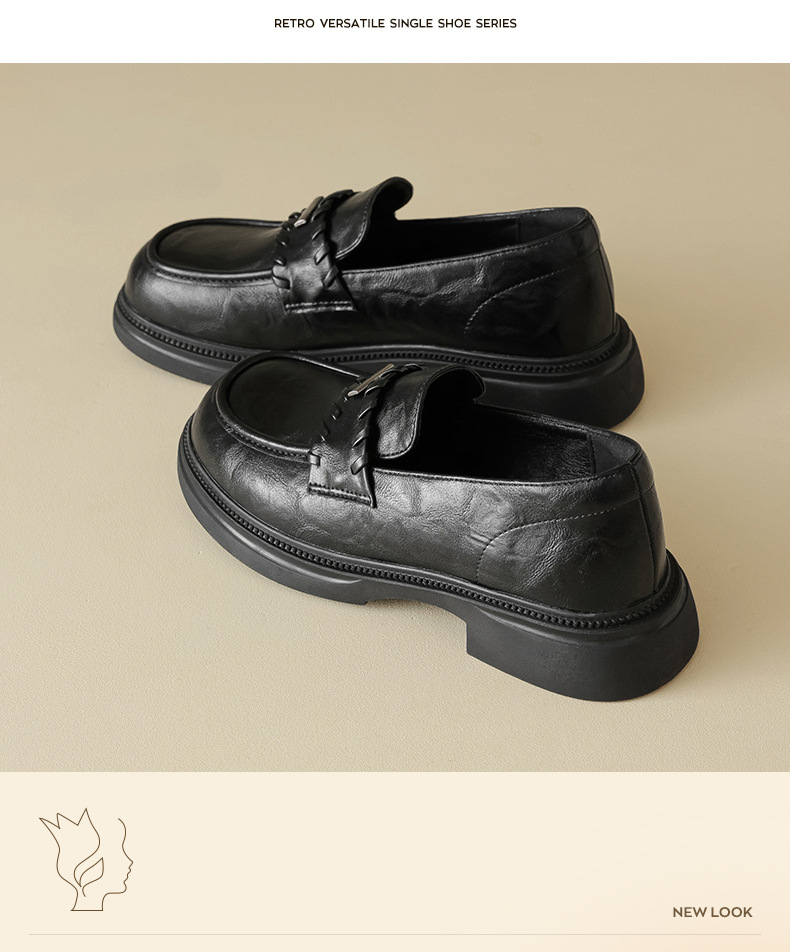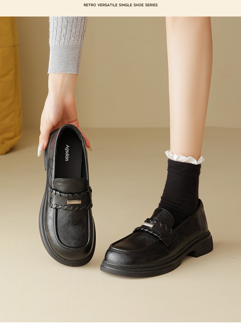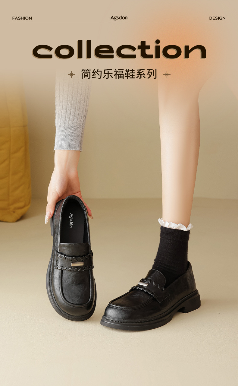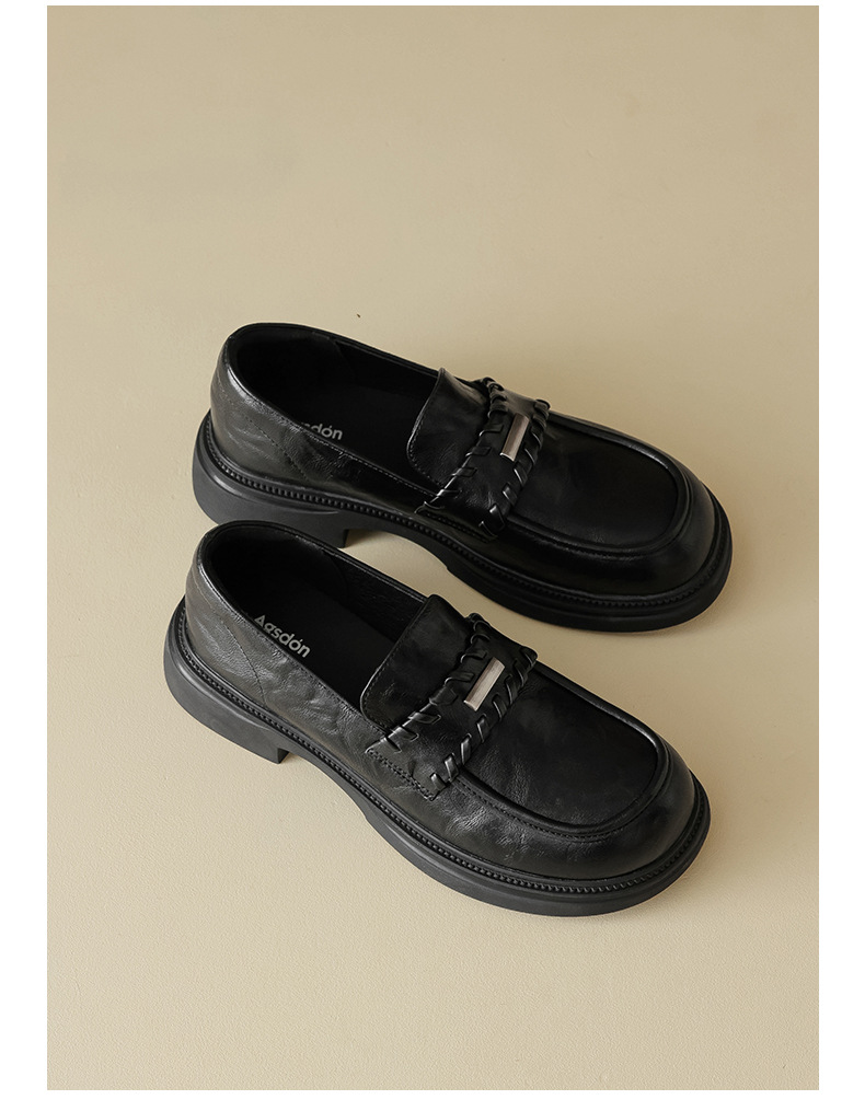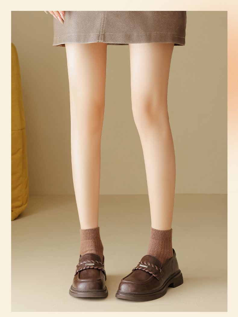 Auge Shi Deng marrón zapatos Lefour de fondo grueso para mujeres 2025 nuevo otoño zapatos de tacón grueso zapatos de cuero gigantescos de aspecto pequeño zapatos de cuero británicos