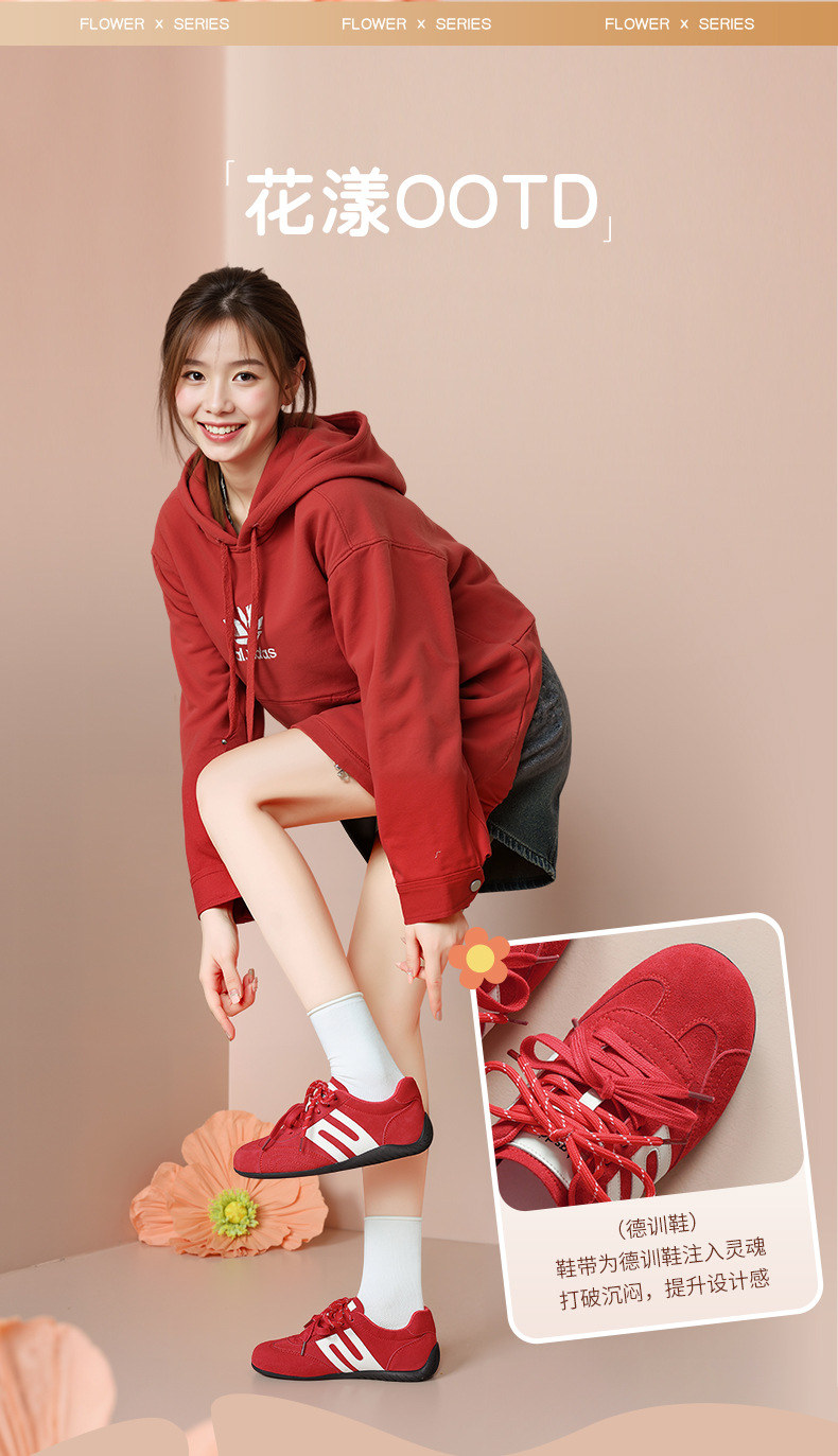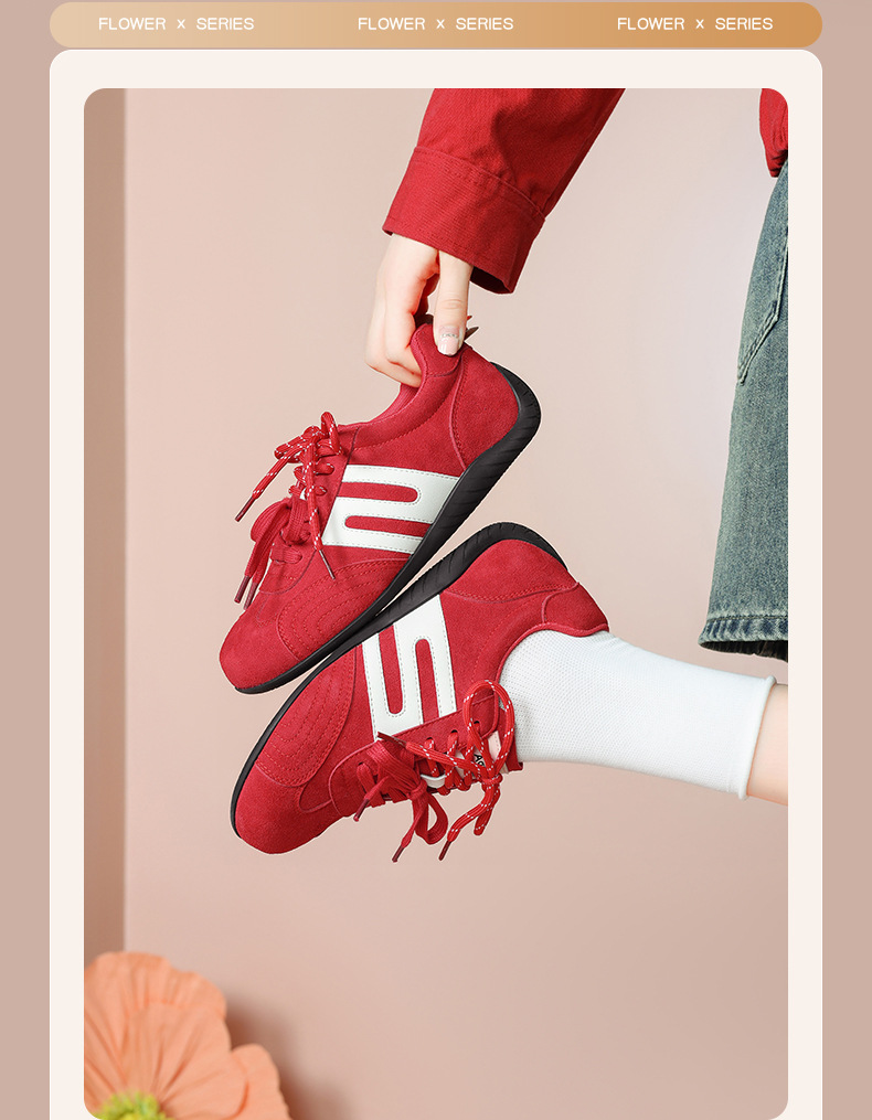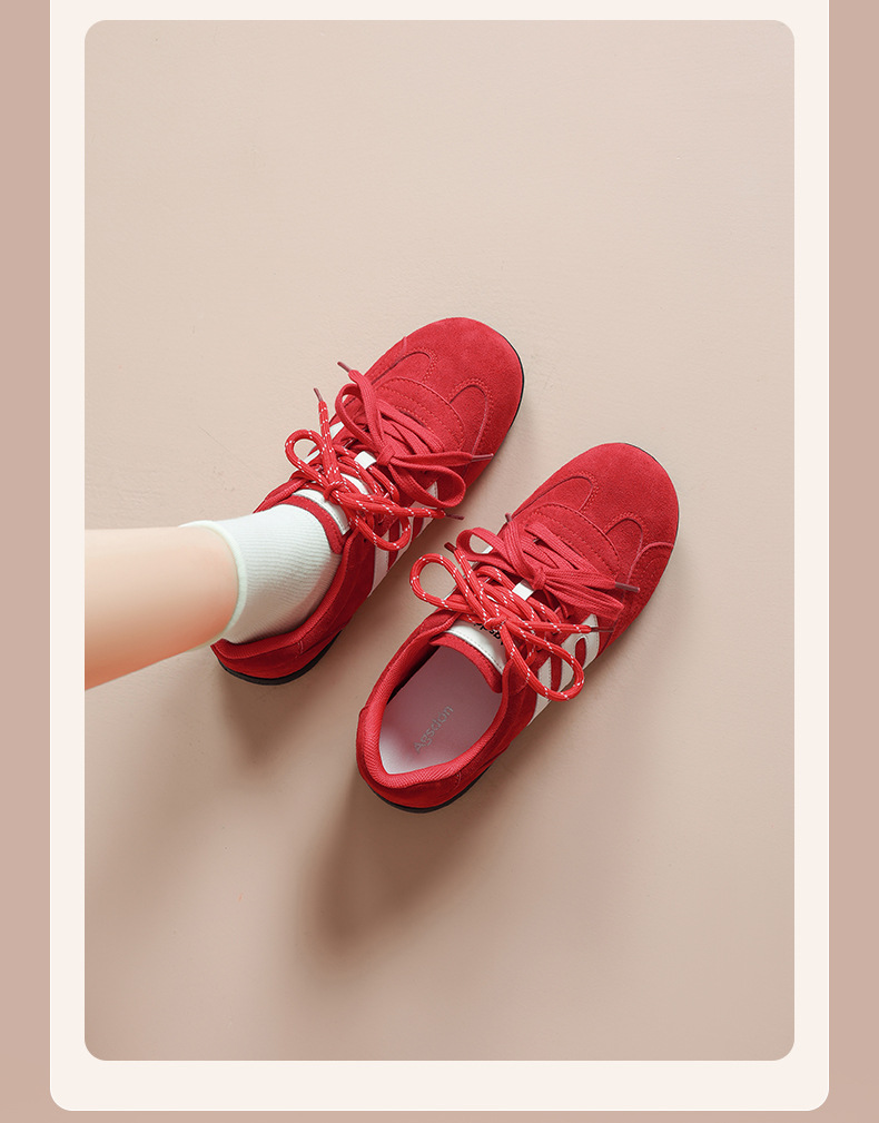 Zapatos de entrenamiento alemán rojos de Augu Shi Deng para mujeres 2025 nuevos zapatos de suela gruesa de otoño zapatos deportivos casuales zapatos de ballet para mujeres