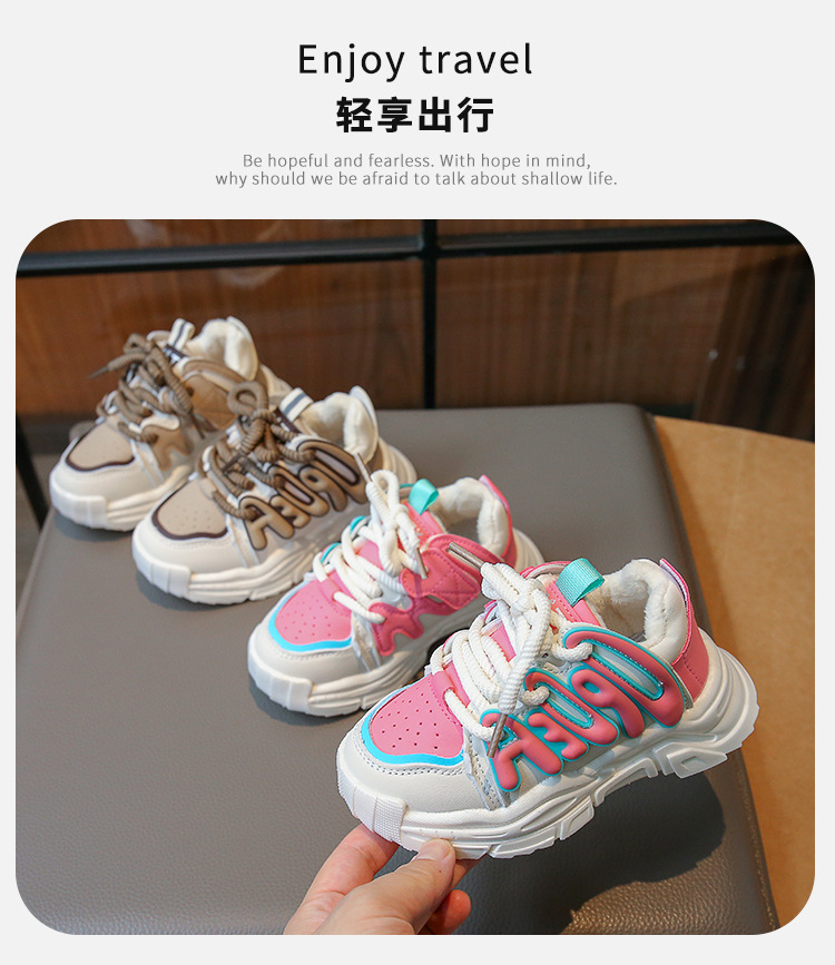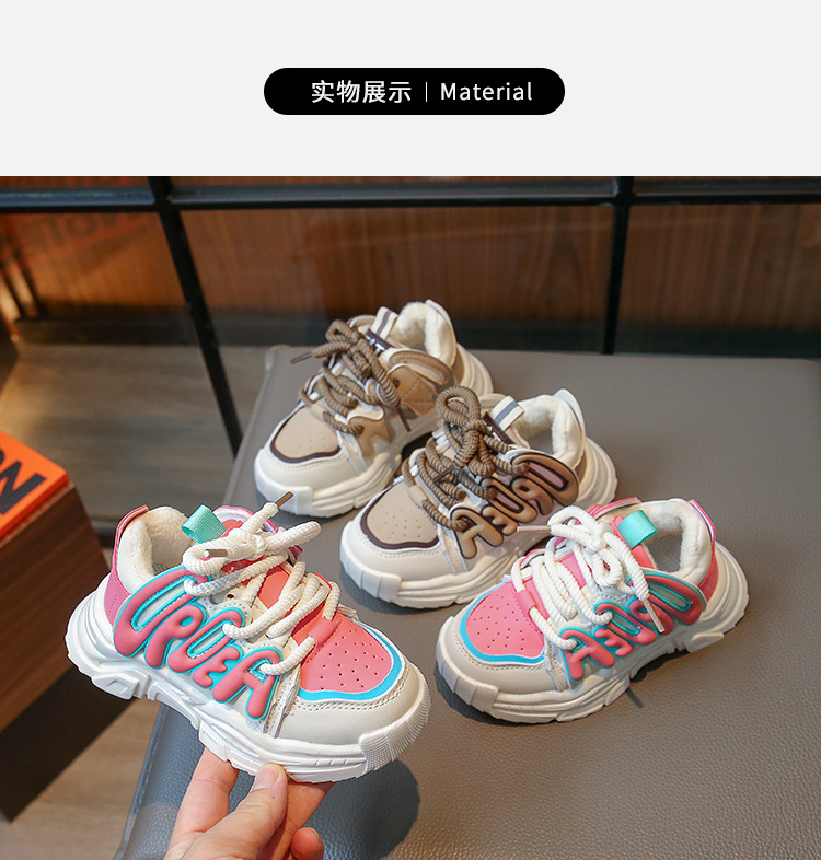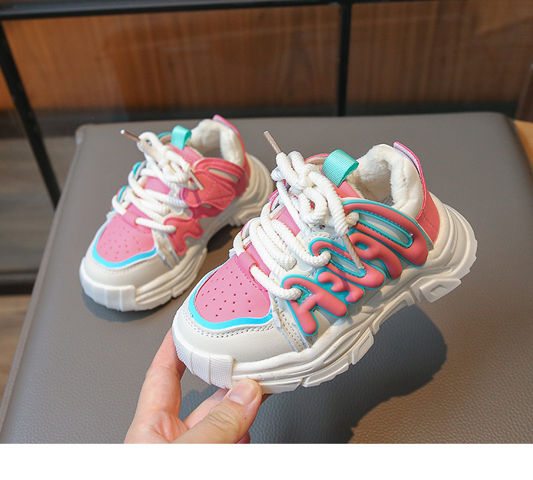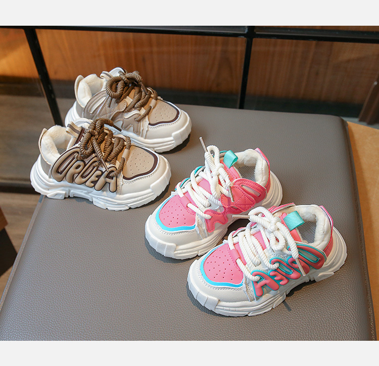2023 Otoño e Invierno nuevos niños zapatilla de deporte de Internet celebridad niñas zapatos de papá niños estudiante zapatos de algodón caliente