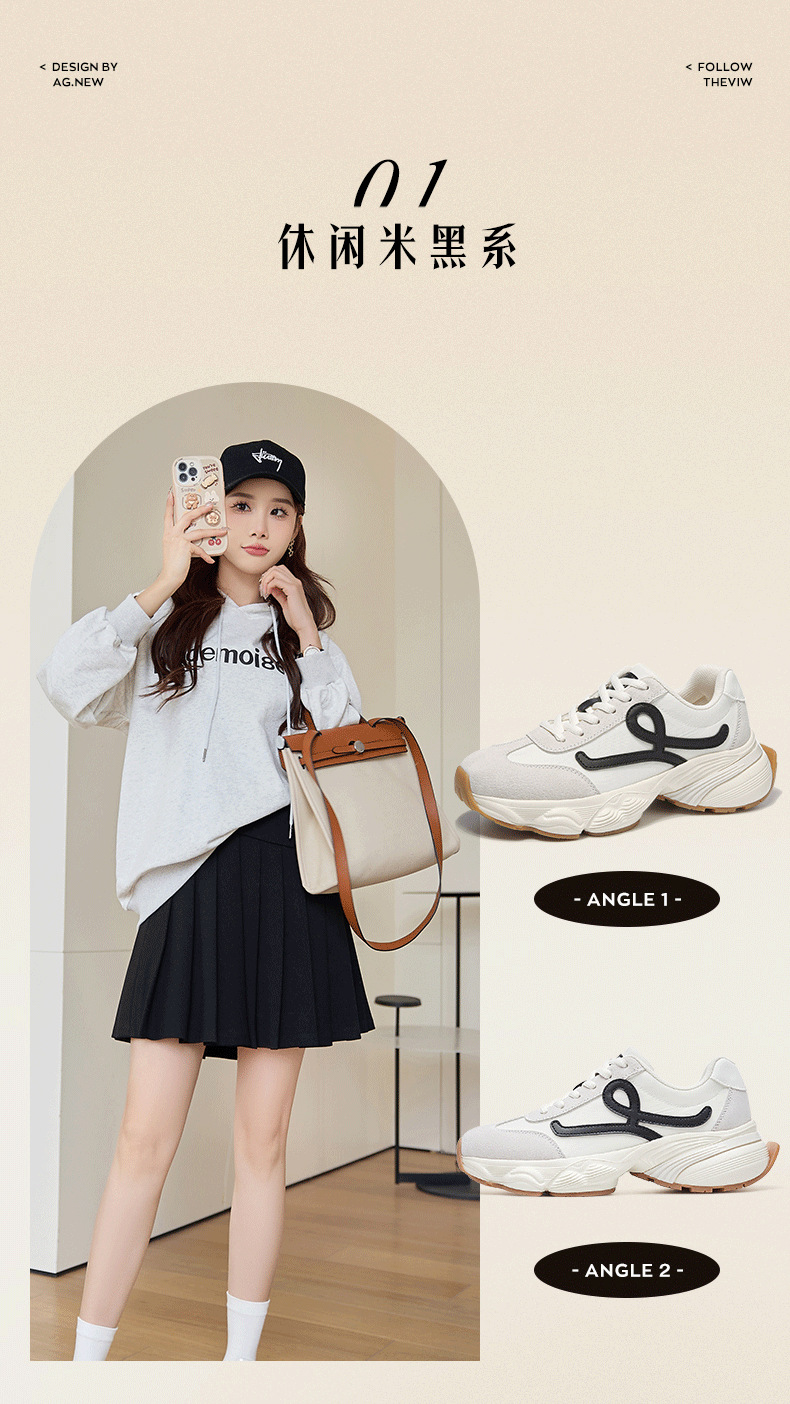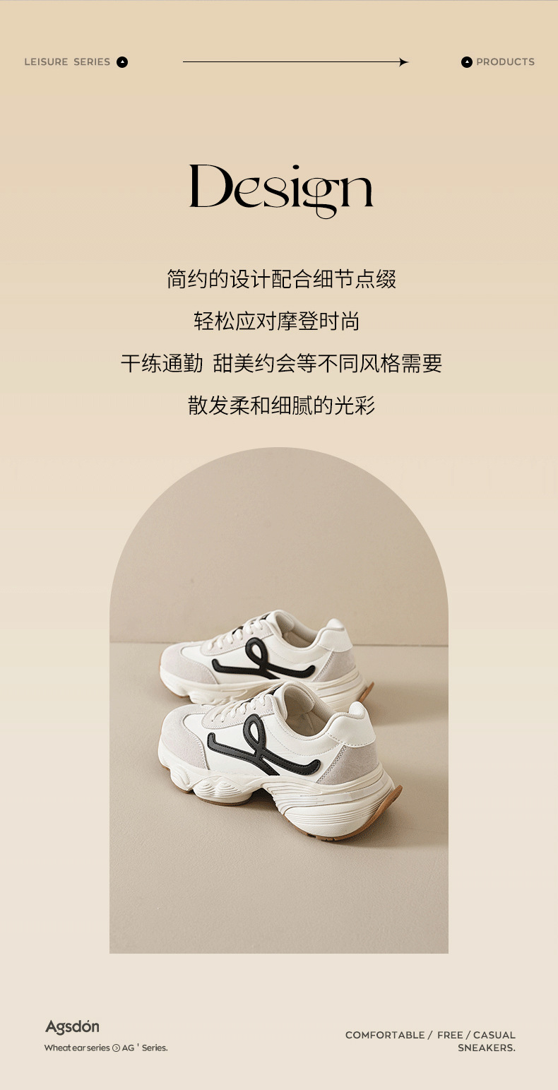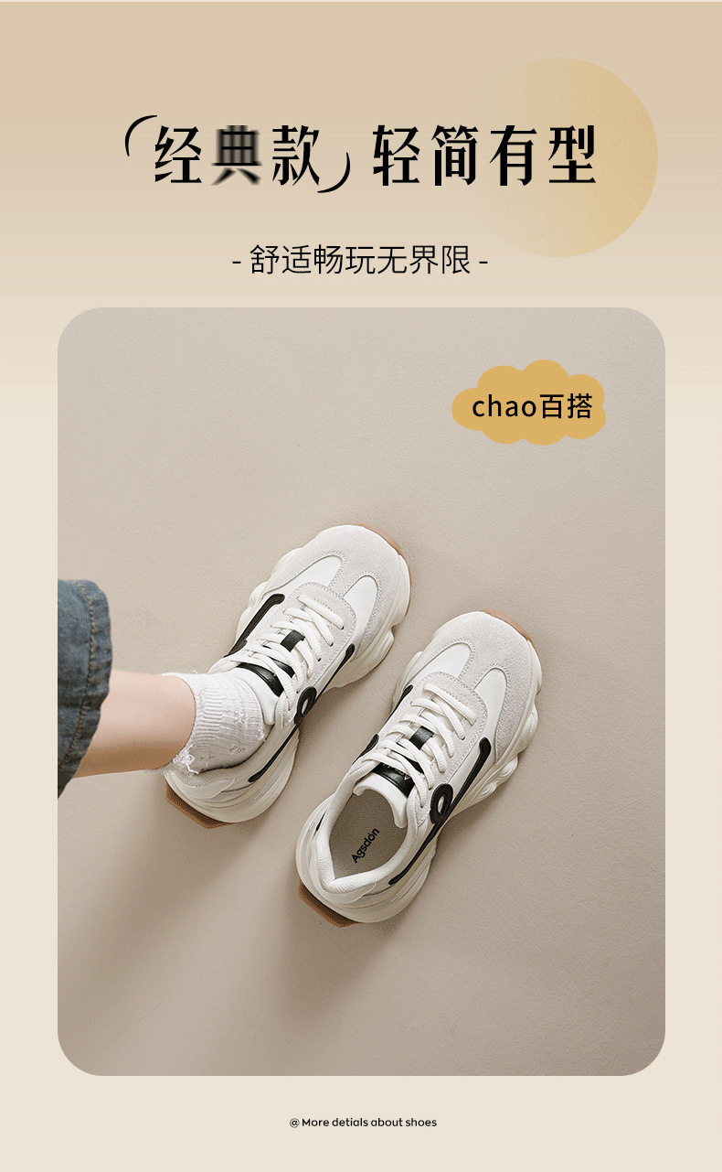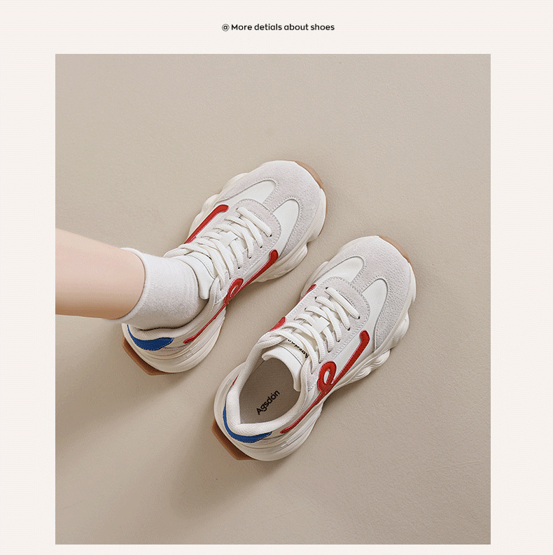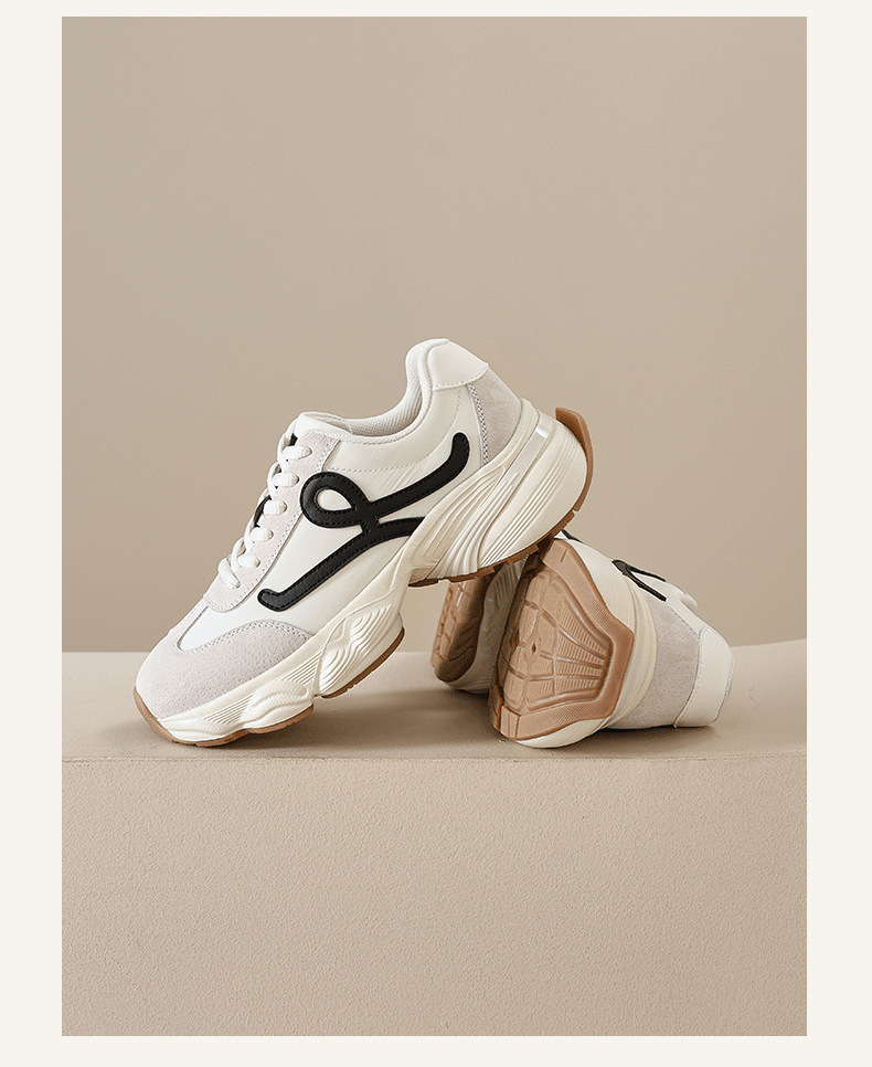 Augu Shi Deng zapatos de base gruesa para padres y mujeres 2025 nuevos zapatos deportivos ligeros de otoño con suela suave casuales zapatos de entrenamiento blanco pequeño