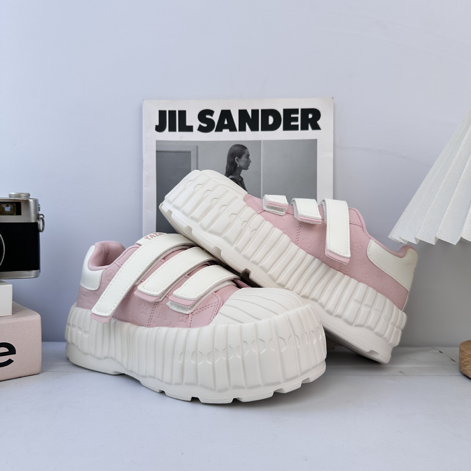 Velcro rosa muffin skate zapatos de mujer feos 2025 otoño nuevo chic nicho de diseño deportivo zapatos blancos pequeños