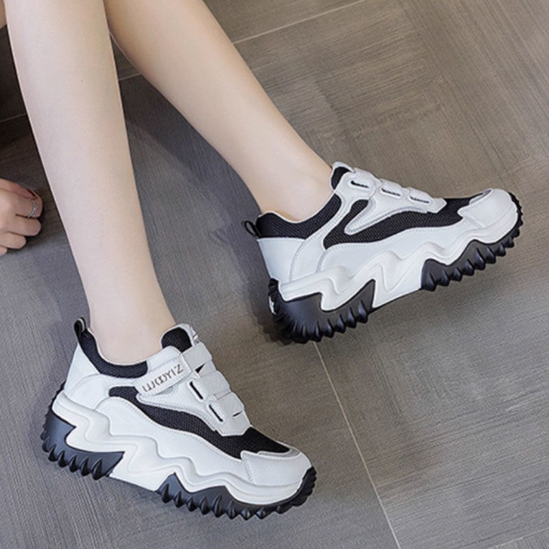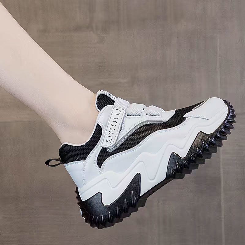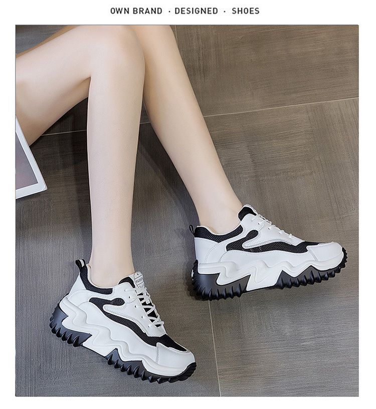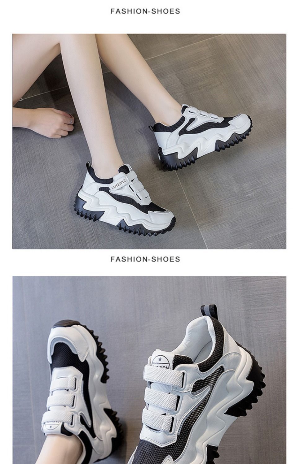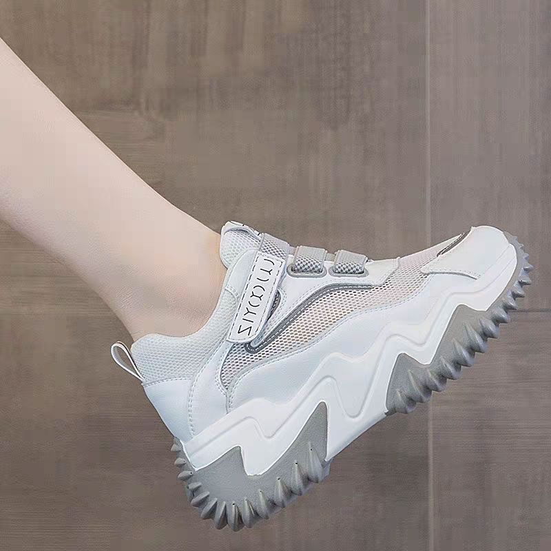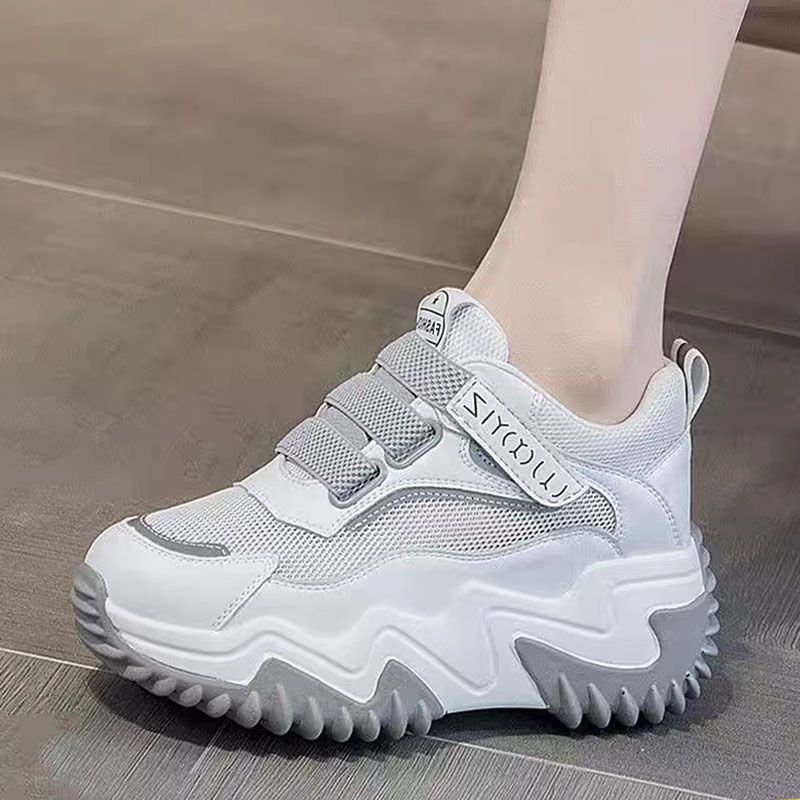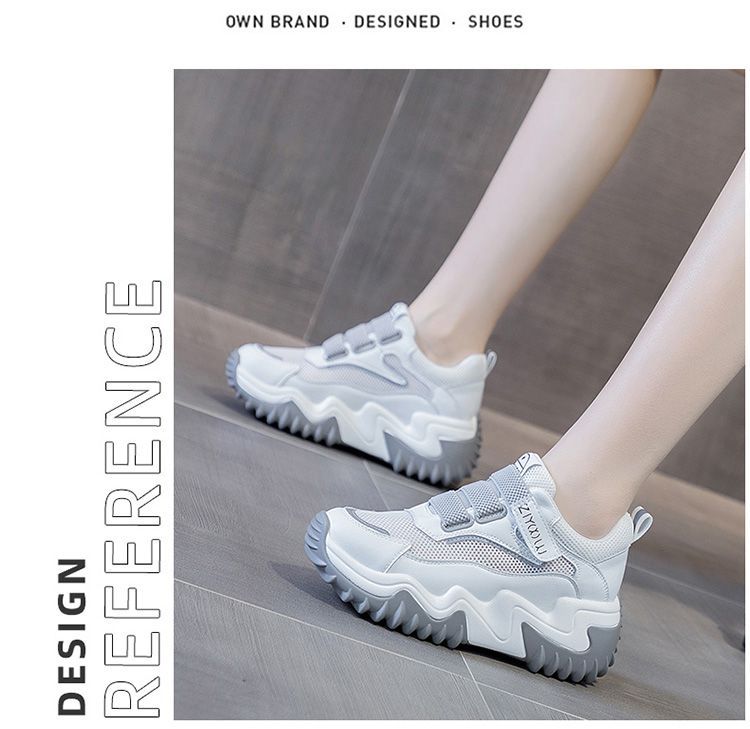 Zapatos casuales de base gruesa de mujer zapatos de malla transpirables de verano delgados aumentan la altura de los zapatos de mujer Velcro 7cm tamaño pequeño