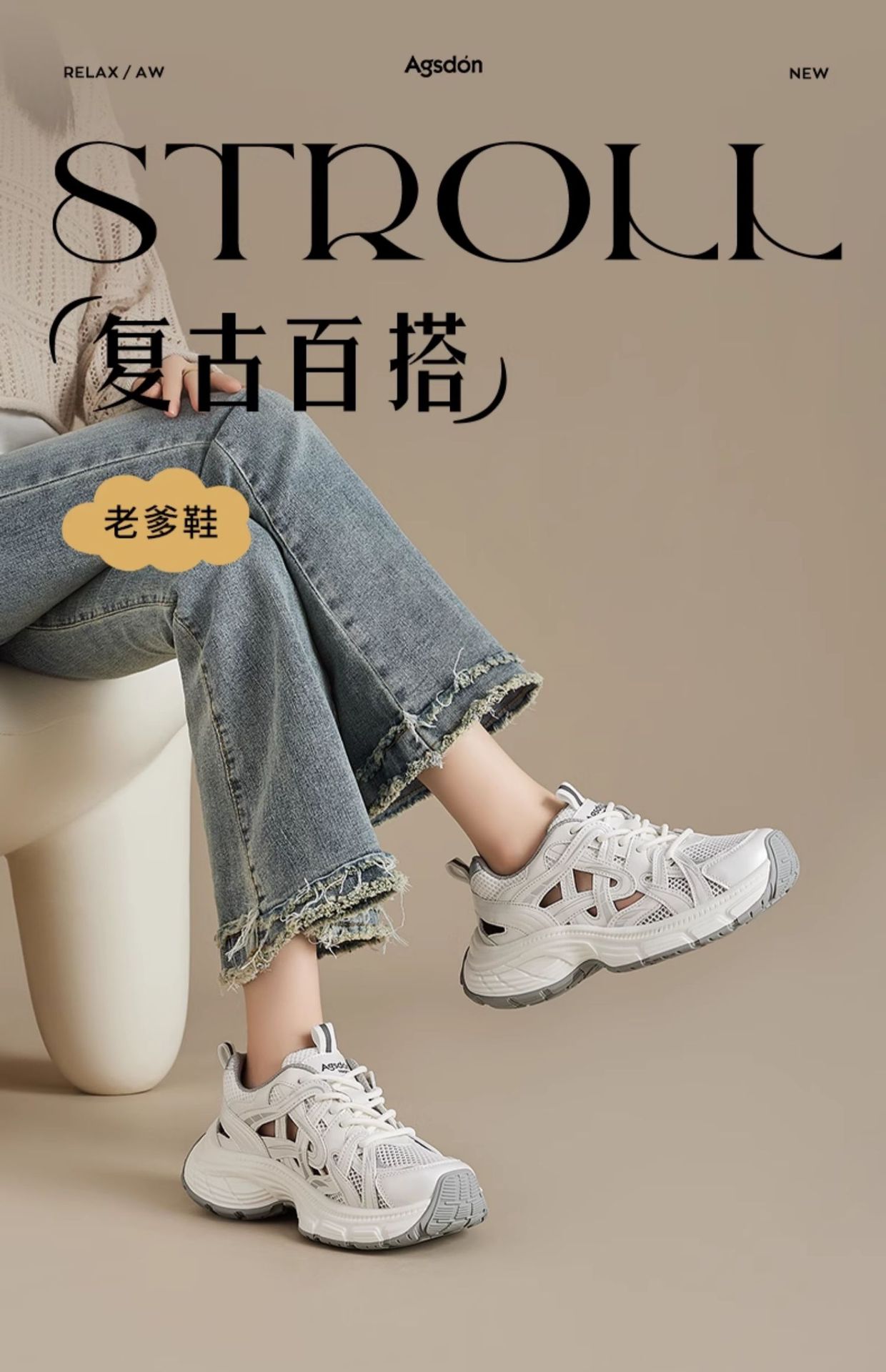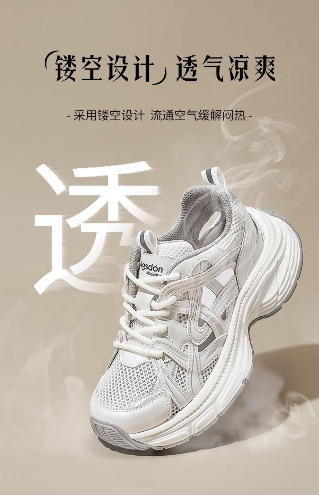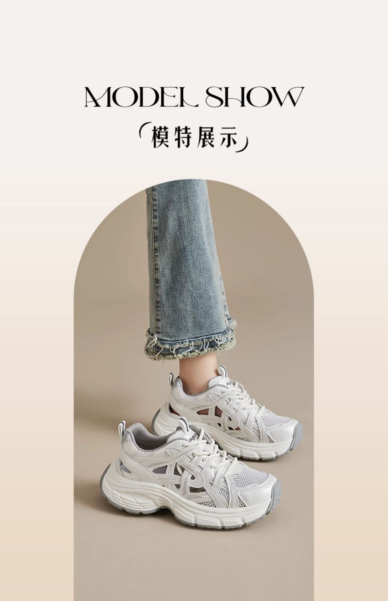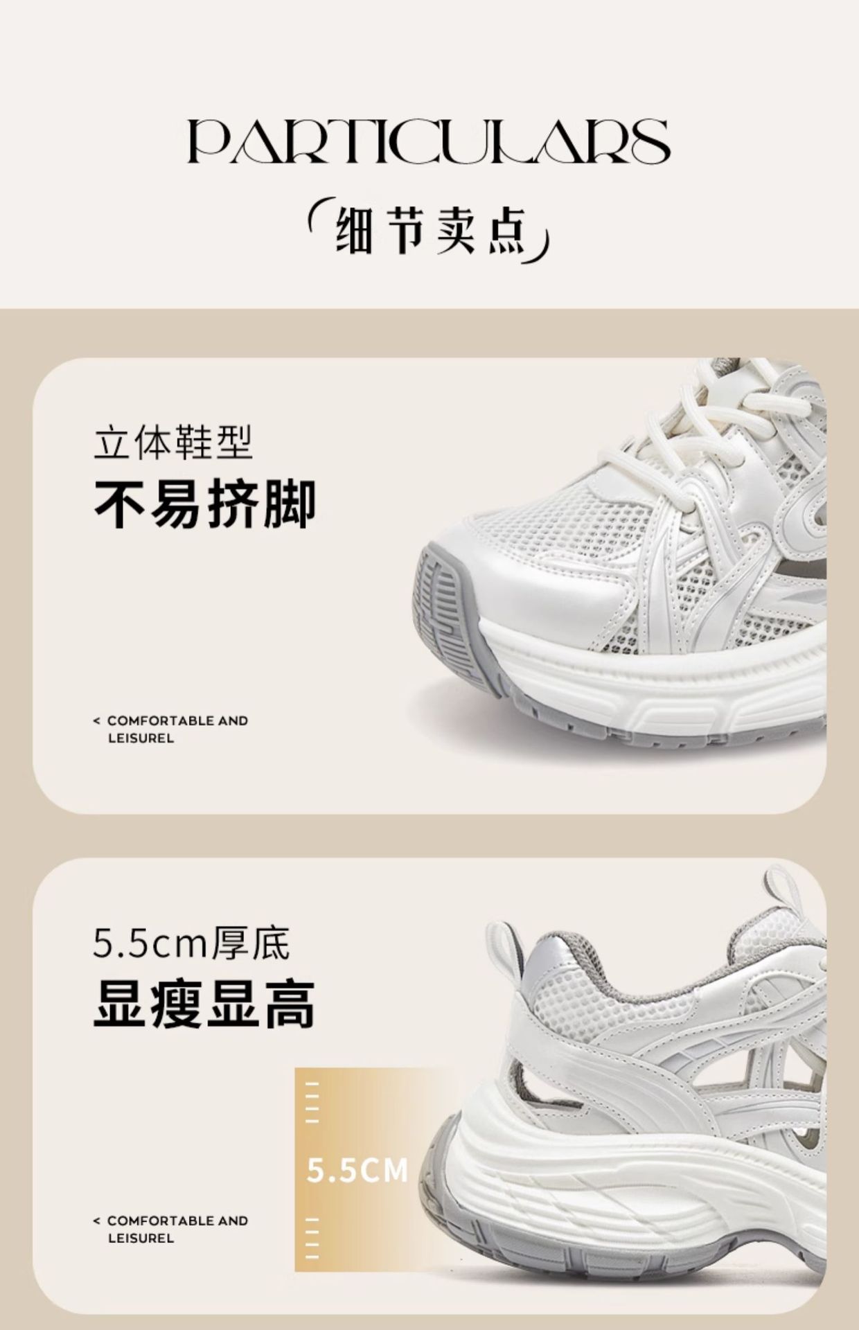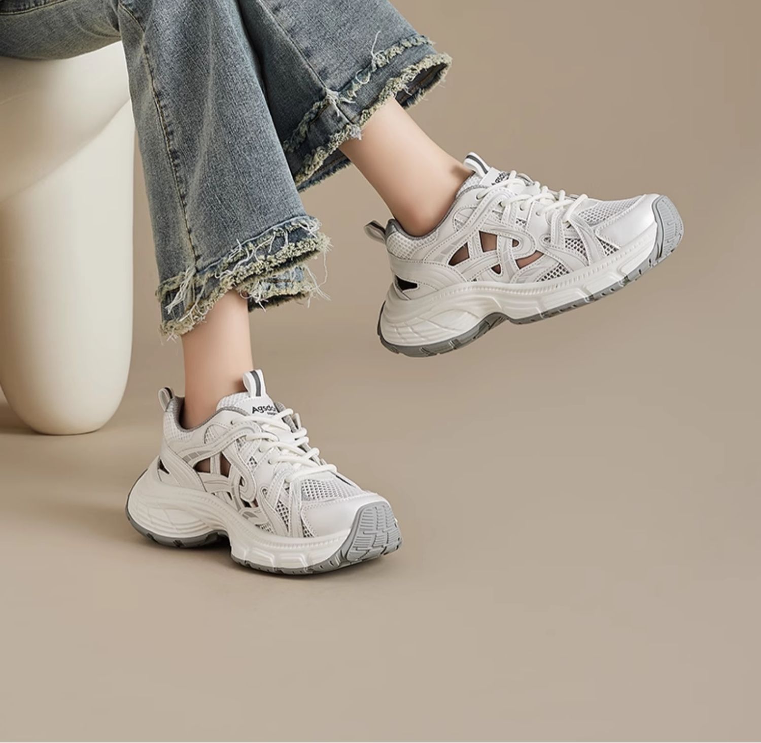 Zapatillas deportivas Augu Shiden para mujer, novedad primavera 2026, sandalias deportivas ligeras de malla hueca con suela gruesa, color blanco