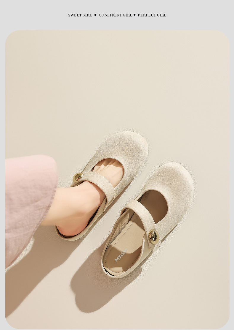 Aogu Shiden - Zapatillas de tacón bajo cerradas para mujer, estilo primavera 2026, suela blanda para exteriores, tipo Mary Jane, para combinar con faldas, zapatos de boca baja.