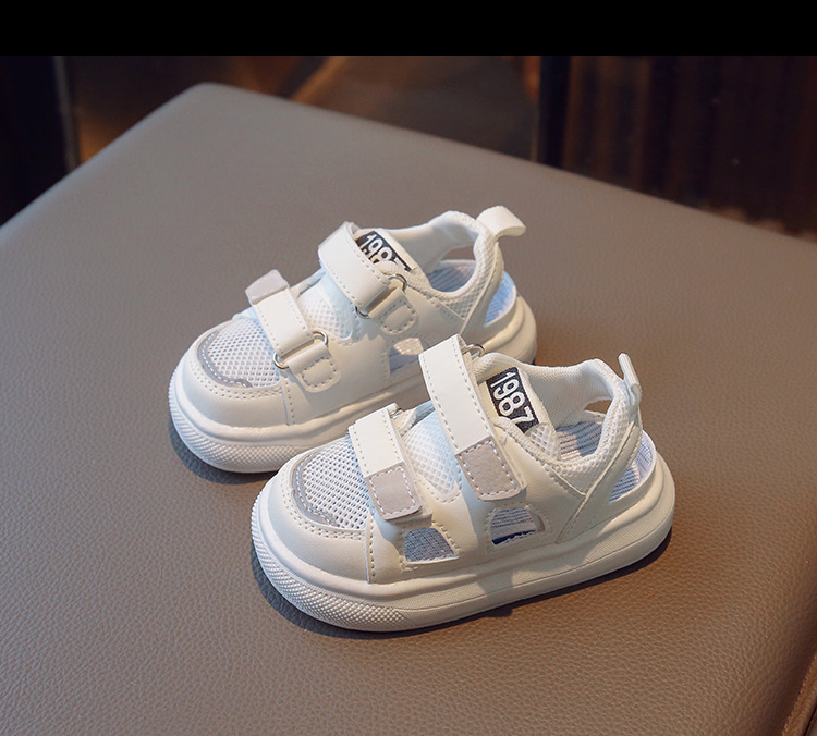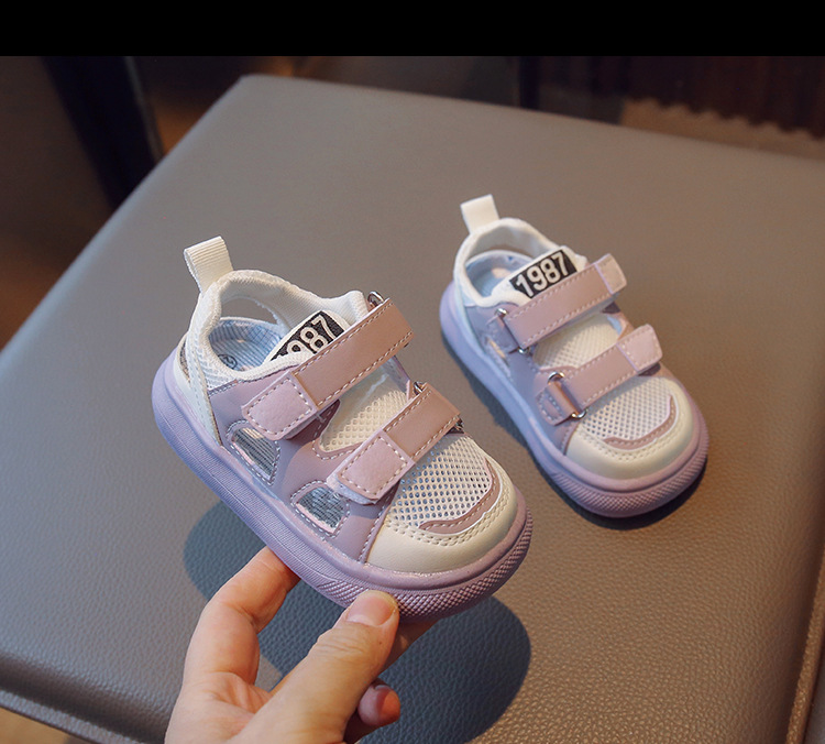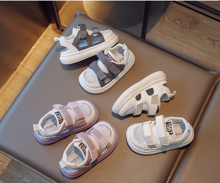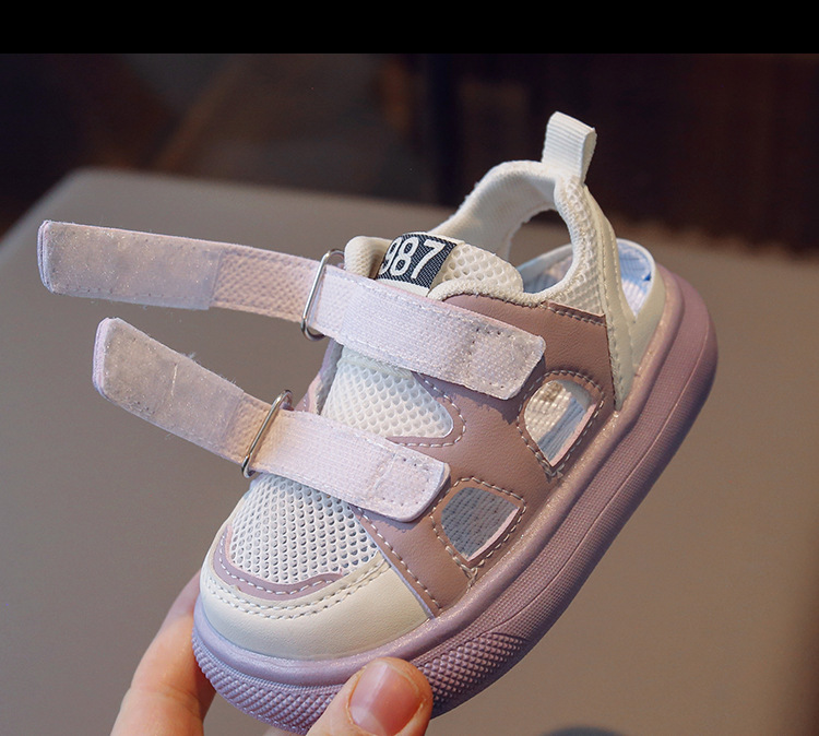 Sandalias de verano 2025 para niñas, zapatos de malla hueca con suela blanda para bebés, sandalias deportivas de malla transpirable para bebés y niños.