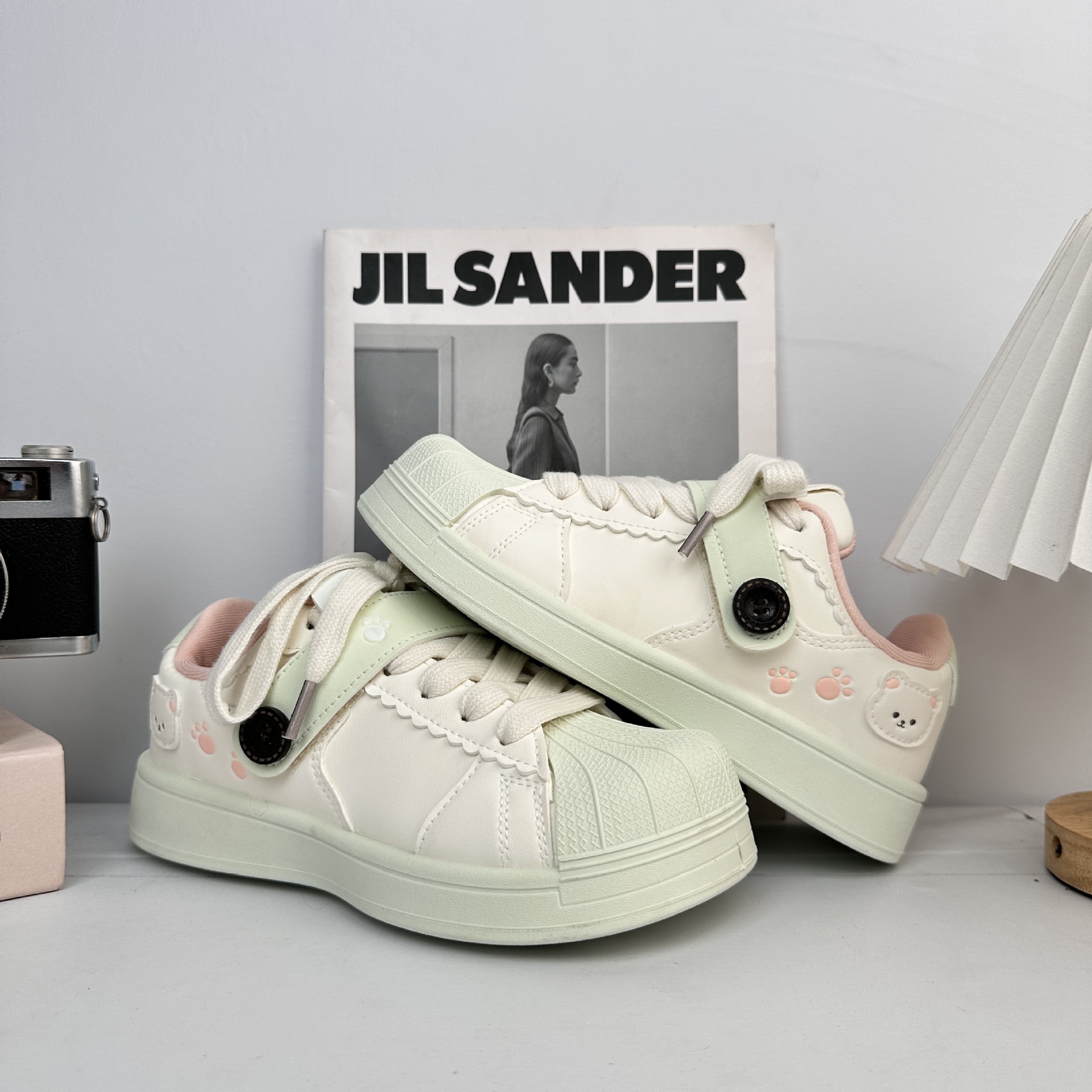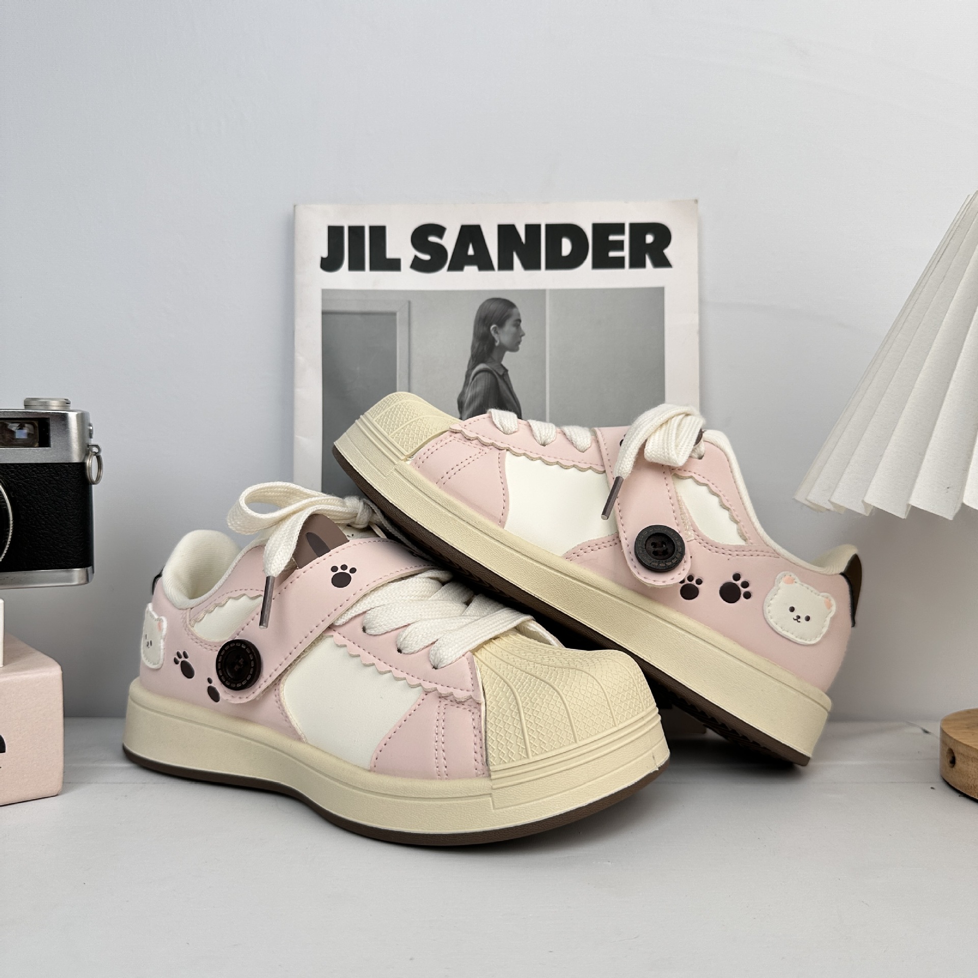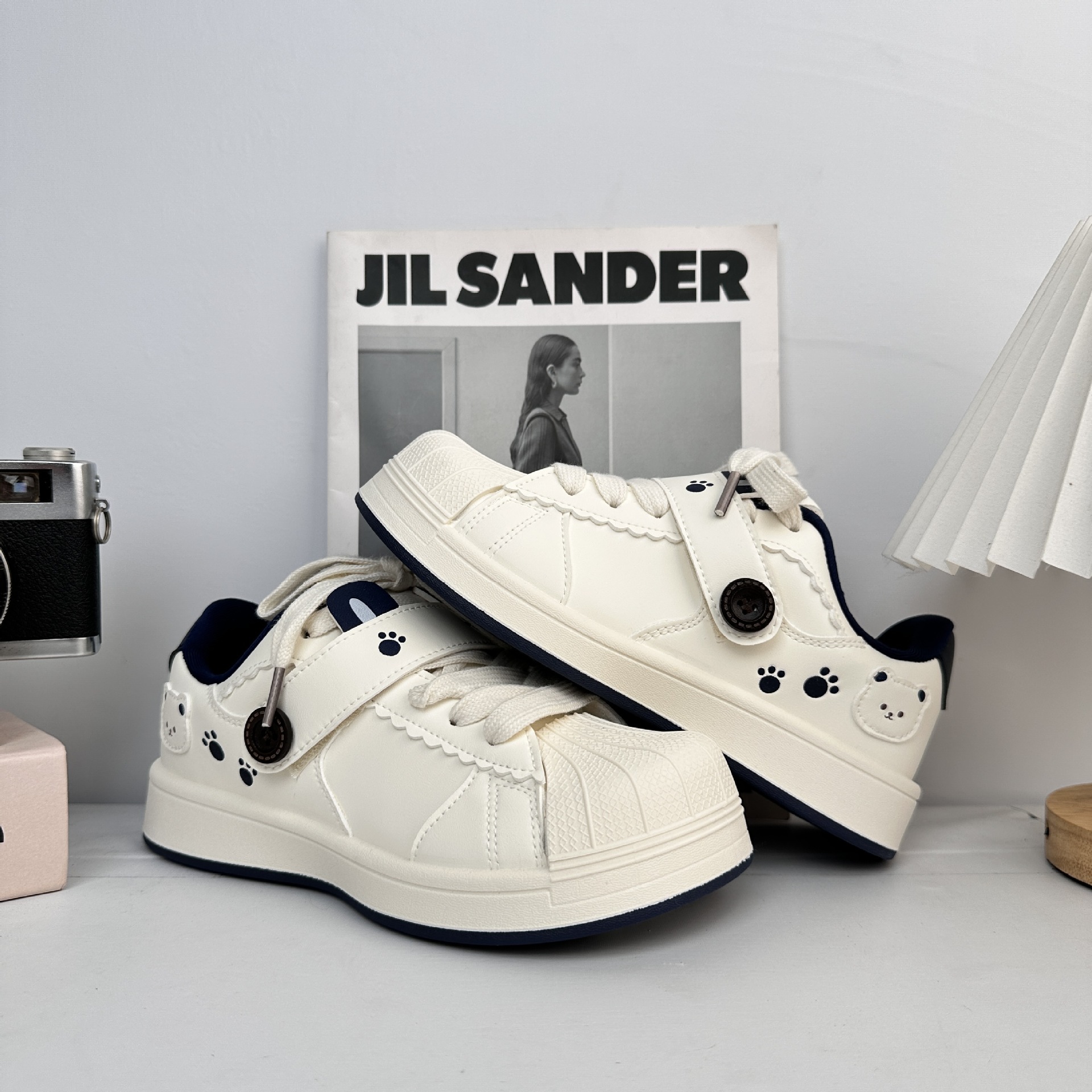 Yuanbo Peek-Meng nicho conchas zapatos de cabecera para mujeres 2025 otoño nuevo estilo universal con suela gruesa zapatos casuales pequeños blancos